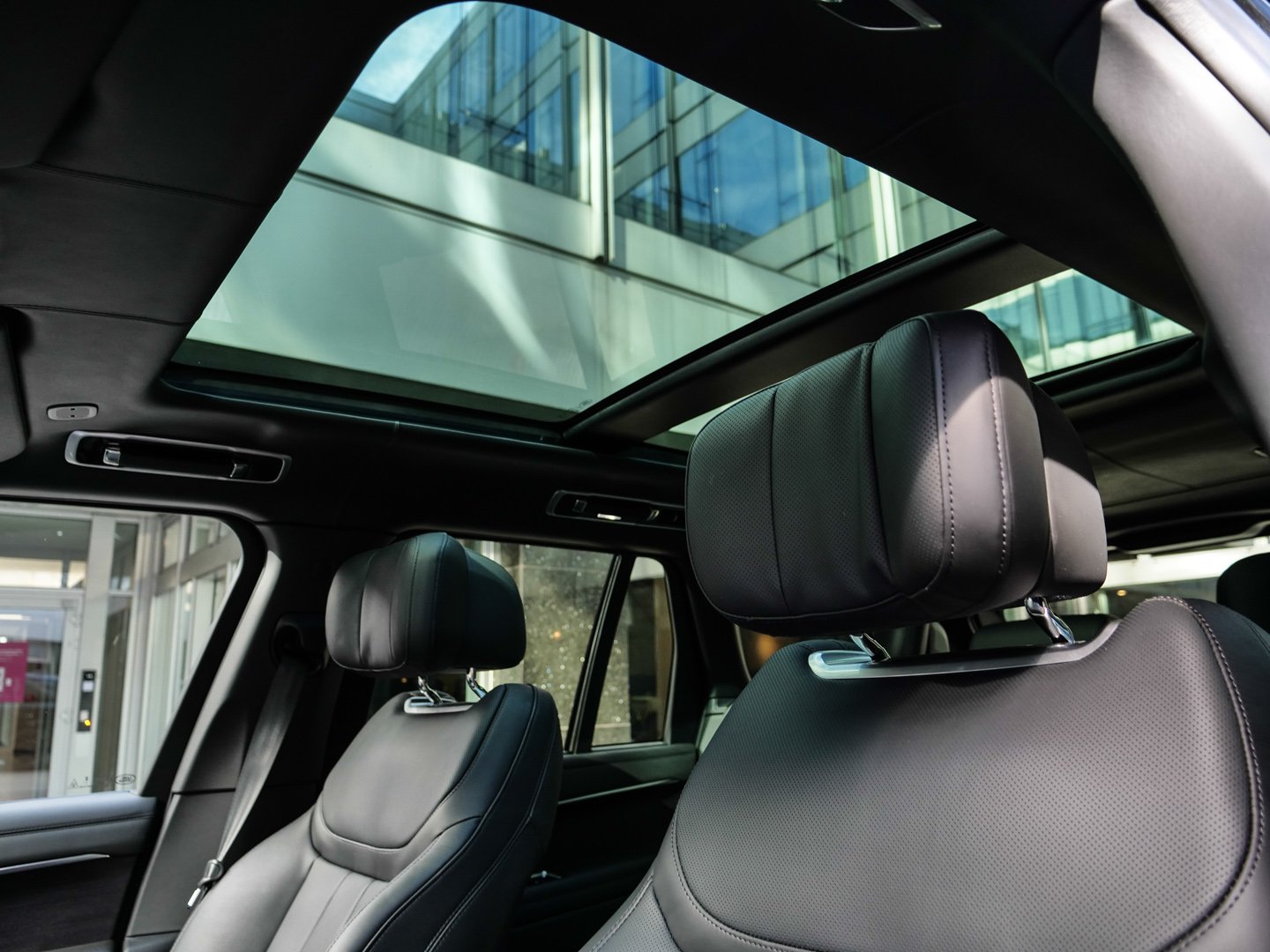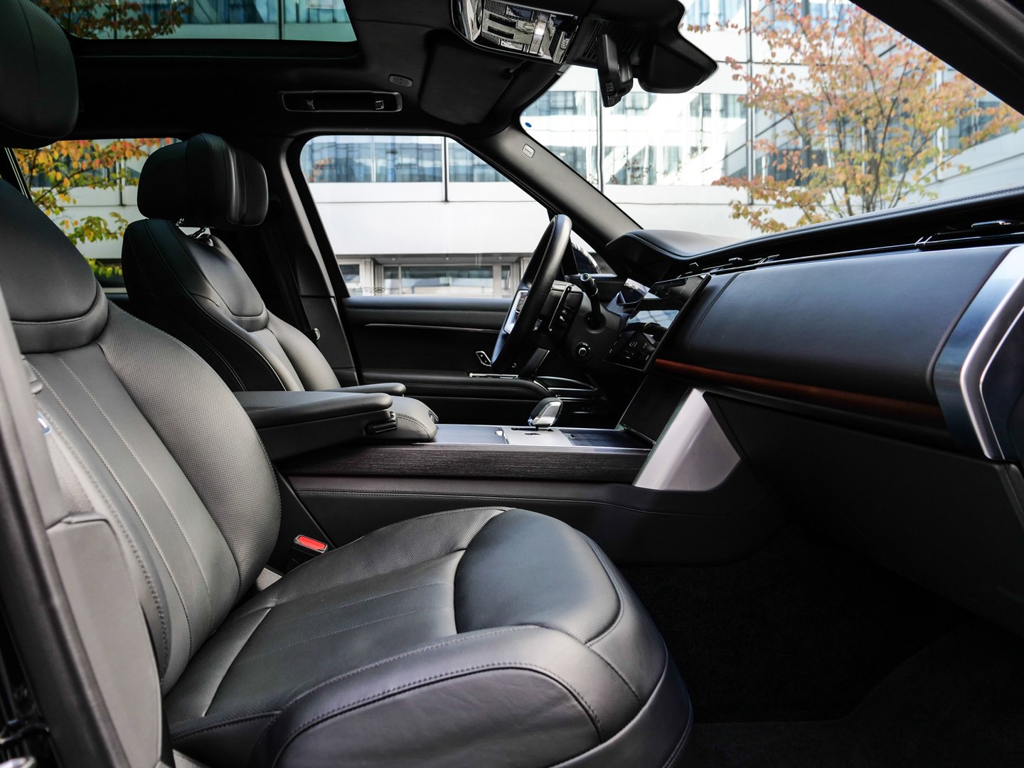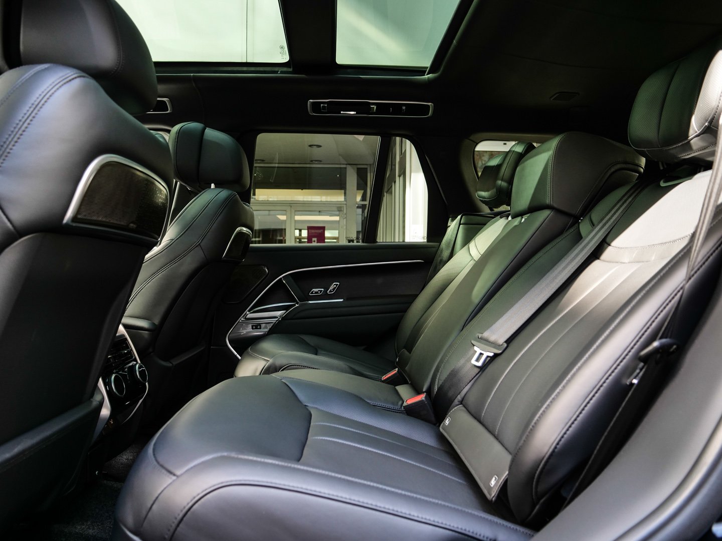 Vollleder, Verglasung hinten abgedunkelt (Privacy Glass), All-Terrain Progress Control (ATPC), Lenkrad heizbar, Frontscheibe wärmeabweisend, Klimaautomatik 4-Zonen, Dynamic-Response-System (Aktive Fahrwerks-Stabilisierung), Lenkrad mit Schaltwippen/-tasten, Ambiente-Beleuchtung, Off-Road-Fahrprogramm, Interieur Ebony, Türverkleidung (Mittelteil) in Windsor-Leder, Kühlbox in Mittelkonsole integriert - vorn