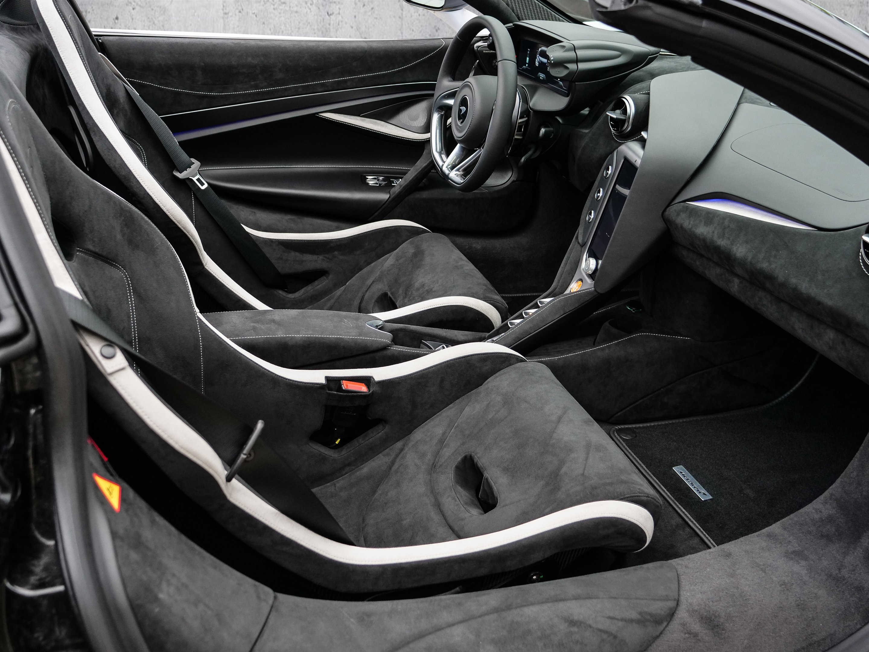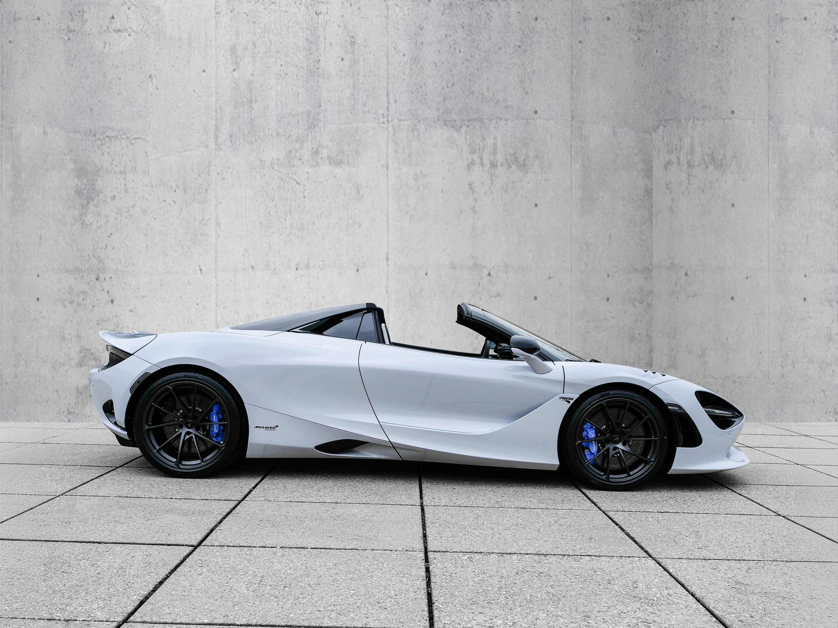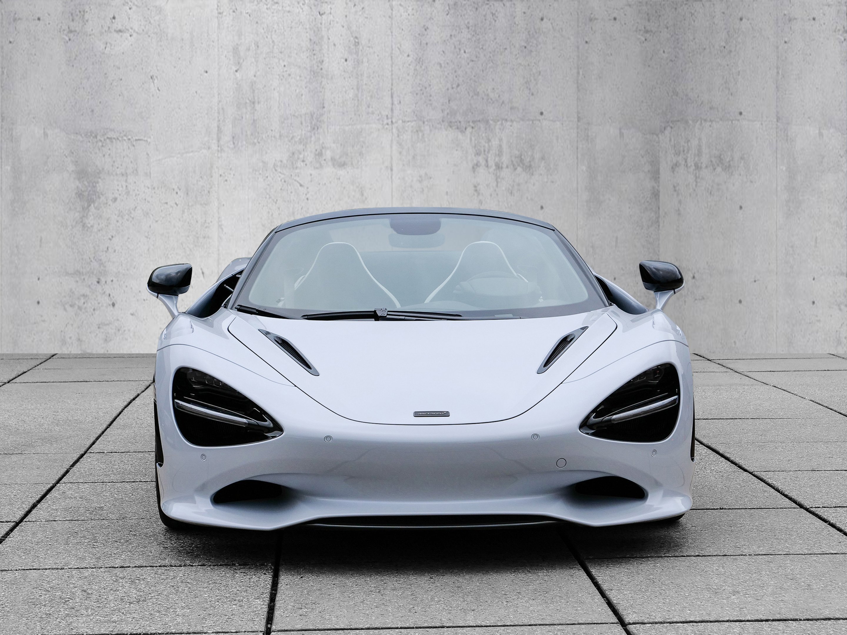 Wheel Finish - Gloss Black, S/Wheel Finish - Jet Black Leather, Stealth Badge Pack, Bowers and Wilkins Audio System 12 Speaker, Hood - Body Colour, Hood Air Intakes - Body Colour, Rear Bumper - BC Upper and GB Lower, Front LTR Exit - Body Colour, Headlight Surround - Gloss Black, Exterior Window Surround - Gloss Black, Body Colour Front Fender with BC Louvres, B-Pillar Outer - Gloss Black, Rear Fender Air Intakes - Body Colour, Active Rear Spoiler - Body Colour, Sound Comfort Windscreen, Sill Trim - Carbon Black Alcantara & Carpet, Steering Wheel - Standard, Steering Wheel Paddles - Satin Graphite, Air Conditioning, 750S Alcantara & Leather Interior, McLaren 750S Spider, Star Forged Wheels- 5 Spoke Ultra-Lightweight, 2026 Model Year, Exterior MSO Paint - Cirrus Grey, 750S Performance Trim - Dove Grey Alcantara & Jet Black Leather, Seat Style - CF Racing Seats, Contrast Stiching - Grey, Calipers - Azure Blue