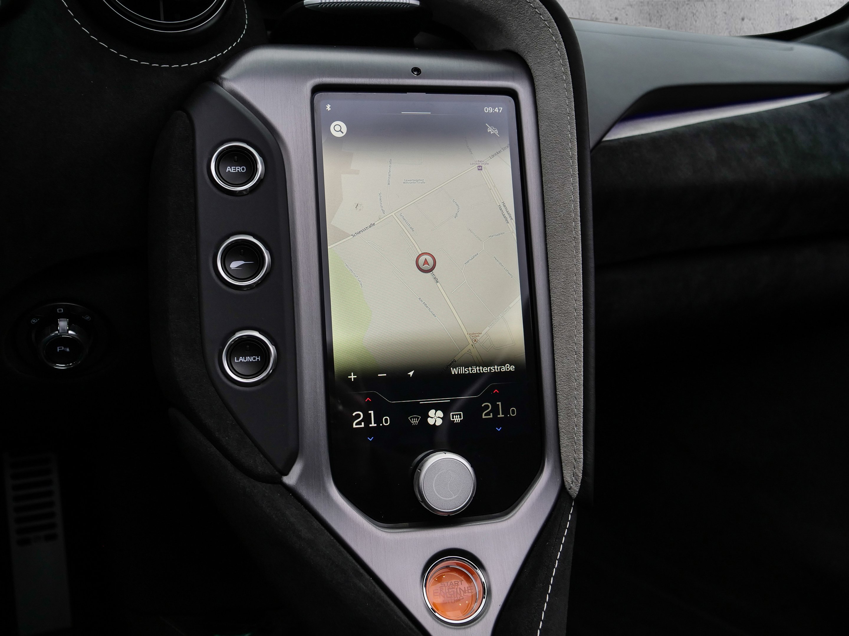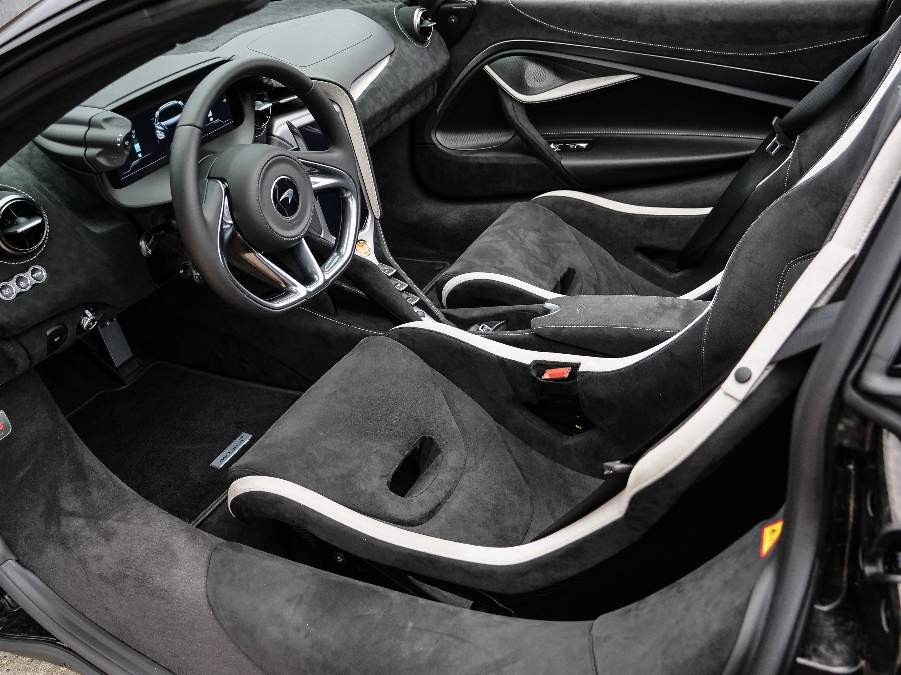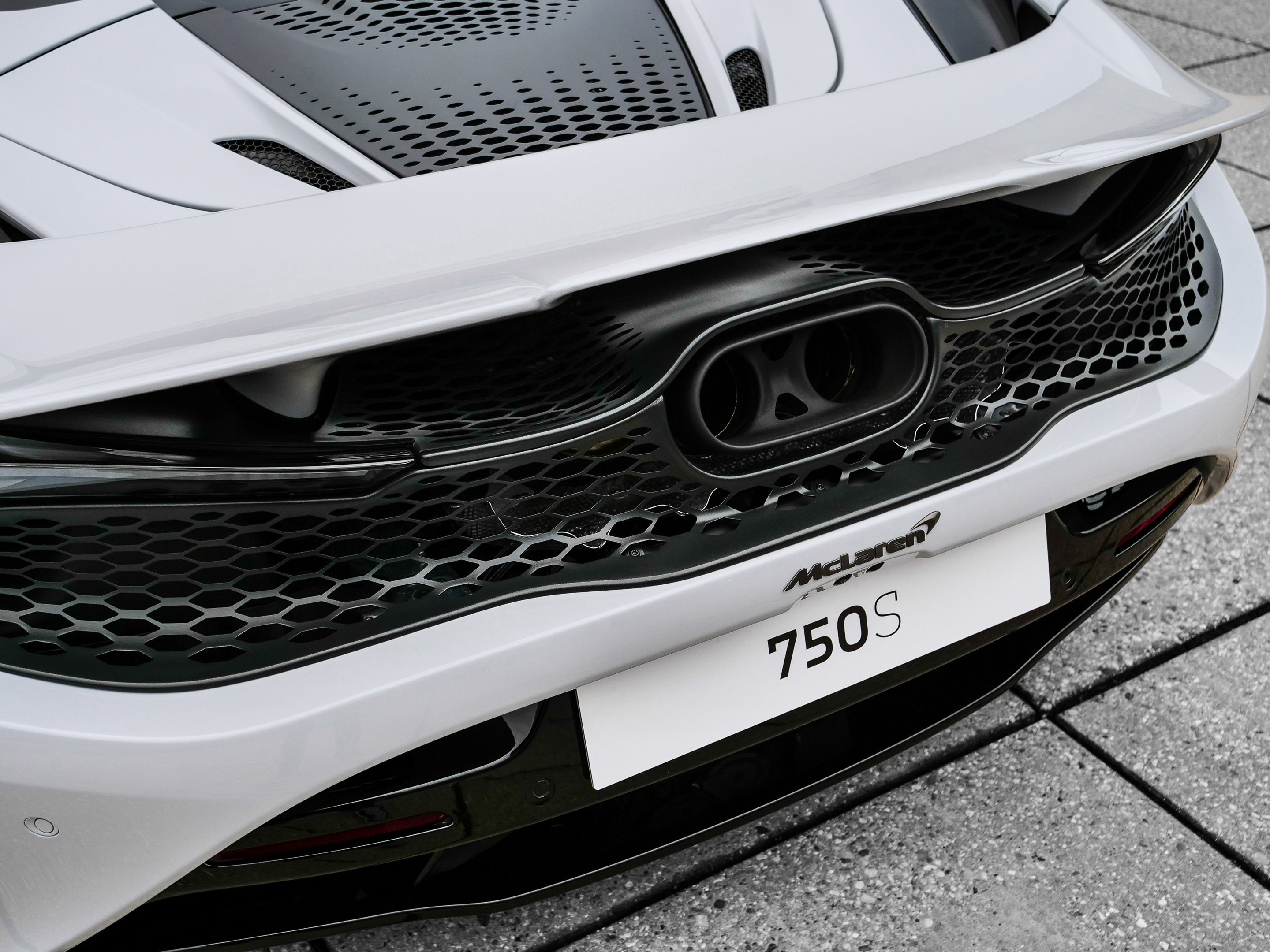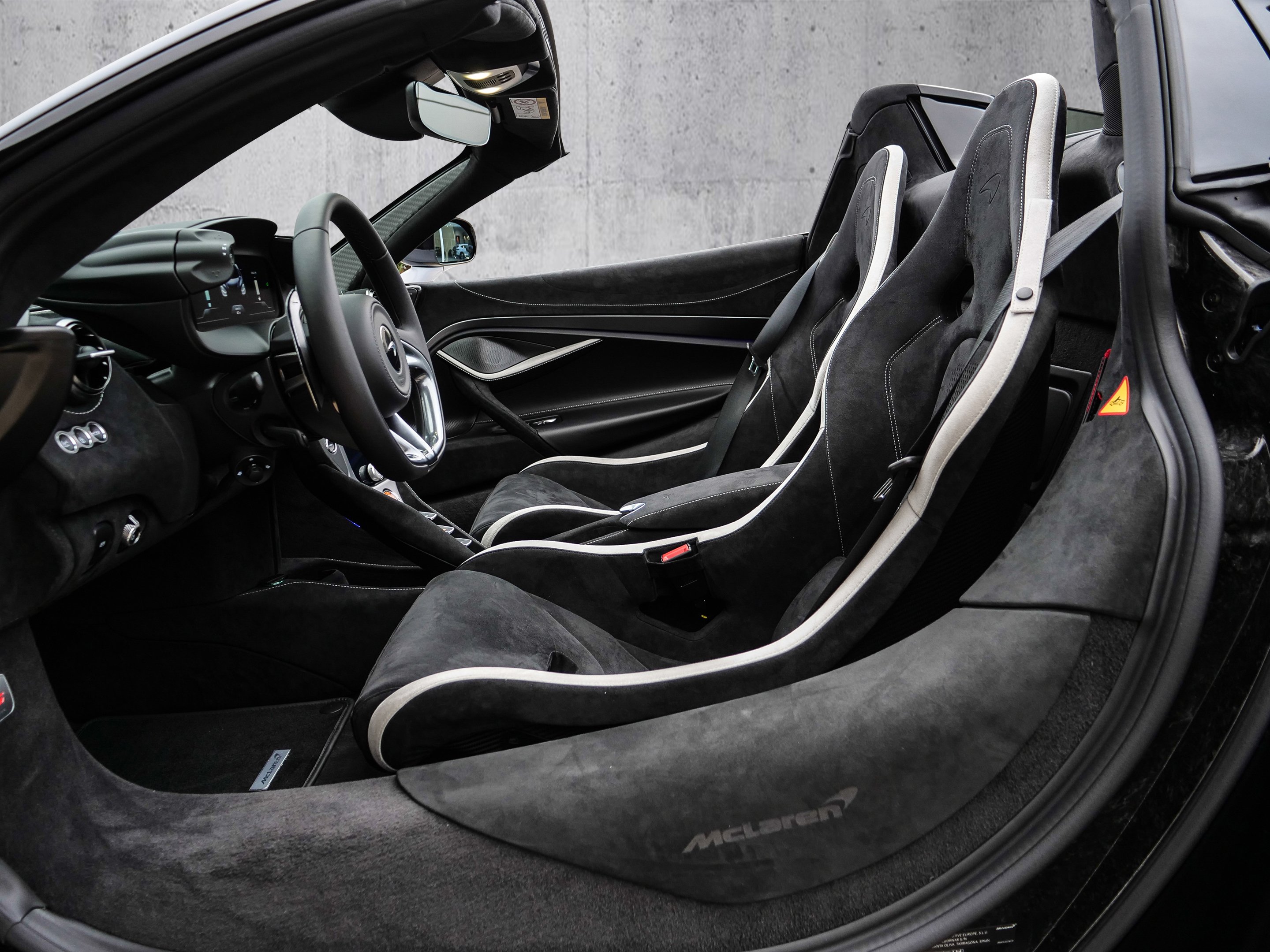 Wheel Finish - Gloss Black, S/Wheel Finish - Jet Black Leather, Stealth Badge Pack, Bowers and Wilkins Audio System 12 Speaker, Hood - Body Colour, Hood Air Intakes - Body Colour, Rear Bumper - BC Upper and GB Lower, Front LTR Exit - Body Colour, Headlight Surround - Gloss Black, Exterior Window Surround - Gloss Black, Body Colour Front Fender with BC Louvres, B-Pillar Outer - Gloss Black, Rear Fender Air Intakes - Body Colour, Active Rear Spoiler - Body Colour, Sound Comfort Windscreen, Sill Trim - Carbon Black Alcantara & Carpet, Steering Wheel - Standard, Steering Wheel Paddles - Satin Graphite, Air Conditioning, 750S Alcantara & Leather Interior, McLaren 750S Spider, Star Forged Wheels- 5 Spoke Ultra-Lightweight, 2026 Model Year, Exterior MSO Paint - Cirrus Grey, 750S Performance Trim - Dove Grey Alcantara & Jet Black Leather, Seat Style - CF Racing Seats, Contrast Stiching - Grey, Calipers - Azure Blue