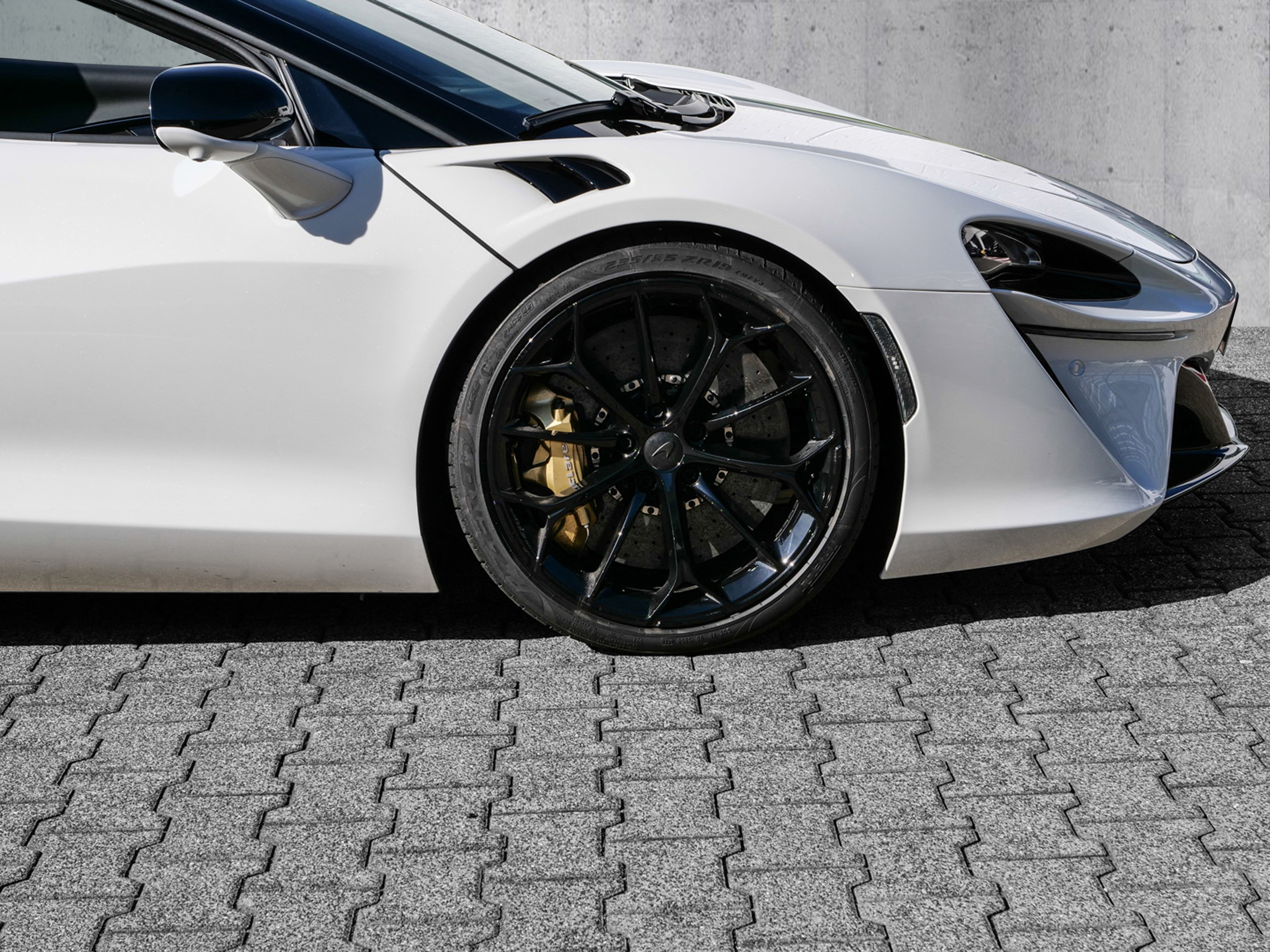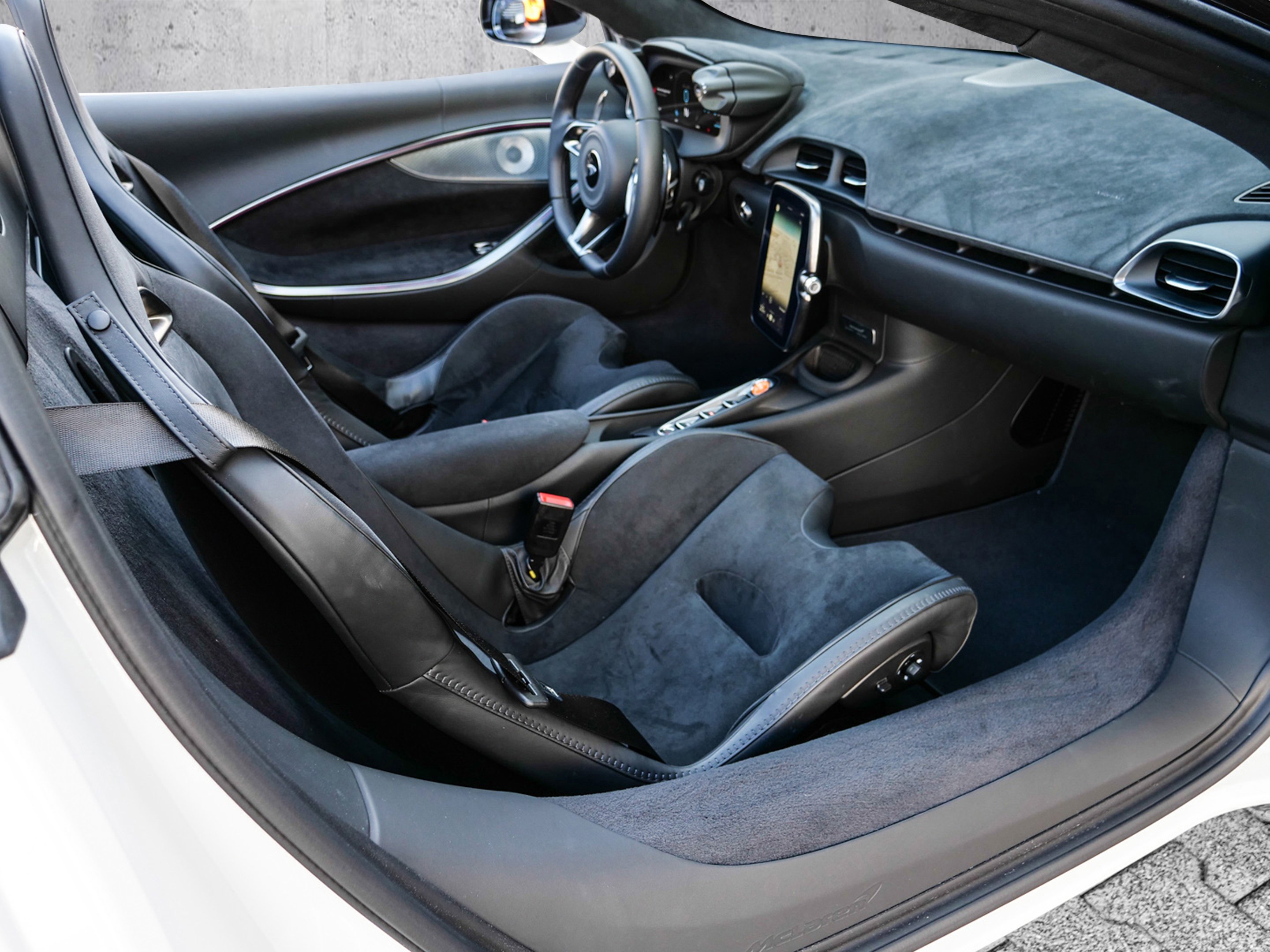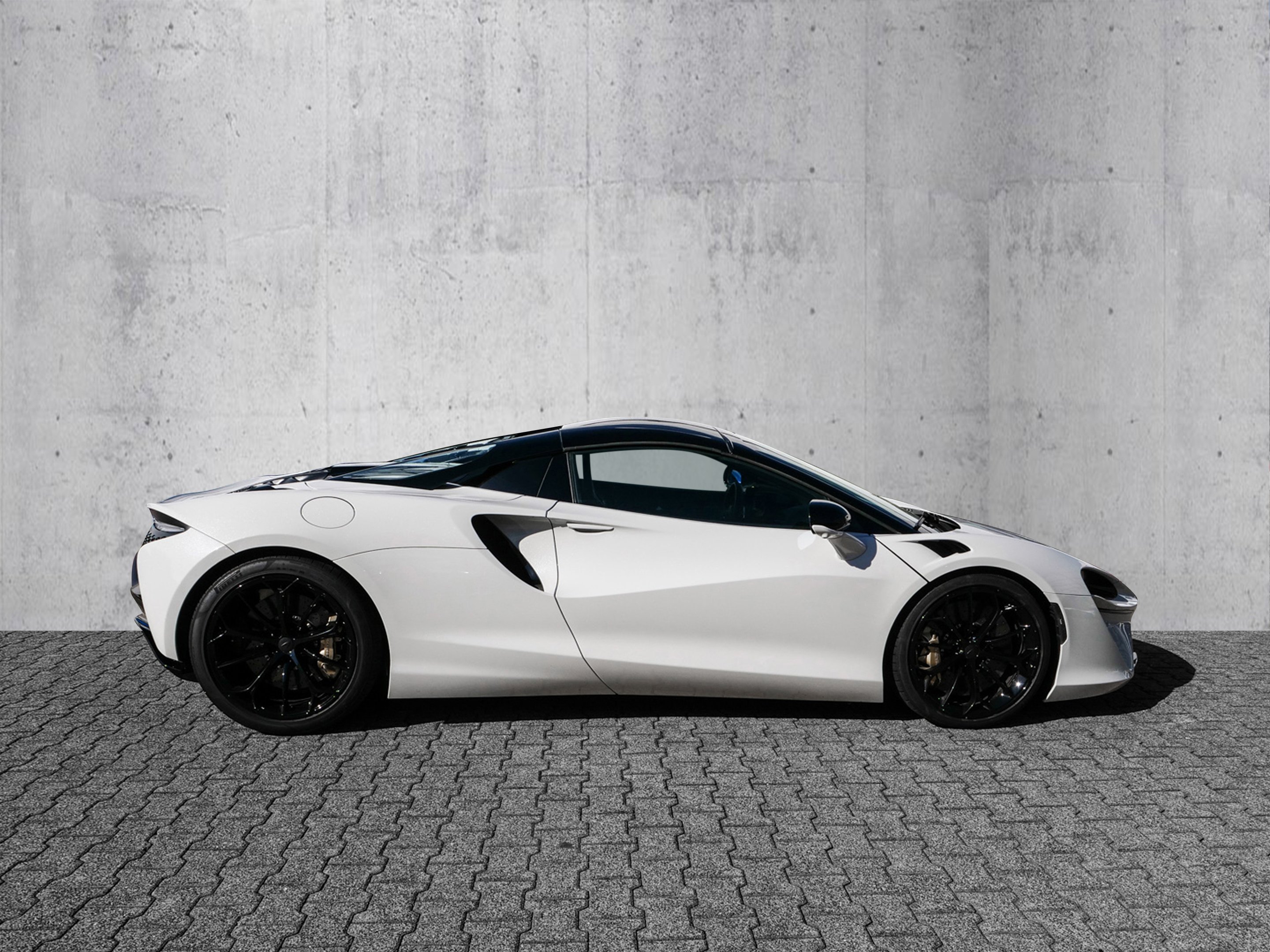 Thermal Insulated Windscreen, Wheel Finish - Gloss Black, S/Wheel Finish - Jet Black Leather, Armrest with McLaren Branding, Wireless Smartphone Charging, Stealth Badge Pack, S/W - Clasp and Paddles - Titanium, Steering Wheel Upper, McLaren Artura Spider, 2025 Model Year, Driving Assistant Pack, Perf - Black/Black and Black Accent, Front Fender Louvres - Gloss Black, Sill Finishers - Jet Black Leather, Seat Type - ClubSport with Lumbar Adj, 3-Point Seat Belts - Black, Interior Theme - Performance, McLaren Branded Floor Mats, McLaren Branded Floor Mats - Black, Exterior Elite Paint - Ice White, Paint Protection Film - Full Body, Star Forged Alloy Wheels
