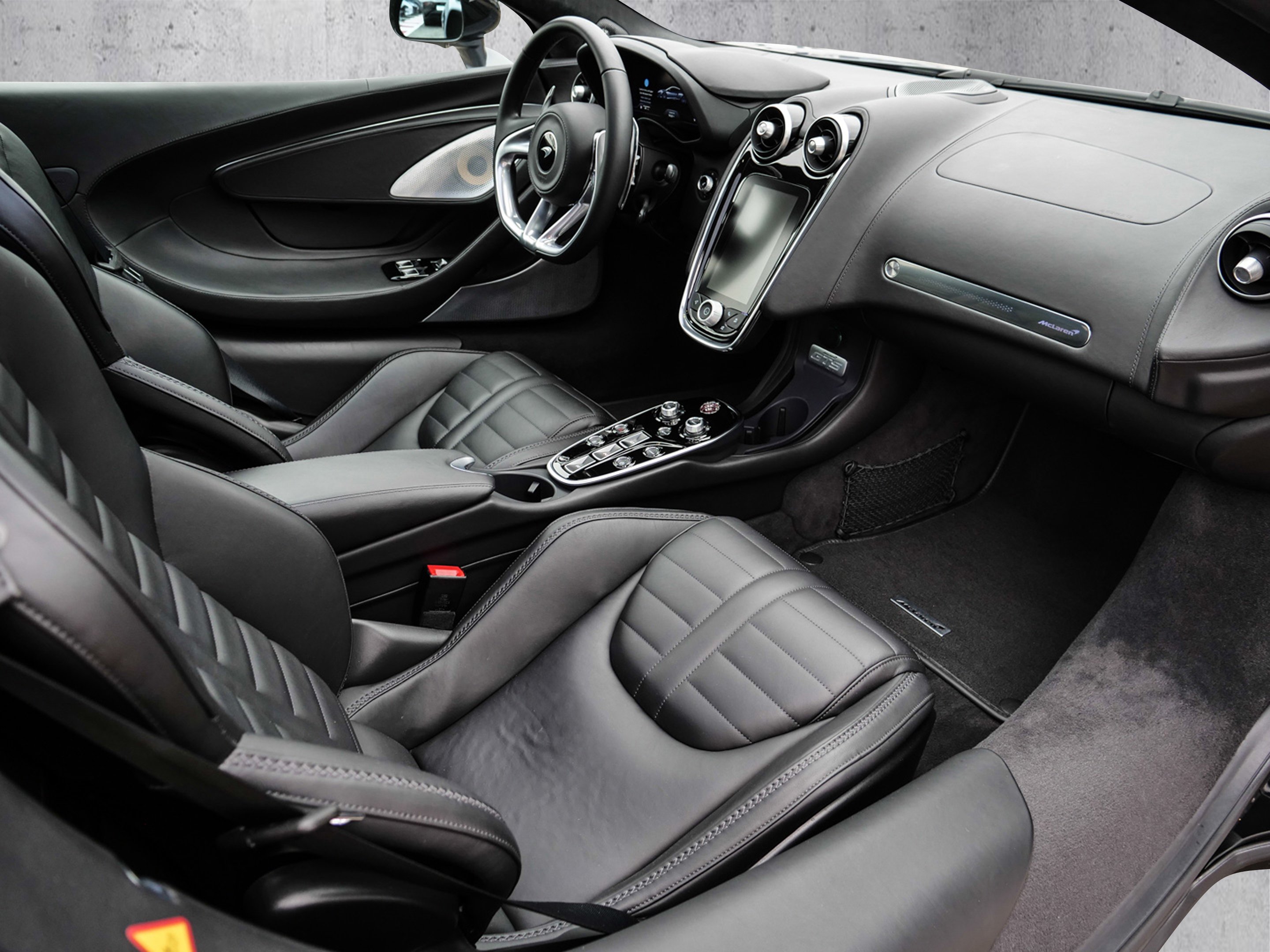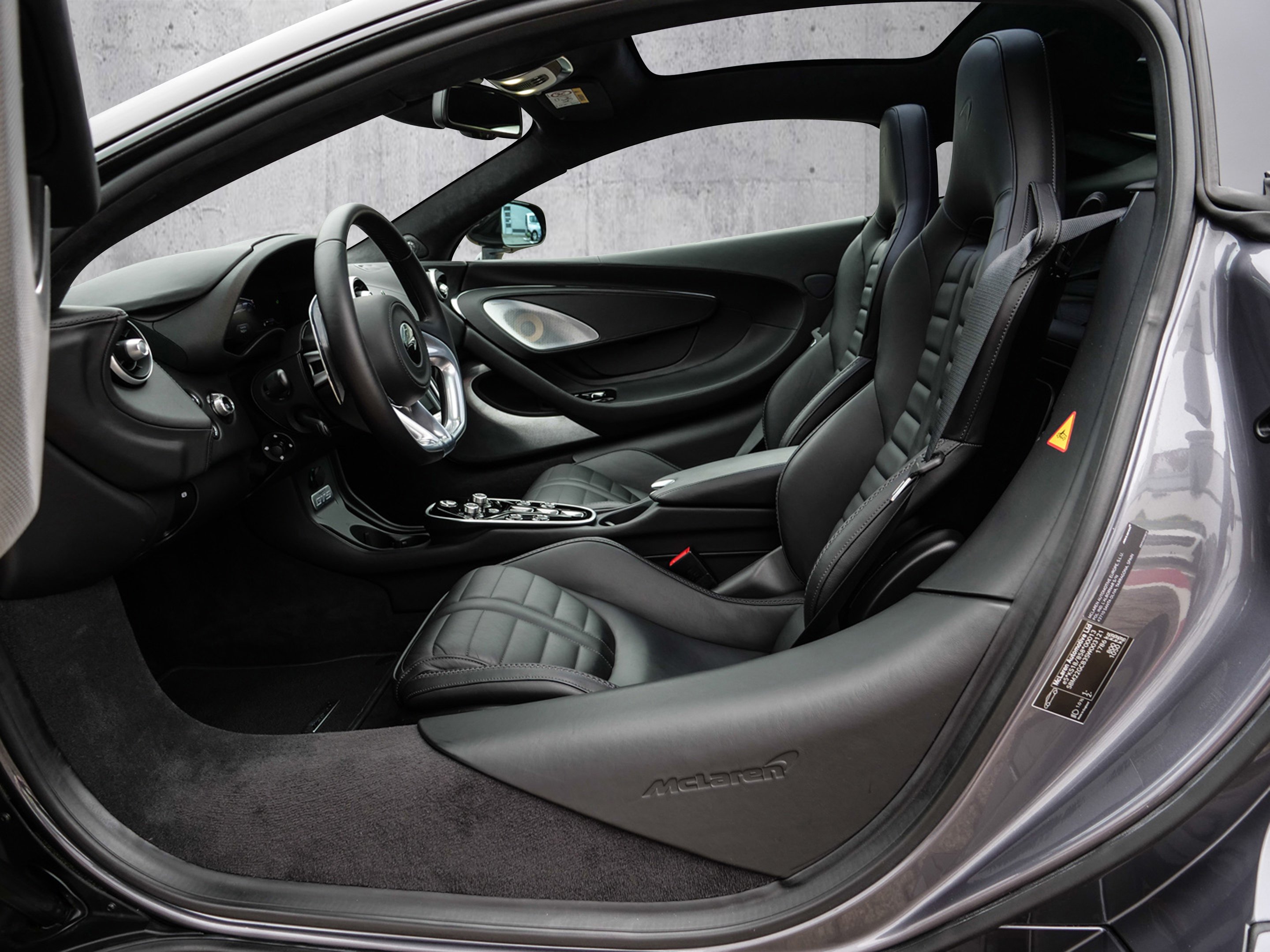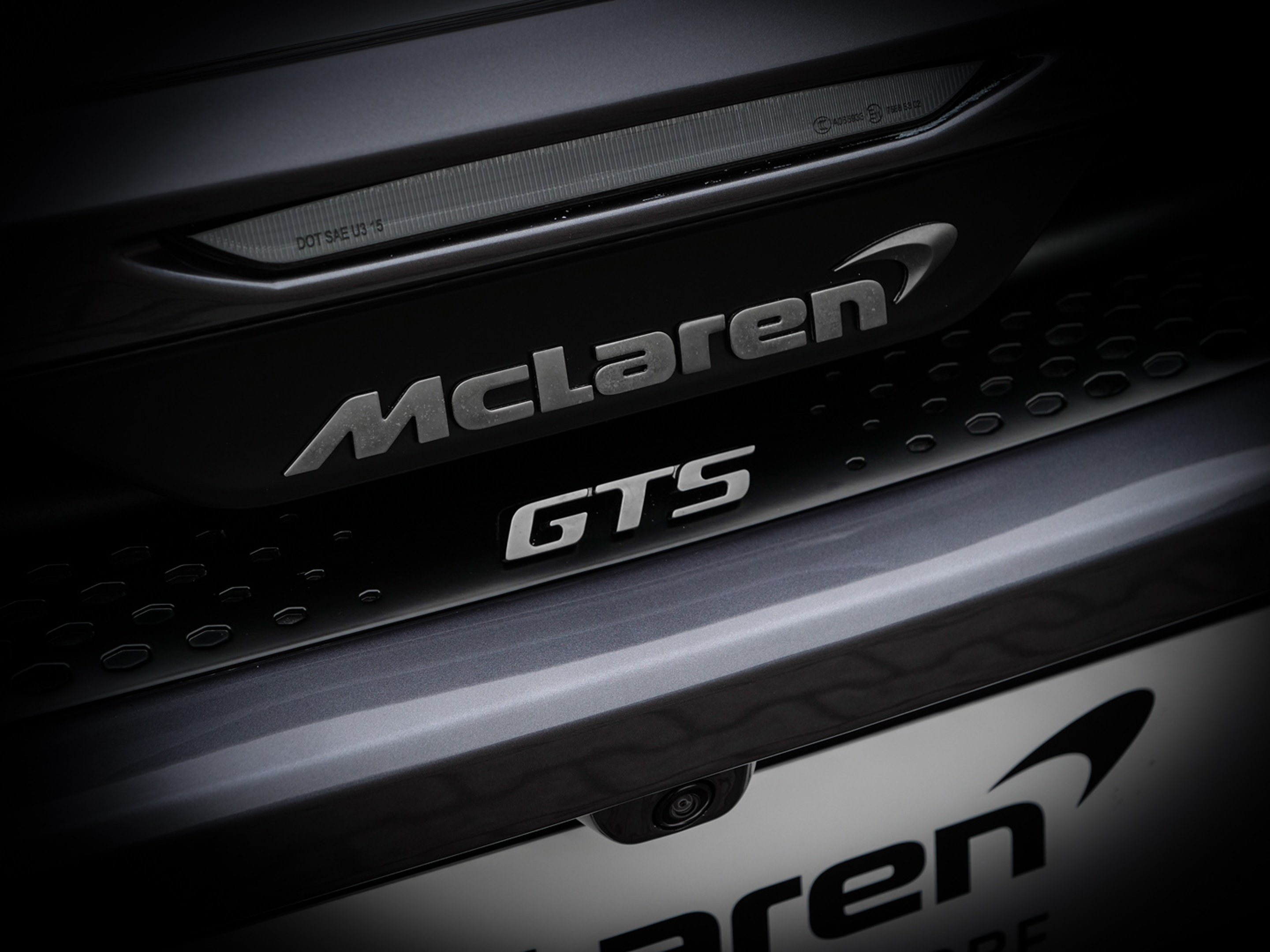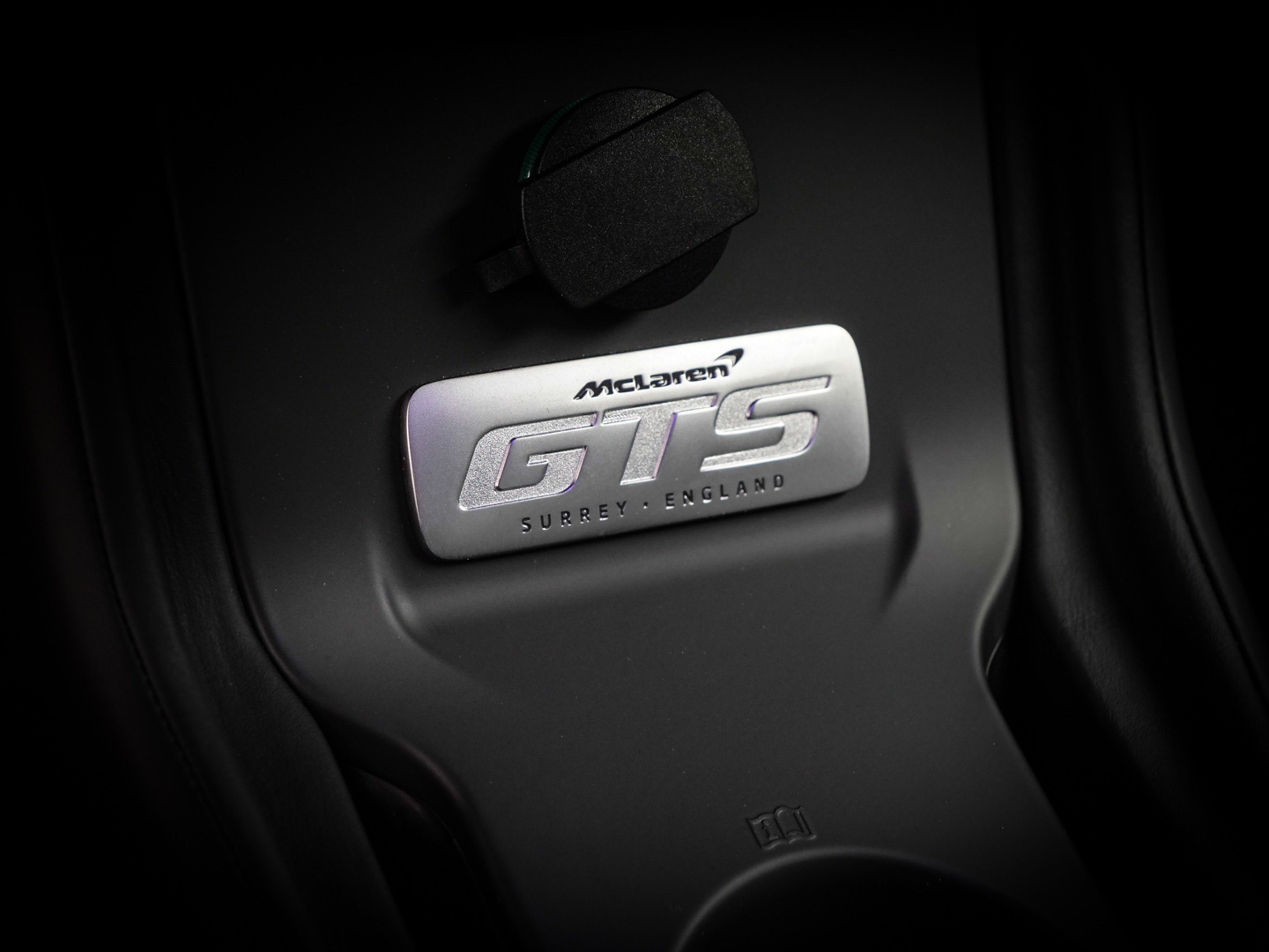GTS Body Style, Exhaust Finisher - Gloss Black, Armrest with McLaren Branding, Model Year 2025, Main Paint - Anthracite, 10 Spoke 20 Zoll Lightweight Forged Wheels Gloss Black, Brake Calipers - Flux Green with Silver Mashined Logo