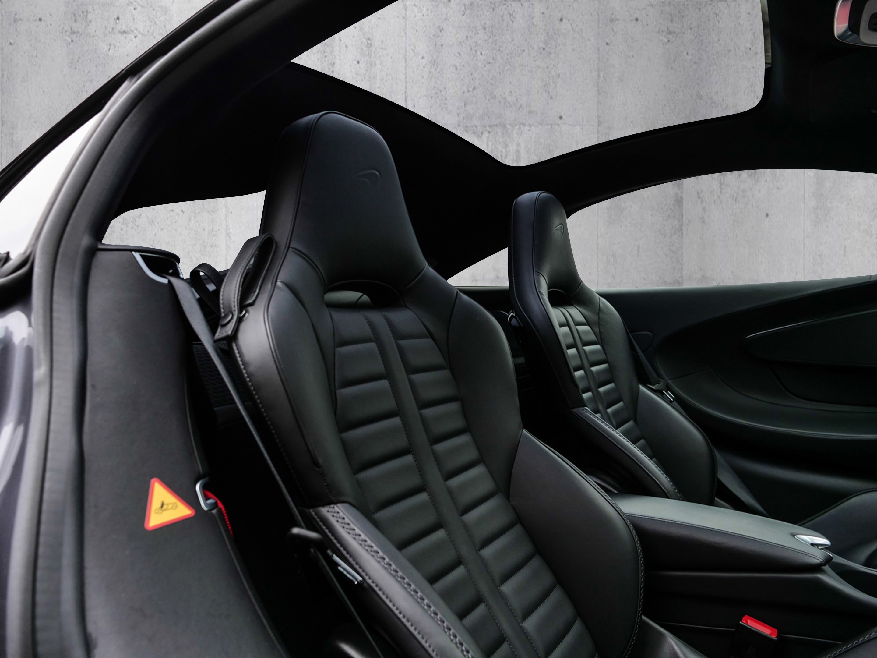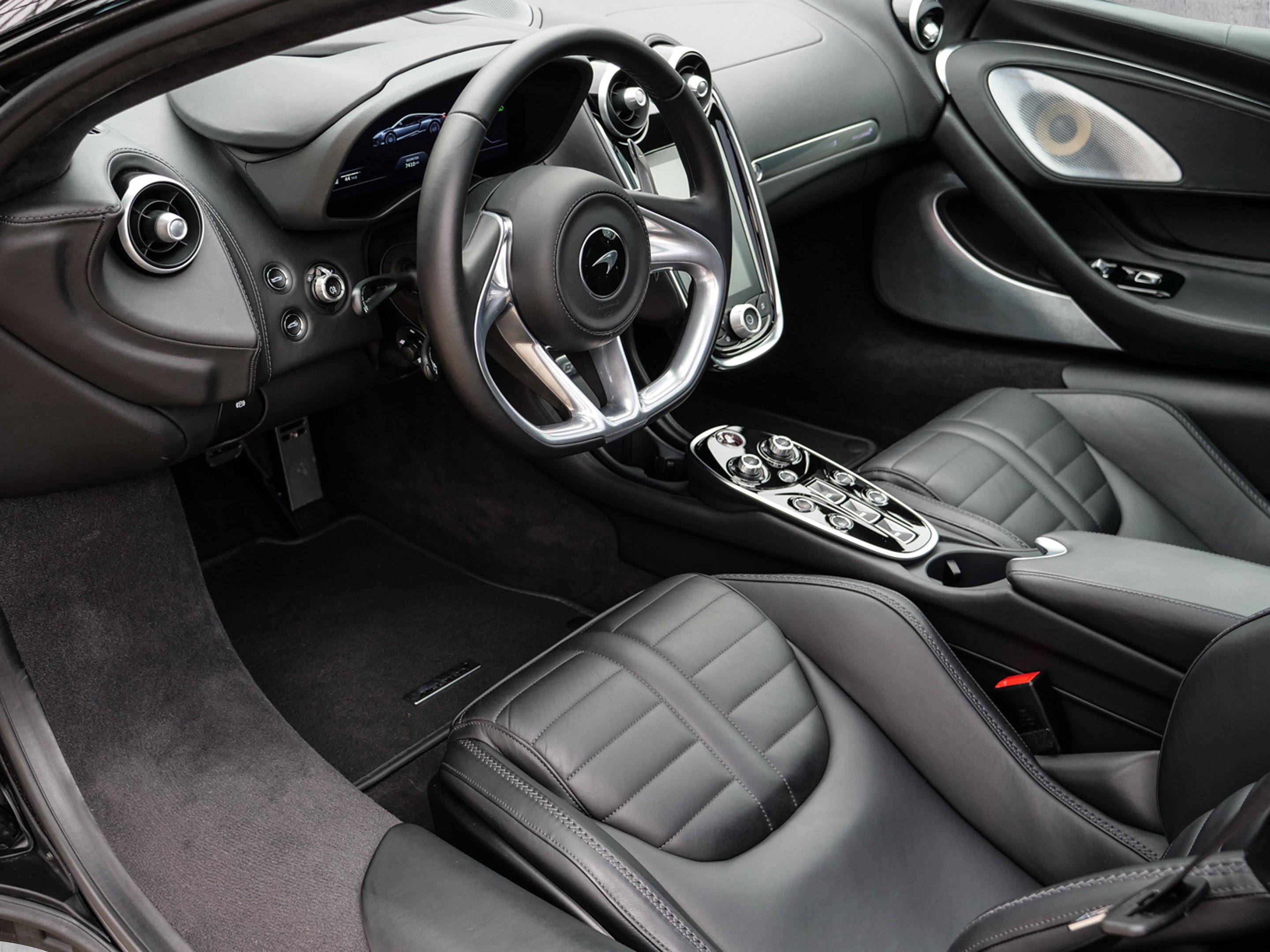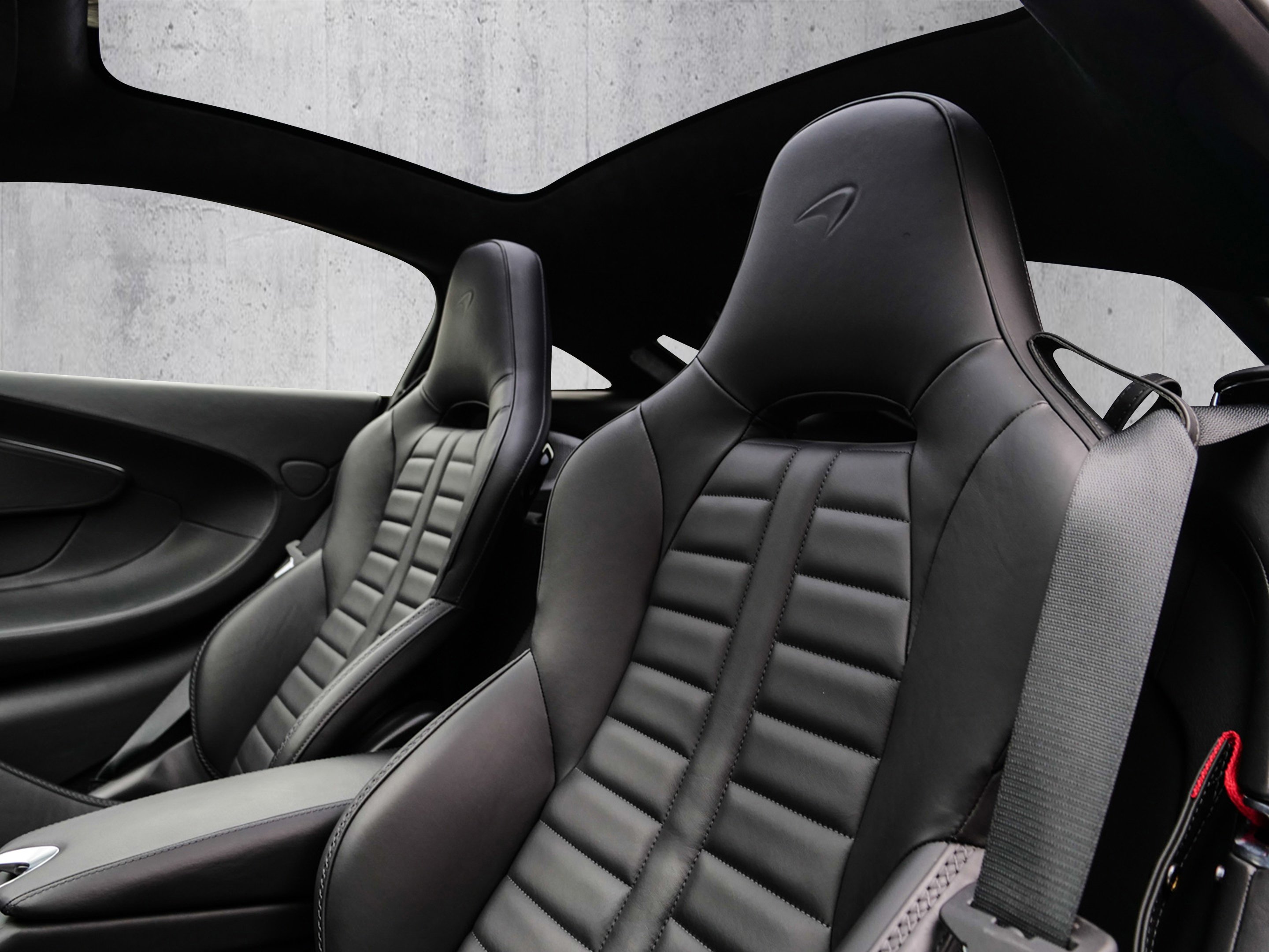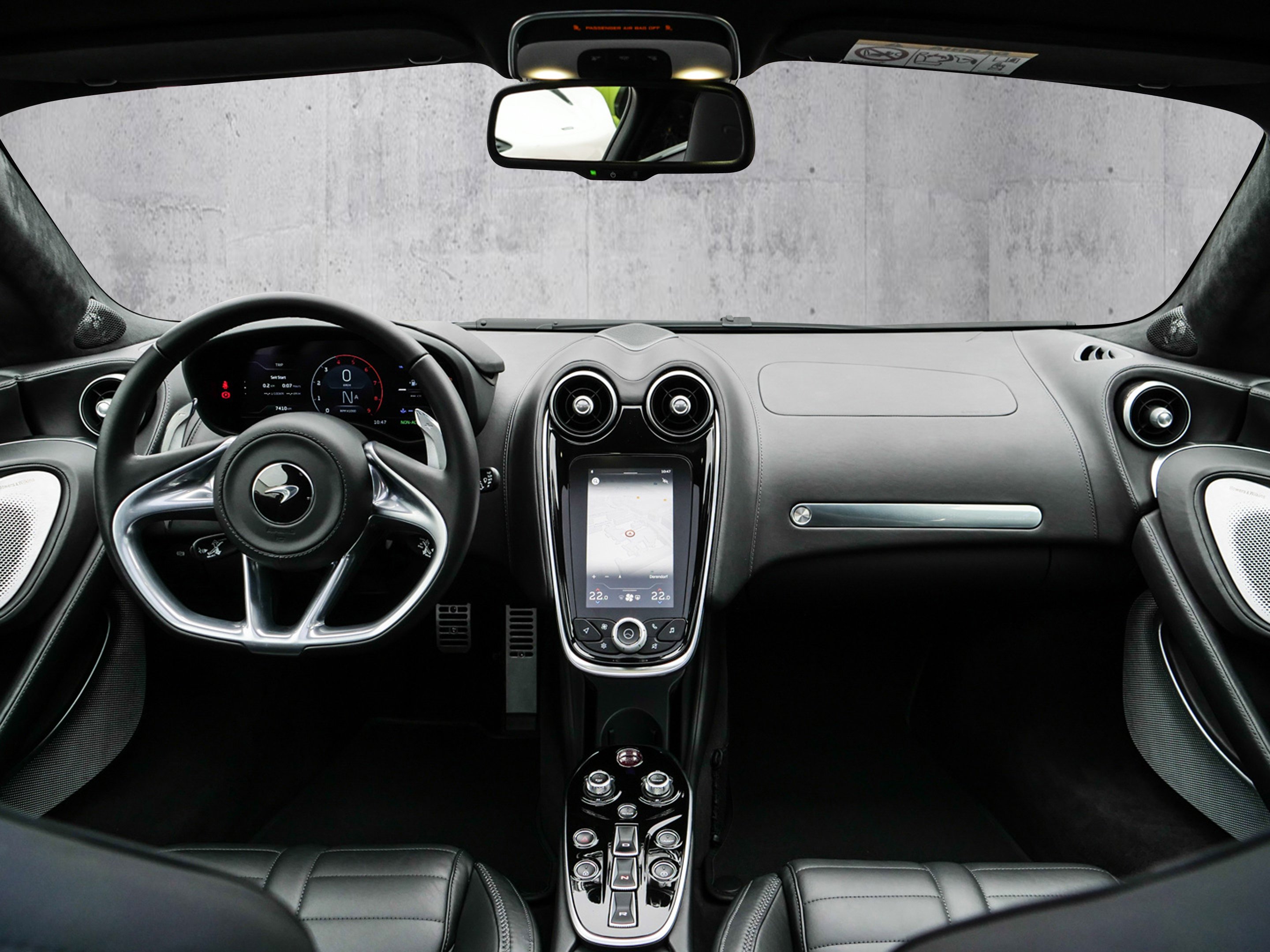 GTS Body Style, Exhaust Finisher - Gloss Black, Armrest with McLaren Branding, Model Year 2025, Main Paint - Anthracite, 10 Spoke 20 Zoll Lightweight Forged Wheels Gloss Black, Brake Calipers - Flux Green with Silver Mashined Logo