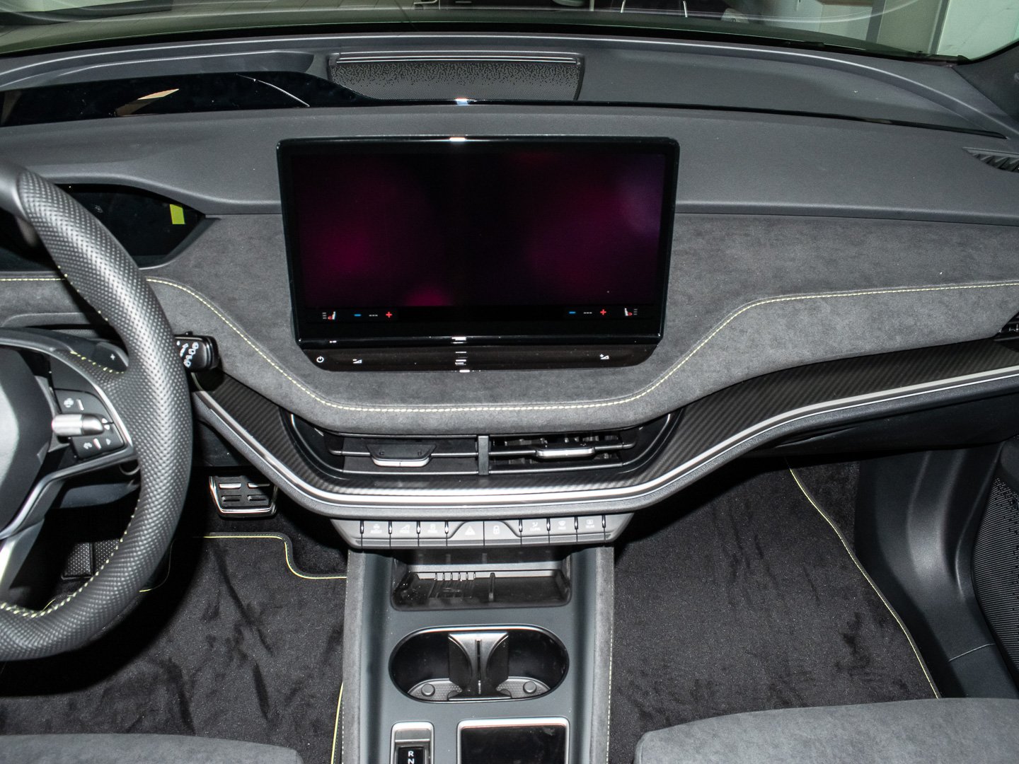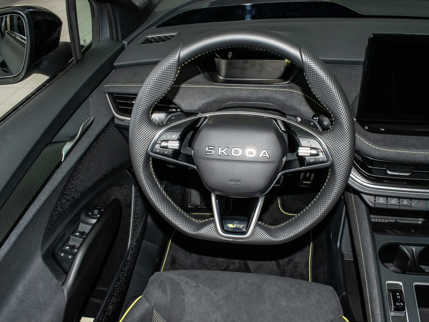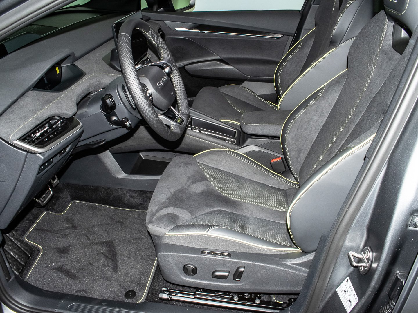 Audio-Navigationssystem mit Touchscreen-Farbdisplay, Induktionsladeschale für Smartphone 15 W, Infotainment-System mit 13 Display, Vorbereitung für Alkohol-Wegfahrsperre (Alcolock), Radstand Standard, Intelligente Geschwindigkeitsanpassung (ISA) inkl. Speed-Limiter, Ablagefächer (Gepäck-/Laderaum), Aussenspiegel schwarz lackiert und Türgriffe aussen in Wagenfarbe, Isofix-Aufnahmen für Kindersitz an Beifahrersitz und Rücksitze aussen (inkl. Top Tether), Rücksitz geteilt / klappbar (60:40) Mittelarmlehne und Durchladefunktion, SKODA Care Connect & Infotainment Online, Sitze vorn höhenverstellbar inkl. Lendenwirbelstütze verstellbar, Elektromotor (System: 250 kW) HA (EDFA), Elektromotor (System: 250 kW) VA (EDDA), Elektromotor 250 kW (cont. 77 kW - Dual-Elektromotor), Kofferraum / Heckklappe elektr. betätigt (öffnen + schliessen), Ausstattungs-Paket: Clever, Easy Start (Keyless Easy Entry), LED-Beleuchtung zwischen Scheinwerfer (Tech-Deck), LM-Felgen vorn/hinten: 8x20 / 9x20 (Draconis Aero - Schwarz - glanzgedreht), Anhängerkupplung mit elektr. Entriegelung - schwenkbar - inkl. Anhängerstabilisierung & Adapter, Ausstattungs-Paket: Plus, Sitze vorn elektr. verstellbar (mit Massagefunktion), Ausstattungs-Paket: Advanced, Design Selection RS Lounge, HV-Batterie 84 kWh brutto / 79 kWh netto, LM-Felgen vorn/hinten: 8.5x21 / 9x21 (Vision Aero - Anthrazit - glanzgedreht), Sitzbezug / Polsterung: Kunstleder / Microfaser schwarz mit Ziernaht in Lime