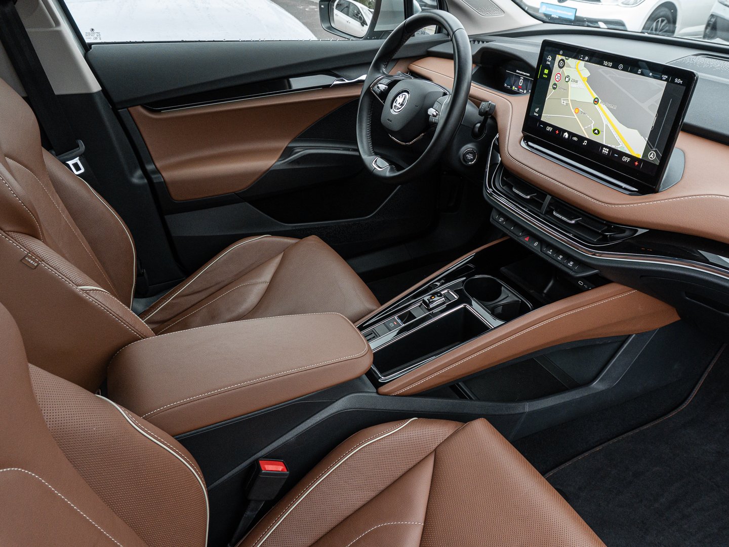 1M6 Anhängerzugvorrichtung schwenkbar inklusive Gespannstabilisierung, 4H3 Manuelle Kindersicherung der hinteren Türen Entfall elektrische Kindersicherung, IN1 Steuerung Hinterachsgewicht, K8G Karosserievariante SUV, NZ2 Notruffunktion eCall+, 3A2 ISOFIX-Verankerung auf dem Beifahrersitzund den äußeren Rücksitzen inklusive Top-Tether, 5MN Dekorleisten Piano black, 6H0 Standard Stoßfänge hinten, 6KJ Verchromter Kühlergrillrahmen, 9P4 Gurtanlegesignalisation auf den vorderensowie den hinteren Sitzen, 9WT SmartLink sowie Wireless SmartLink (Apple CarPlay & Android Auto), ES7 Schnellladeanschluss (CCS / Combo 2), QQ9 Ambientebeleuchtung vorn mehrfarbig sowie Fußraumbeleuchtung und beleuchteteTürgriffmulden, 7P4 Einstellbare Lendenwirbelstützen in denVordersitzen, LX0 Steuerung Zellmodul, J27 Reifen 235/55 R19, LH2 Batterieladeleistung max. 100 kW (DC), 4I7 Zentralverriegelung inklusive im Schlüssel integrierter Funkfernbedienungund Easy Start, U9B 2 USB-Anschlüsse vorn, 3V6 Geschwindigkeitsregelanlage inkl. Speed Limiter vorbereitet für Adaptiver Abstandsassistent, 7X1 Parksensoren hinten mit Rangierbremsfunkion, L1L Elektro-Motor Systemleistung 132 kW, N4V Sitzbezüge Leder cognac