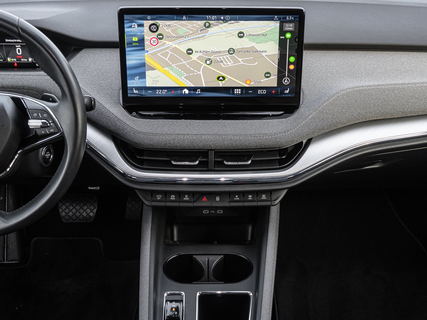 9IJ Bluetooth Freisprecheinrichtung und Phonebox mit induktiver Ladefunktion, IN1 Steuerung Hinterachsgewicht, K8G Karosserievariante SUV, NZ2 Notruffunktion eCall+, 3A2 ISOFIX-Verankerung auf dem Beifahrersitzund den äußeren Rücksitzen inklusive Top-Tether, 4H5 Elektrisch betätigte Kindersicherung fürdie hinteren Türen und Fenster, 4K6 KESSY (Schlüsselloses Zugangs- und Start-Stopp-System) und SAFE-System, 6H0 Standard Stoßfänge hinten, 6KJ Verchromter Kühlergrillrahmen, 9P4 Gurtanlegesignalisation auf den vorderensowie den hinteren Sitzen, 9WT SmartLink sowie Wireless SmartLink (Apple CarPlay & Android Auto), ES7 Schnellladeanschluss (CCS / Combo 2), U9C 2 USB-Anschlüsse vorn (Typ-C) sowie 2 USB-Ladeanschlüsse hinten (Typ-C), 7P4 Einstellbare Lendenwirbelstützen in denVordersitzen, 7X2 Parksensoren vorn und hinten mit Rangierbremsfunktion, LX0 Steuerung Zellmodul, 98B Ausstattungspaket Fahrassistenz, J27 Reifen 235/55 R19, J9B Hochvolt-Batterie 55 kwh, L1K Elektro-Motor Systemleistung 109 kW, LH2 Batterieladeleistung max. 100 kW (DC), P04 19 Leichtmetallfelgen Proteus Silber, U60 19 Leichtmetallfelge Proteus Silber, WAN Ausstattungspaket Clever, WQL Ausstattungspaket für Enyaq iV 50 Wiederanlauf