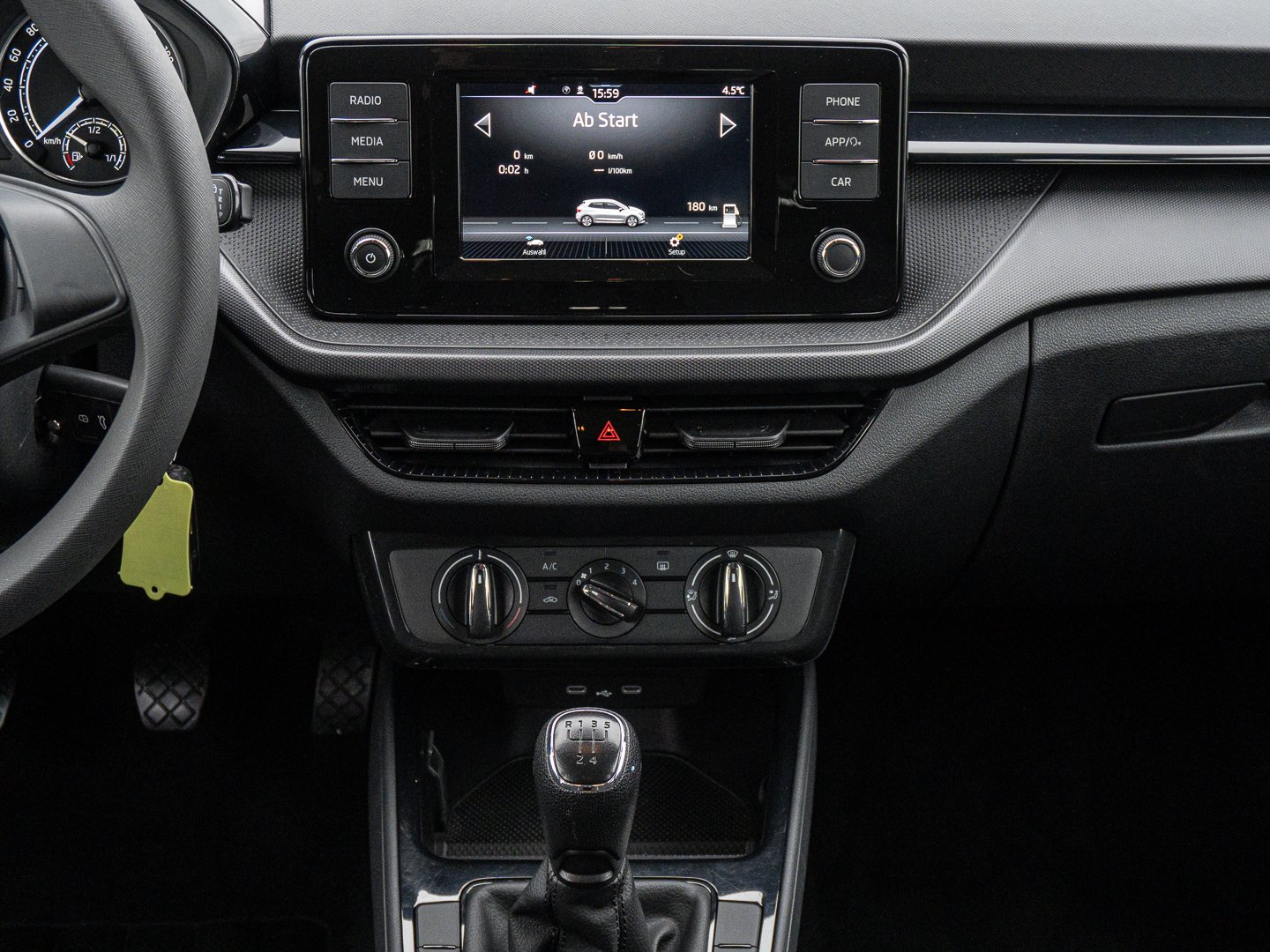9P9 Gurtanlagesignalisation für die vorderenund hinteren Sitze, 4BI Emissionsnorm EU6d-ISC-FCM (AP), IN1 Steuerung Hinterachsgewicht, QK1 Multifunktionskamera (Für Fahrerassistenzsysteme), 3A2 ISOFIX-Verankerung auf dem Beifahrersitzund den äußeren Rücksitzen inklusive Top-Tether, 6KL Verchromter Kühlergrillrahmen, J90 Reifen 185/65 R15, K8G Karosserievariante Kurzheck, 0I0 40l Kraftstofftank, YOQ Care Connect (1 Jahr Laufzeit), 40I 15 Stahlfelgen, 6K2 Frontradarassistent inklusive City-Notbremsfunktion, A9S Ausstattungslinie Active, D7I 1.0l MPI 59 kW / 80 PS, I8P Musiksystem Swing mit 6.5 -Infotainmentbildschirm, T5Y 1.0l MPI (3-Zylinder Ottomotor)