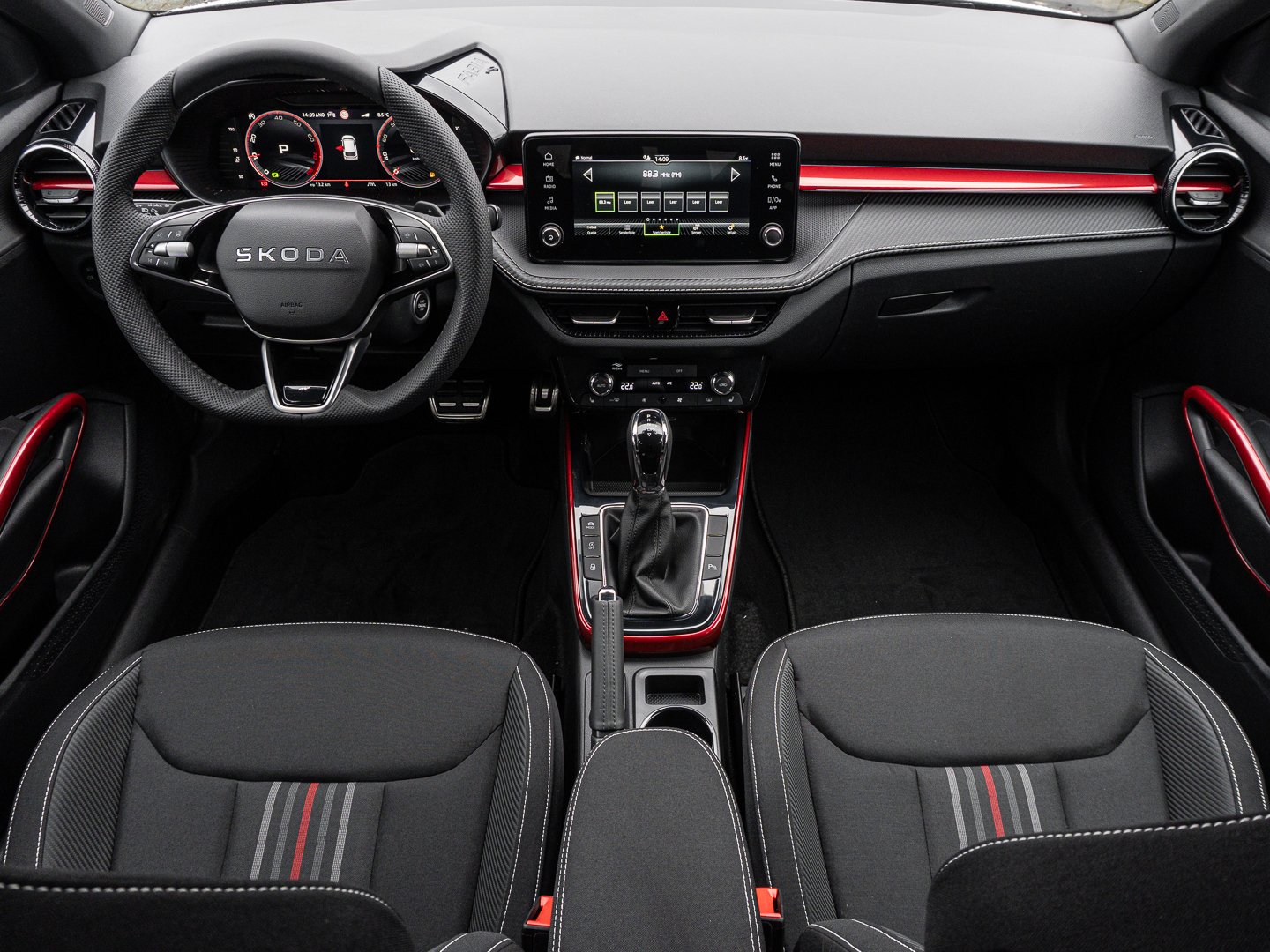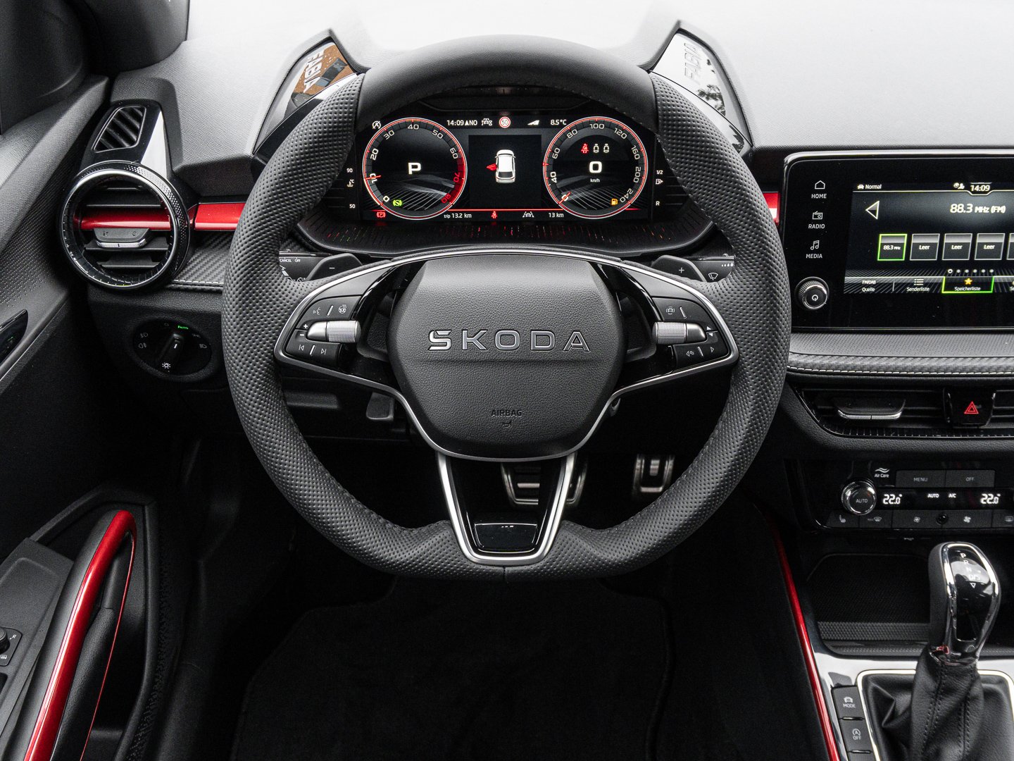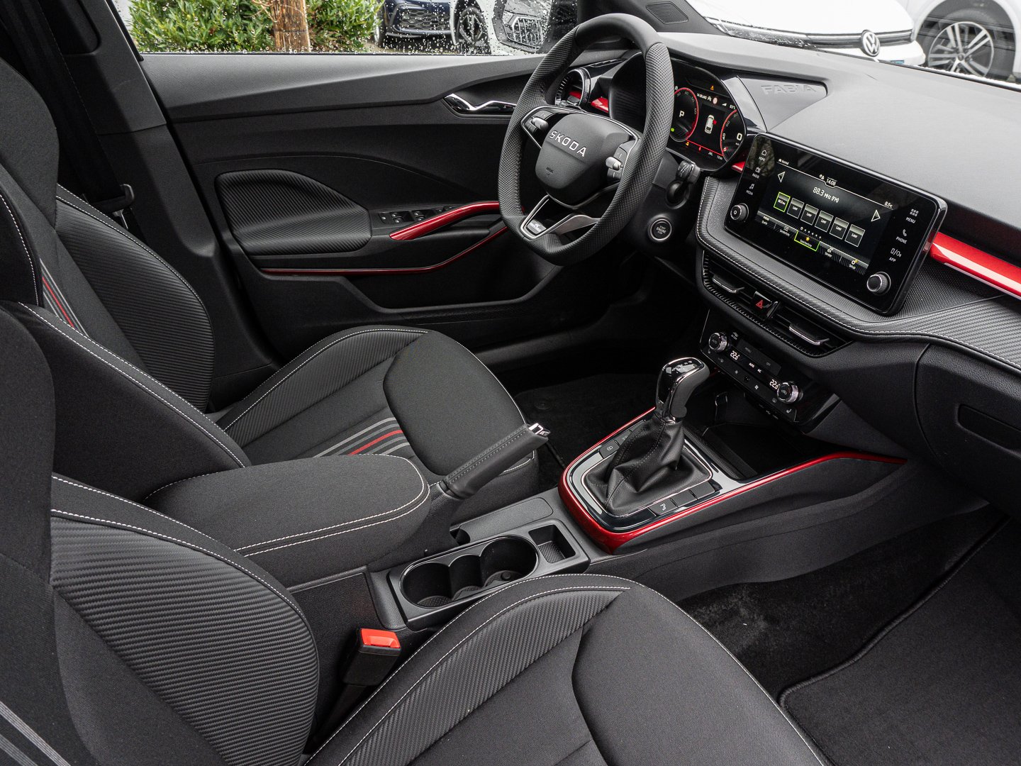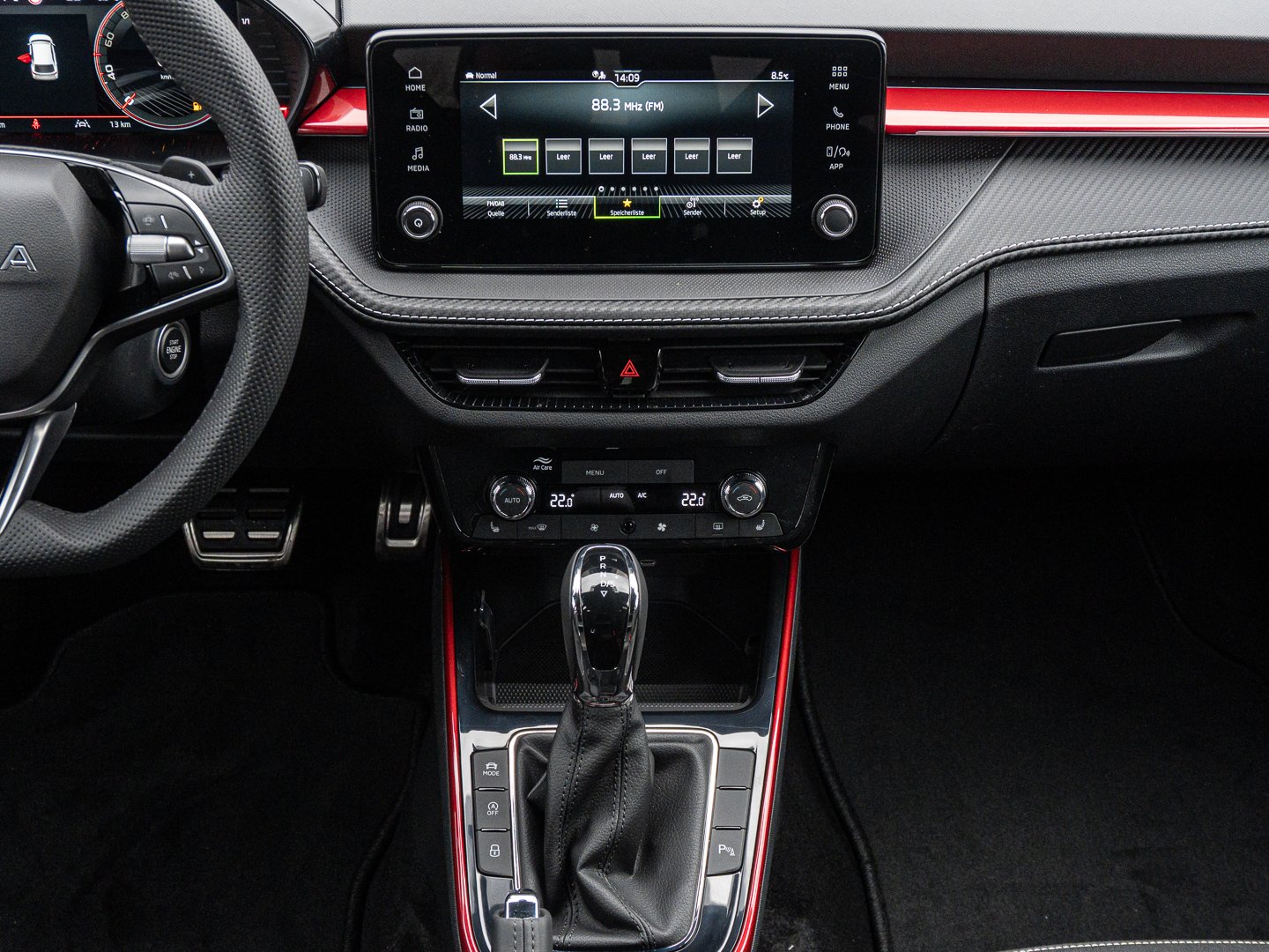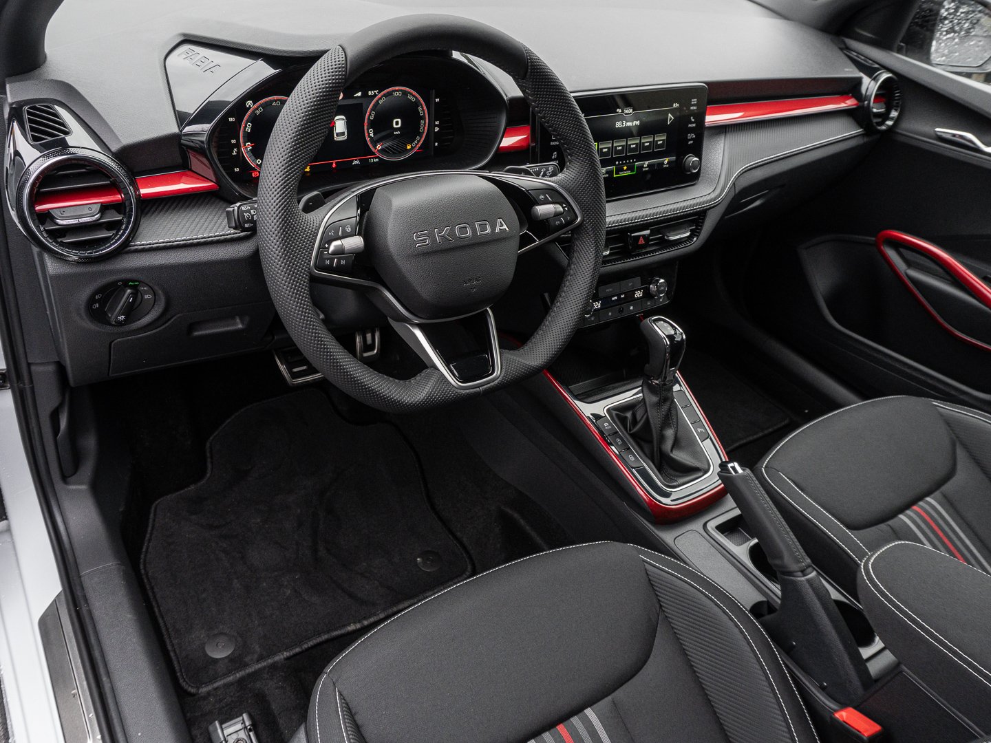 EM2 Aufmerksamkeits- und Müdigkeitserkennung, 8RL 4 Lautsprecher vorn + 2 hinten inkl. koda Surround, 8VG LED SBBR Low LED, 9P9 Gurtanlagesignalisation für die vorderenund hinteren Sitze, 9WJ SMARTLINK (wired and wireless connect), I8U KODA Infotainment, 9ZV Komfort Telefonie BT Kopplebox, EF1 Steuerung Fahrprofilauswahl, IN1 Steuerung Hinterachsgewicht, QK1 Multifunktionskamera (Für Fahrerassistenzsysteme), 3A2 ISOFIX-Verankerung auf dem Beifahrersitzund den äußeren Rücksitzen inklusive Top-Tether, 7P4 Einstellbare Lendenwirbelstützen in denVordersitzen, K8G Karosserievariante Kurzheck, 0I0 40l Kraftstofftank, 2C5 Lenksäule horizintal- und vertikal einstellbar, 3N6 Cargoelement im Kofferraum, 3NZ Rücksitzlehne 60:40 geteilt umlegbar, 4VN Emissionsnorm EU6e (EB), 5XR Sonnenblenden mit Spiegel auf Fahrerseite, 6K2 Frontradarassistent (Front Assist), 6SJ Gepäckraumwendematte - Zweiseitiger Bodenbelag (Teppich/gummiert), 7L6 Start-Stopp-Automatik mit Rekuperation (Bremsenergierückgewinnung), YOK Care Connect (3 Jahr Laufzeit), 9AK Klimaanlage Climatronic (2-Zonen) mit Allergenfilter und Geruchsfilter, NZ4 Notruffunktion eCall+, 6XK Elektrisch einstell- beheiz- und anklappbare Außenspiegel, U9E 2 USB-Anschlüsse vorn und 2 USB-Ladeanschlüsse hinten, 8S7 2 Leseleuchten vorn 2 hinten, A1E Steuerung Ländercluster, DS8 1.0l TSI 85 kW / 115 PS, FM9 Steuerung Varianten, QQ8 LED-Ambientebeleuchtung vorn, T0M 1.0l TSI (3-Zylinder Ottomotor), 5MT Dekorleiste in Red-Metallic, 6FH Außenspiegelgehäuse in Kontrastlackierung, 6KF Kühlergrillrahmen, A8F Ausstattungslinie Monte Carlo, CI8 16 Leichtmetallfelgen Proxima Schwarz glanzgedreht, N4A Interieur aus Stoff kombiniert mit hochwertigen Materialien