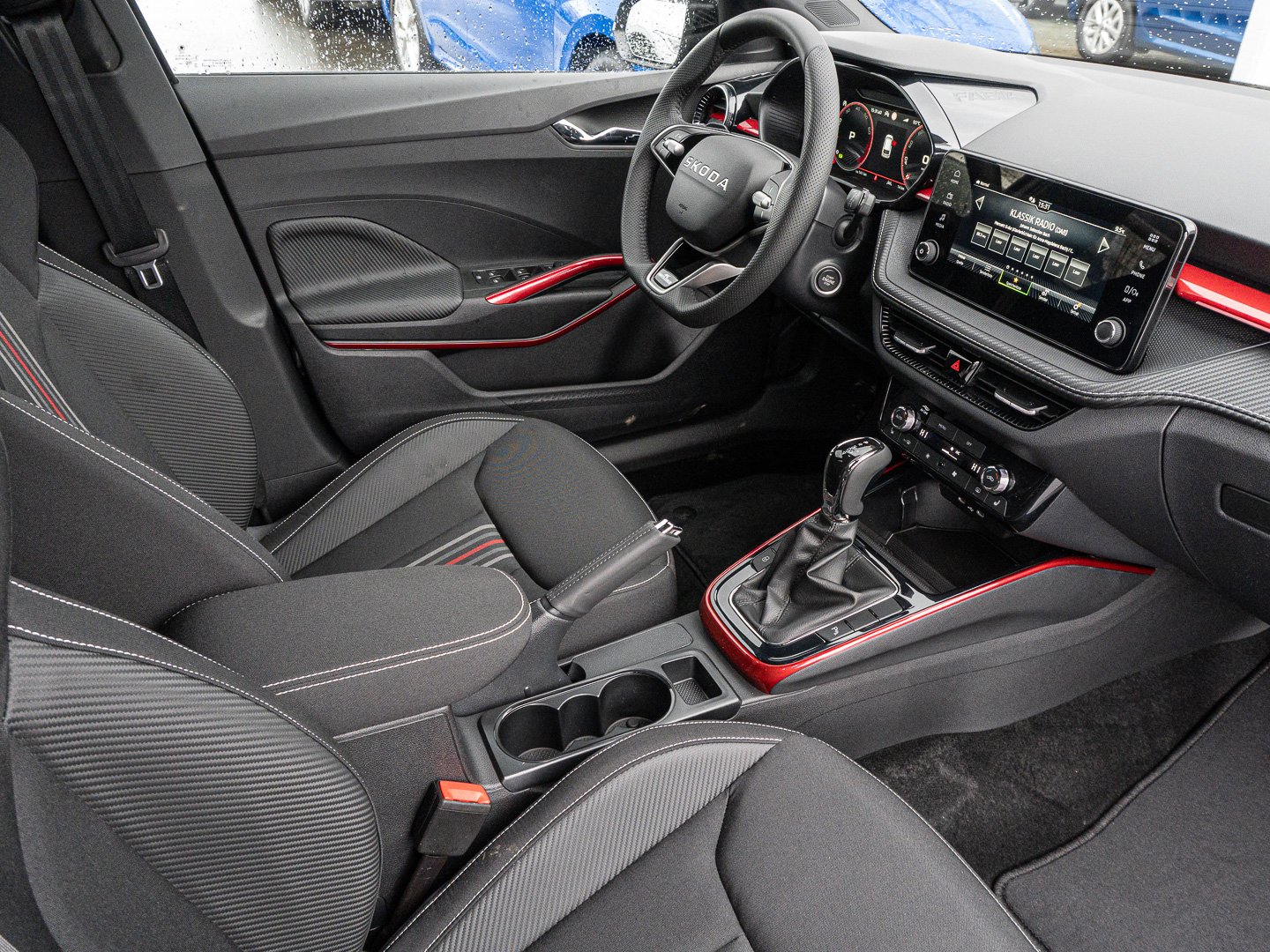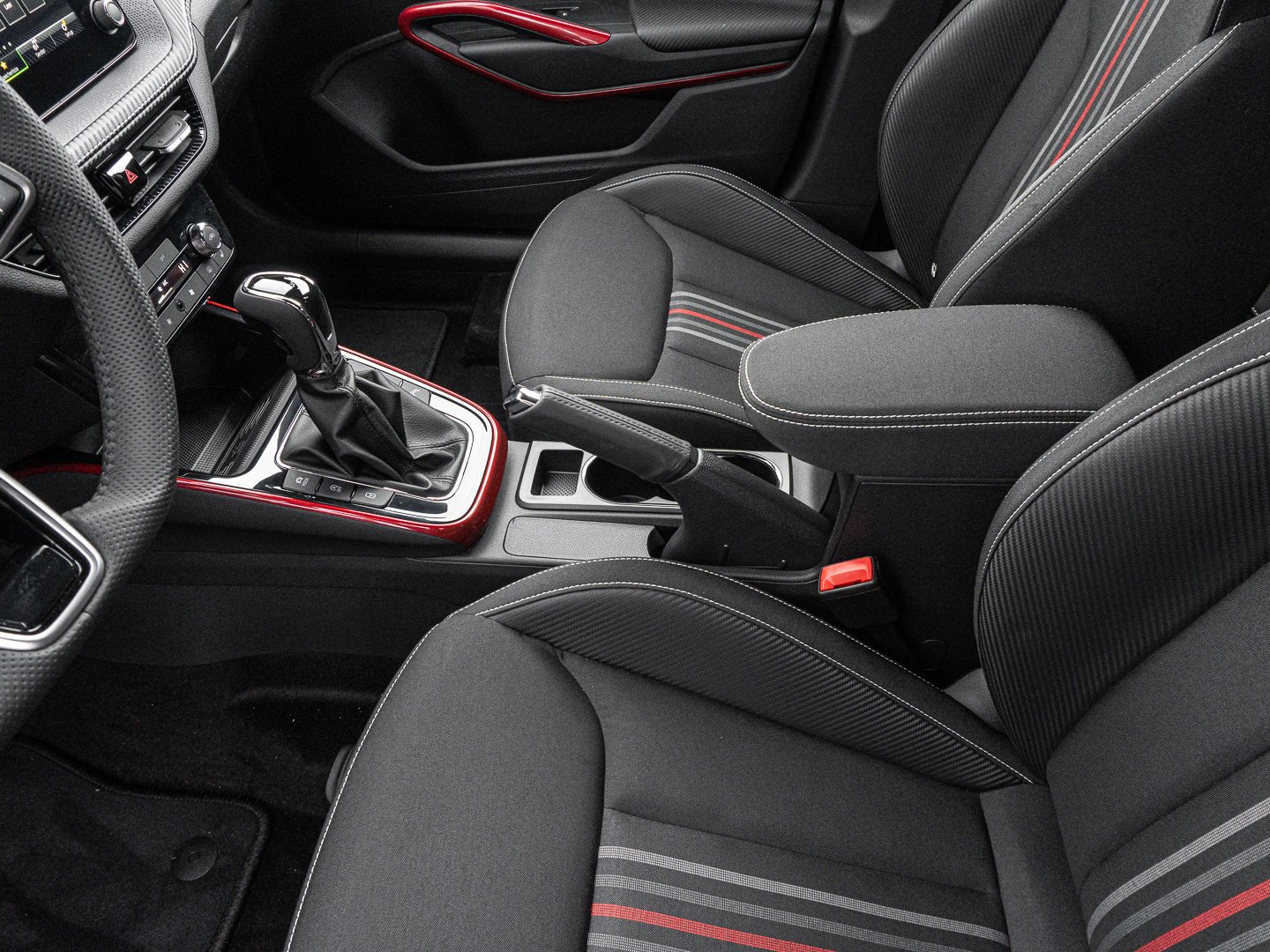 EM2 Aufmerksamkeits- und Müdigkeitserkennung, 8RL 4 Lautsprecher vorn + 2 hinten inkl. koda Surround, 8VG LED SBBR Low LED, 9P9 Gurtanlagesignalisation für die vorderenund hinteren Sitze, 9WJ SMARTLINK (wired and wireless connect), I8U KODA Infotainment, 9ZV Komfort Telefonie BT Kopplebox, EF1 Steuerung Fahrprofilauswahl, IN1 Steuerung Hinterachsgewicht, QK1 Multifunktionskamera (Für Fahrerassistenzsysteme), 3A2 ISOFIX-Verankerung auf dem Beifahrersitzund den äußeren Rücksitzen inklusive Top-Tether, 7P4 Einstellbare Lendenwirbelstützen in denVordersitzen, K8G Karosserievariante Kurzheck, 0I0 40l Kraftstofftank, 2C5 Lenksäule horizintal- und vertikal einstellbar, 3N6 Cargoelement im Kofferraum, 3NZ Rücksitzlehne 60:40 geteilt umlegbar, 4VN Emissionsnorm EU6e (EB), 5XR Sonnenblenden mit Spiegel auf Fahrerseite, 6K2 Frontradarassistent (Front Assist), 6SJ Gepäckraumwendematte - Zweiseitiger Bodenbelag (Teppich/gummiert), 7L6 Start-Stopp-Automatik mit Rekuperation (Bremsenergierückgewinnung), YOK Care Connect (3 Jahr Laufzeit), 9AK Klimaanlage Climatronic (2-Zonen) mit Allergenfilter und Geruchsfilter, NZ4 Notruffunktion eCall+, 6XK Elektrisch einstell- beheiz- und anklappbare Außenspiegel, U9E 2 USB-Anschlüsse vorn und 2 USB-Ladeanschlüsse hinten, 8S7 2 Leseleuchten vorn 2 hinten, A1E Steuerung Ländercluster, DS8 1.0l TSI 85 kW / 115 PS, FM9 Steuerung Varianten, QQ8 LED-Ambientebeleuchtung vorn, T0M 1.0l TSI (3-Zylinder Ottomotor), 5MT Dekorleiste in Red-Metallic, 6FH Außenspiegelgehäuse in Kontrastlackierung, 6KF Kühlergrillrahmen, A8F Ausstattungslinie Monte Carlo, CI8 16 Leichtmetallfelgen Proxima Schwarz glanzgedreht, N4A Interieur aus Stoff kombiniert mit hochwertigen Materialien