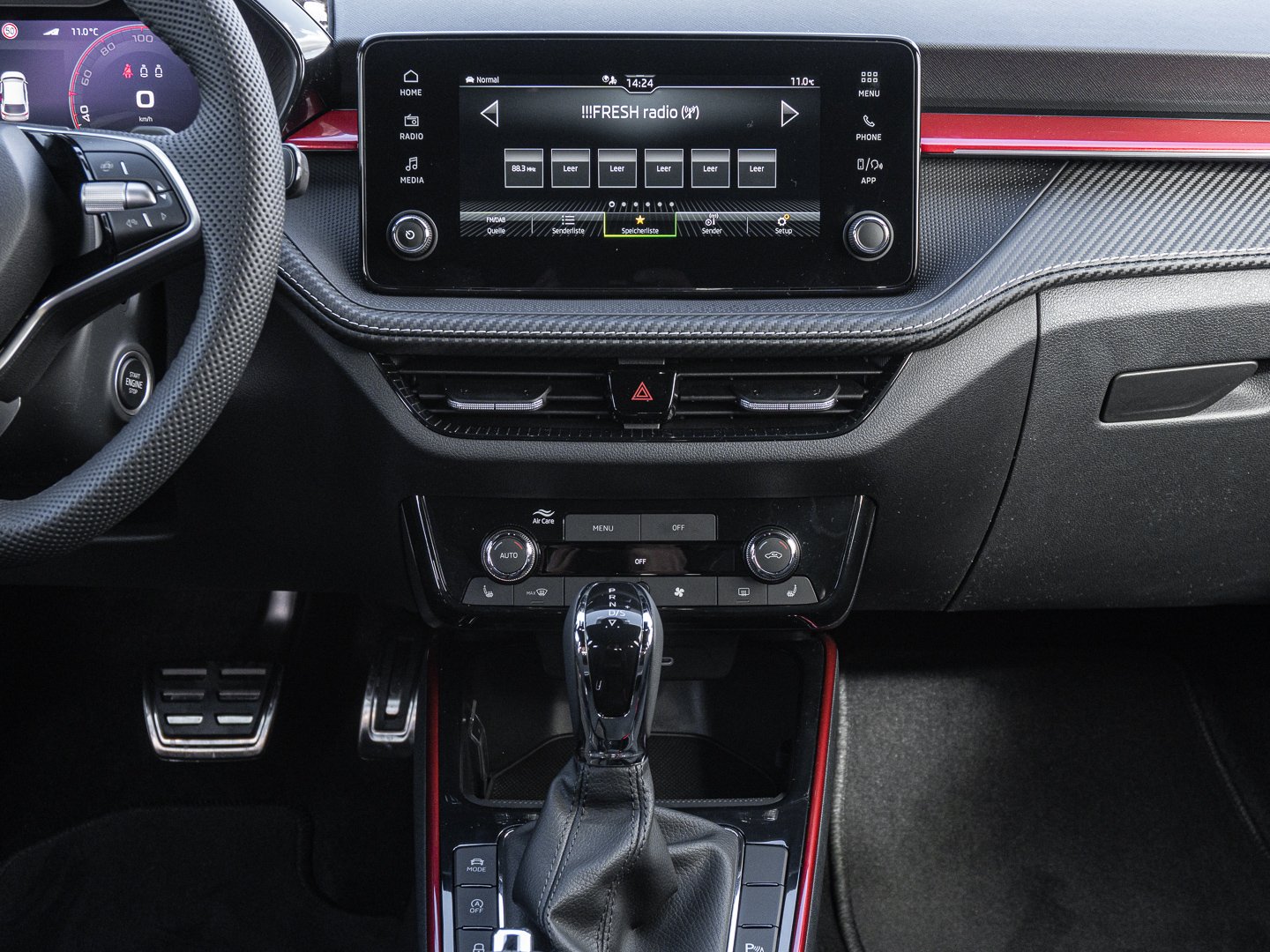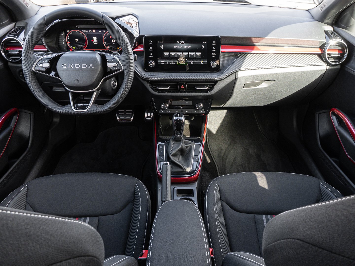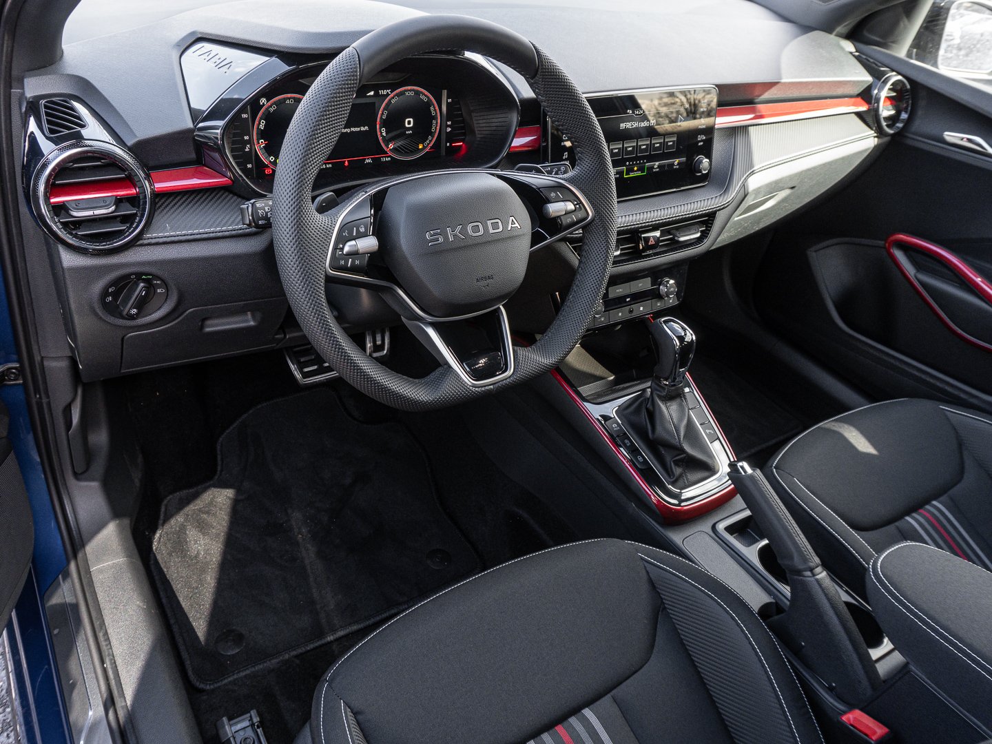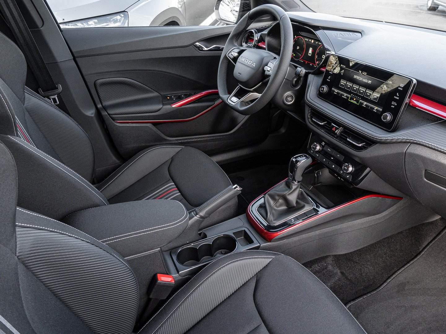 EM2 Aufmerksamkeits- und Müdigkeitserkennung, 8RL 4 Lautsprecher vorn + 2 hinten inkl. koda Surround, 8VG LED SBBR Low LED, 9P9 Gurtanlagesignalisation für die vorderenund hinteren Sitze, 9WJ SMARTLINK (wired and wireless connect), I8U KODA Infotainment, 9ZV Komfort Telefonie BT Kopplebox, EF1 Steuerung Fahrprofilauswahl, IN1 Steuerung Hinterachsgewicht, QK1 Multifunktionskamera (Für Fahrerassistenzsysteme), 3A2 ISOFIX-Verankerung auf dem Beifahrersitzund den äußeren Rücksitzen inklusive Top-Tether, 7P4 Einstellbare Lendenwirbelstützen in denVordersitzen, K8G Karosserievariante Kurzheck, 0I0 40l Kraftstofftank, 2C5 Lenksäule horizintal- und vertikal einstellbar, 3N6 Cargoelement im Kofferraum, 3NZ Rücksitzlehne 60:40 geteilt umlegbar, 4VN Emissionsnorm EU6e (EB), 5XR Sonnenblenden mit Spiegel auf Fahrerseite, 6K2 Frontradarassistent (Front Assist), 6SJ Gepäckraumwendematte - Zweiseitiger Bodenbelag (Teppich/gummiert), 7L6 Start-Stopp-Automatik mit Rekuperation (Bremsenergierückgewinnung), YOK Care Connect (3 Jahr Laufzeit), 9AK Klimaanlage Climatronic (2-Zonen) mit Allergenfilter und Geruchsfilter, NZ4 Notruffunktion eCall+, 6XK Elektrisch einstell- beheiz- und anklappbare Außenspiegel, U9E 2 USB-Anschlüsse vorn und 2 USB-Ladeanschlüsse hinten, 8S7 2 Leseleuchten vorn 2 hinten, DS8 1.0l TSI 85 kW / 115 PS, FM9 Steuerung Varianten, QQ8 LED-Ambientebeleuchtung vorn, T0M 1.0l TSI (3-Zylinder Ottomotor), 5MT Dekorleiste in Red-Metallic, 6FH Außenspiegelgehäuse in Kontrastlackierung, 6KF Kühlergrillrahmen, A8F Ausstattungslinie Monte Carlo, CI8 16 Leichtmetallfelgen Proxima Schwarz glanzgedreht, N4A Interieur aus Stoff kombiniert mit hochwertigen Materialien