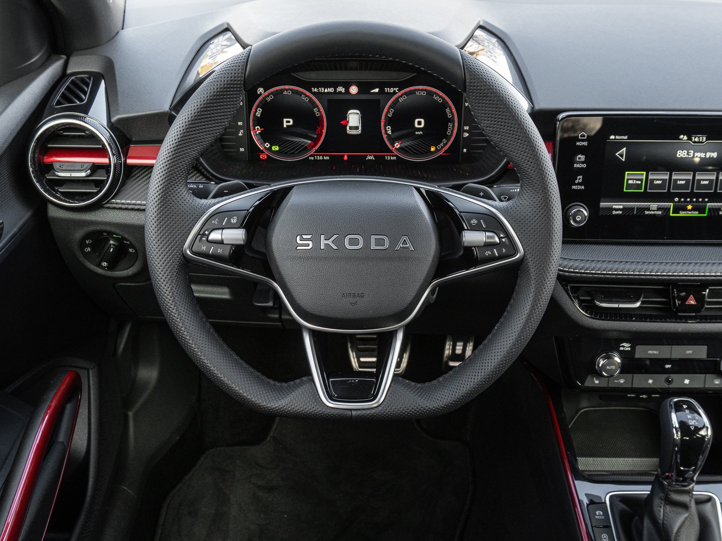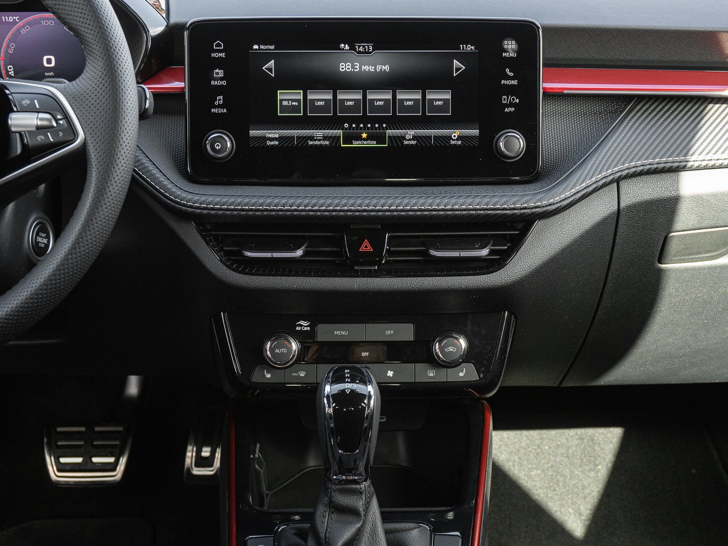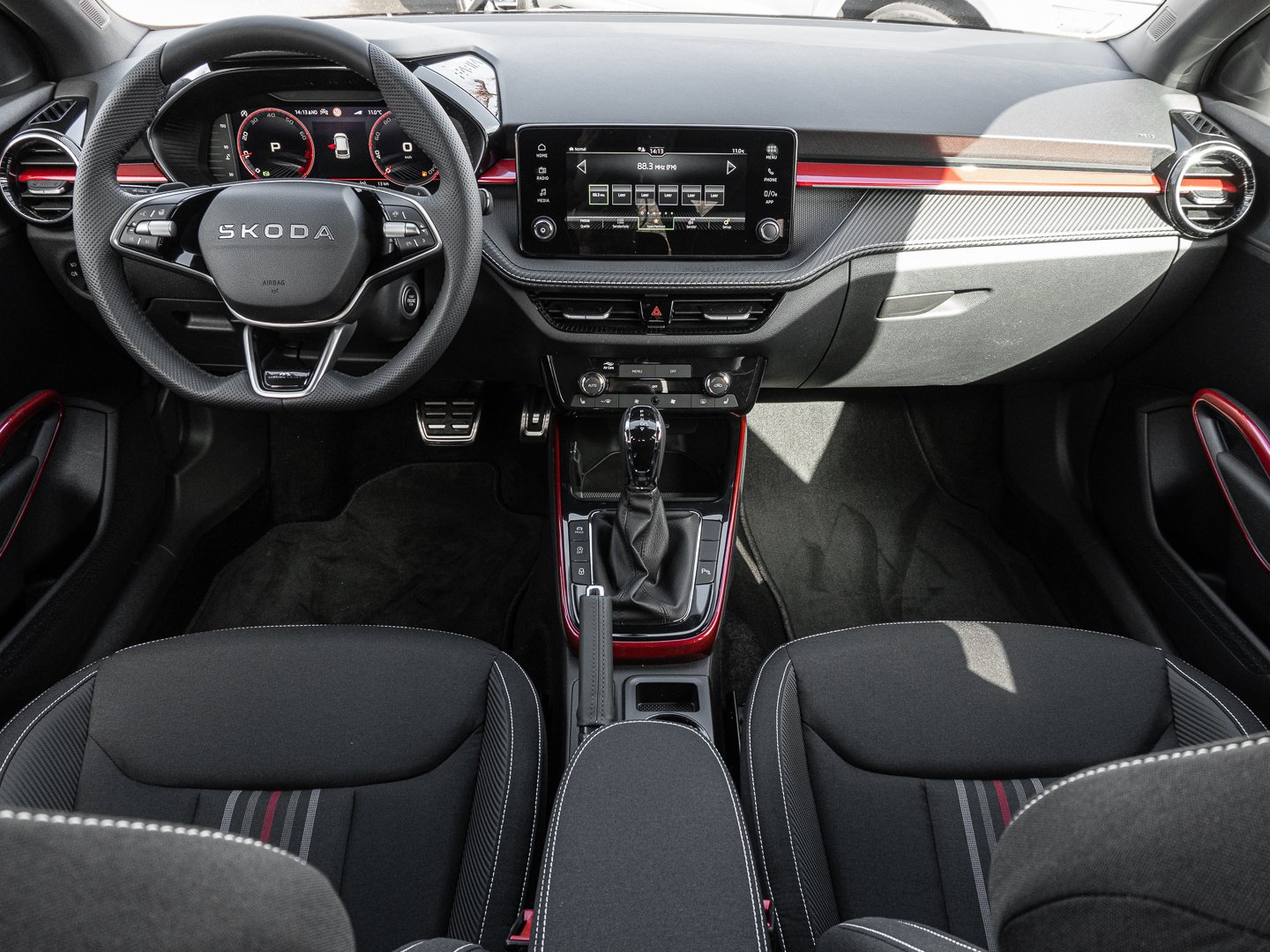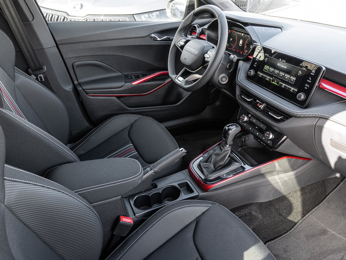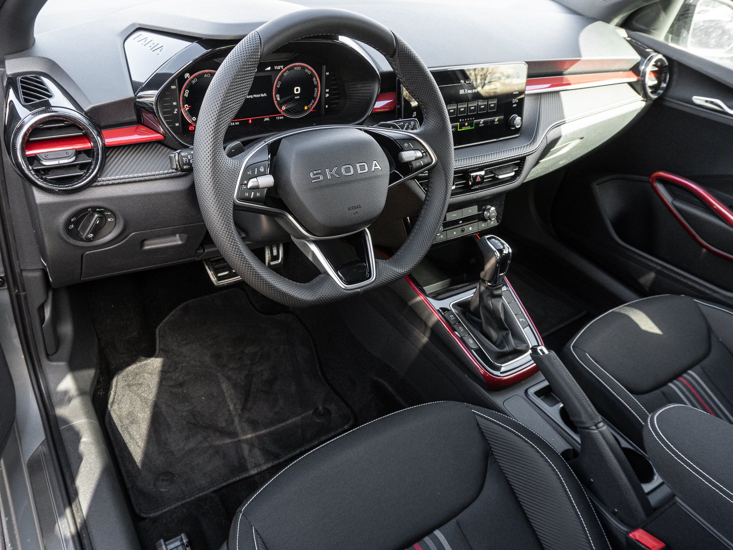 EM2 Aufmerksamkeits- und Müdigkeitserkennung, 8RL 4 Lautsprecher vorn + 2 hinten inkl. koda Surround, 8VG LED SBBR Low LED, 9P9 Gurtanlagesignalisation für die vorderenund hinteren Sitze, 9WJ SMARTLINK (wired and wireless connect), I8U KODA Infotainment, 9ZV Komfort Telefonie BT Kopplebox, EF1 Steuerung Fahrprofilauswahl, IN1 Steuerung Hinterachsgewicht, QK1 Multifunktionskamera (Für Fahrerassistenzsysteme), 3A2 ISOFIX-Verankerung auf dem Beifahrersitzund den äußeren Rücksitzen inklusive Top-Tether, 7P4 Einstellbare Lendenwirbelstützen in denVordersitzen, K8G Karosserievariante Kurzheck, 0I0 40l Kraftstofftank, 2C5 Lenksäule horizintal- und vertikal einstellbar, 3N6 Cargoelement im Kofferraum, 3NZ Rücksitzlehne 60:40 geteilt umlegbar, 4VN Emissionsnorm EU6e (EB), 5XR Sonnenblenden mit Spiegel auf Fahrerseite, 6K2 Frontradarassistent (Front Assist), 6SJ Gepäckraumwendematte - Zweiseitiger Bodenbelag (Teppich/gummiert), 7L6 Start-Stopp-Automatik mit Rekuperation (Bremsenergierückgewinnung), YOK Care Connect (3 Jahr Laufzeit), 9AK Klimaanlage Climatronic (2-Zonen) mit Allergenfilter und Geruchsfilter, NZ4 Notruffunktion eCall+, 6XK Elektrisch einstell- beheiz- und anklappbare Außenspiegel, U9E 2 USB-Anschlüsse vorn und 2 USB-Ladeanschlüsse hinten, 8S7 2 Leseleuchten vorn 2 hinten, DS8 1.0l TSI 85 kW / 115 PS, FM9 Steuerung Varianten, QQ8 LED-Ambientebeleuchtung vorn, T0M 1.0l TSI (3-Zylinder Ottomotor), 5MT Dekorleiste in Red-Metallic, 6FH Außenspiegelgehäuse in Kontrastlackierung, 6KF Kühlergrillrahmen, A8F Ausstattungslinie Monte Carlo, CI8 16 Leichtmetallfelgen Proxima Schwarz glanzgedreht, N4A Interieur aus Stoff kombiniert mit hochwertigen Materialien