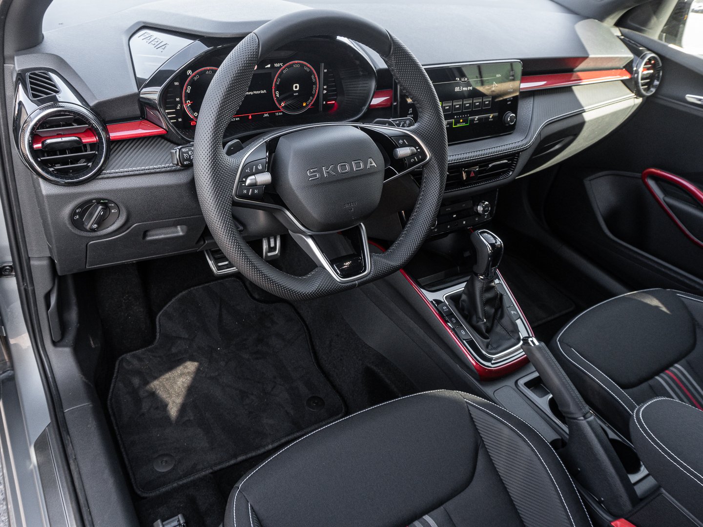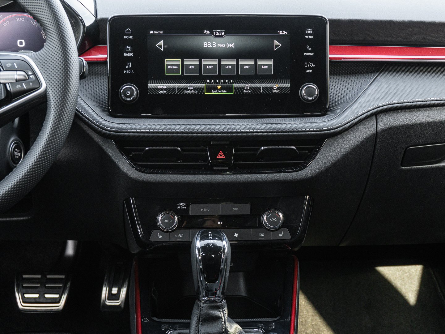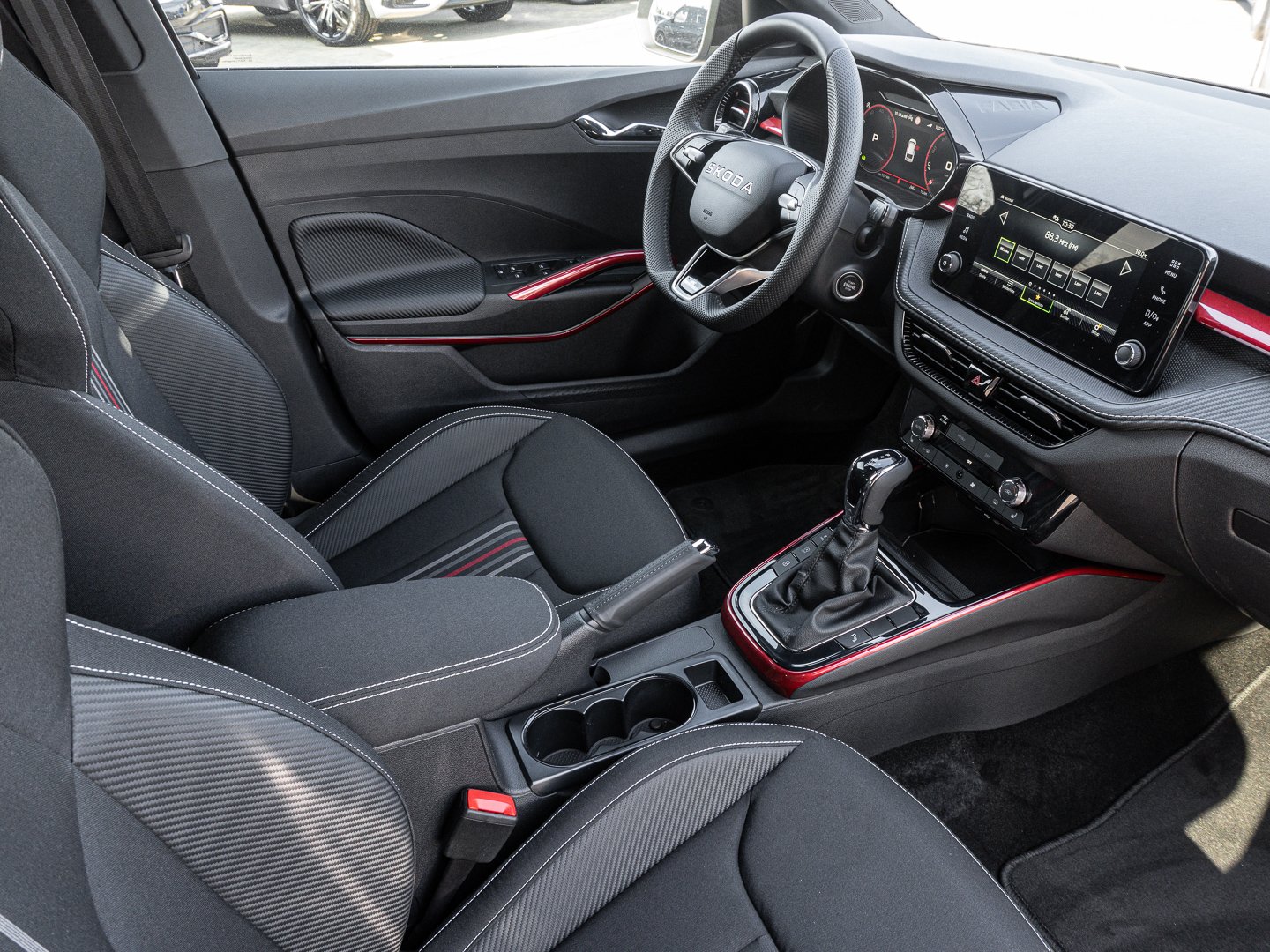 EM2 Aufmerksamkeits- und Müdigkeitserkennung, 8RL 4 Lautsprecher vorn + 2 hinten inkl. koda Surround, 8VG LED SBBR Low LED, 9P9 Gurtanlagesignalisation für die vorderenund hinteren Sitze, 9WJ SMARTLINK (wired and wireless connect), I8U KODA Infotainment, 9ZV Komfort Telefonie BT Kopplebox, EF1 Steuerung Fahrprofilauswahl, IN1 Steuerung Hinterachsgewicht, QK1 Multifunktionskamera (Für Fahrerassistenzsysteme), 3A2 ISOFIX-Verankerung auf dem Beifahrersitzund den äußeren Rücksitzen inklusive Top-Tether, 7P4 Einstellbare Lendenwirbelstützen in denVordersitzen, K8G Karosserievariante Kurzheck, 0I0 40l Kraftstofftank, 2C5 Lenksäule horizintal- und vertikal einstellbar, 3N6 Cargoelement im Kofferraum, 3NZ Rücksitzlehne 60:40 geteilt umlegbar, 4VN Emissionsnorm EU6e (EB), 5XR Sonnenblenden mit Spiegel auf Fahrerseite, 6K2 Frontradarassistent (Front Assist), 6SJ Gepäckraumwendematte - Zweiseitiger Bodenbelag (Teppich/gummiert), 7L6 Start-Stopp-Automatik mit Rekuperation (Bremsenergierückgewinnung), YOK Care Connect (3 Jahr Laufzeit), 9AK Klimaanlage Climatronic (2-Zonen) mit Allergenfilter und Geruchsfilter, NZ4 Notruffunktion eCall+, 6XK Elektrisch einstell- beheiz- und anklappbare Außenspiegel, U9E 2 USB-Anschlüsse vorn und 2 USB-Ladeanschlüsse hinten, 8S7 2 Leseleuchten vorn 2 hinten, DS8 1.0l TSI 85 kW / 115 PS, FM9 Steuerung Varianten, QQ8 LED-Ambientebeleuchtung vorn, T0M 1.0l TSI (3-Zylinder Ottomotor), 5MT Dekorleiste in Red-Metallic, 6FH Außenspiegelgehäuse in Kontrastlackierung, 6KF Kühlergrillrahmen, A8F Ausstattungslinie Monte Carlo, CI8 16 Leichtmetallfelgen Proxima Schwarz glanzgedreht, N4A Interieur aus Stoff kombiniert mit hochwertigen Materialien