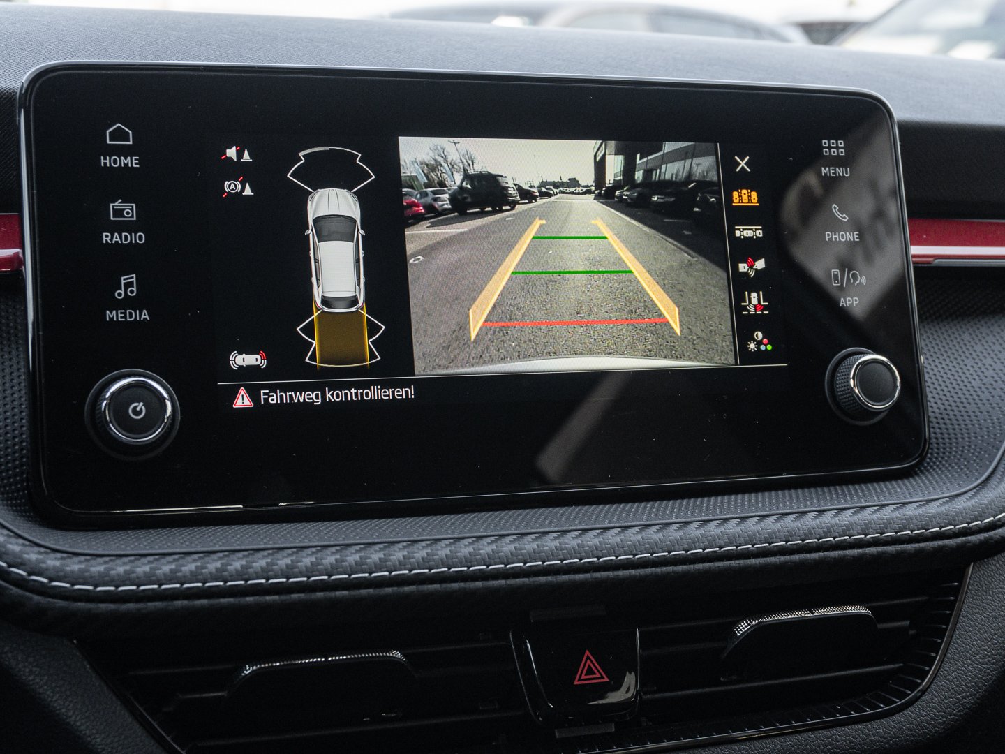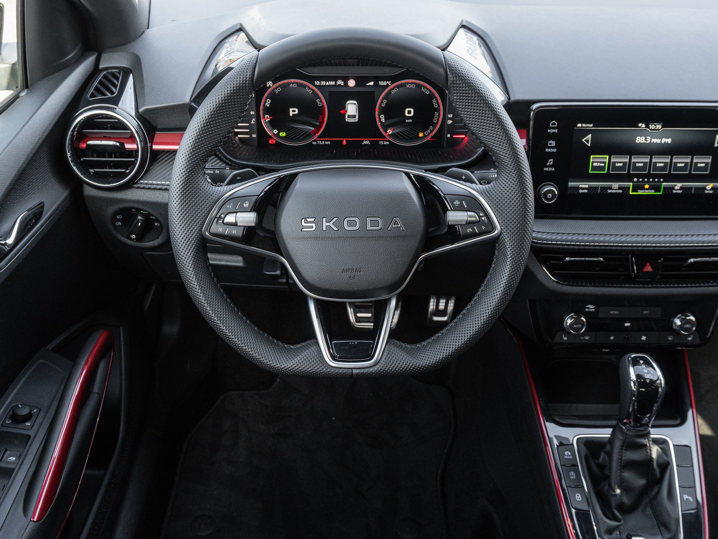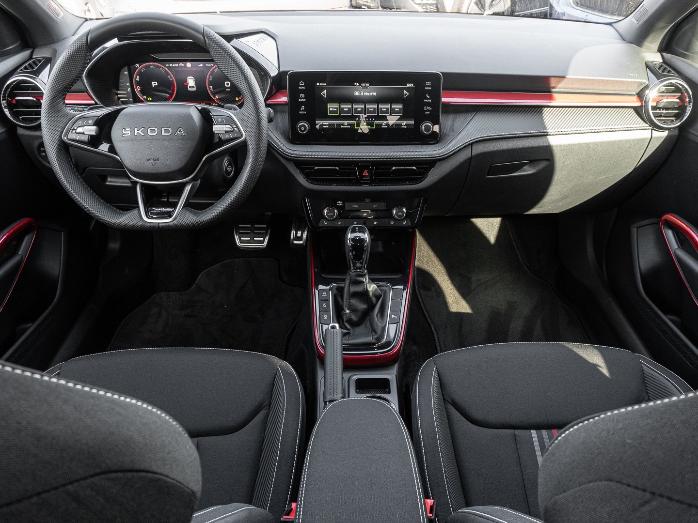 EM2 Aufmerksamkeits- und Müdigkeitserkennung, 8RL 4 Lautsprecher vorn + 2 hinten inkl. koda Surround, 8VG LED SBBR Low LED, 9P9 Gurtanlagesignalisation für die vorderenund hinteren Sitze, 9WJ SMARTLINK (wired and wireless connect), I8U KODA Infotainment, 9ZV Komfort Telefonie BT Kopplebox, EF1 Steuerung Fahrprofilauswahl, IN1 Steuerung Hinterachsgewicht, QK1 Multifunktionskamera (Für Fahrerassistenzsysteme), 3A2 ISOFIX-Verankerung auf dem Beifahrersitzund den äußeren Rücksitzen inklusive Top-Tether, 7P4 Einstellbare Lendenwirbelstützen in denVordersitzen, K8G Karosserievariante Kurzheck, 0I0 40l Kraftstofftank, 2C5 Lenksäule horizintal- und vertikal einstellbar, 3N6 Cargoelement im Kofferraum, 3NZ Rücksitzlehne 60:40 geteilt umlegbar, 4VN Emissionsnorm EU6e (EB), 5XR Sonnenblenden mit Spiegel auf Fahrerseite, 6K2 Frontradarassistent (Front Assist), 6SJ Gepäckraumwendematte - Zweiseitiger Bodenbelag (Teppich/gummiert), 7L6 Start-Stopp-Automatik mit Rekuperation (Bremsenergierückgewinnung), YOK Care Connect (3 Jahr Laufzeit), 9AK Klimaanlage Climatronic (2-Zonen) mit Allergenfilter und Geruchsfilter, NZ4 Notruffunktion eCall+, 6XK Elektrisch einstell- beheiz- und anklappbare Außenspiegel, U9E 2 USB-Anschlüsse vorn und 2 USB-Ladeanschlüsse hinten, 8S7 2 Leseleuchten vorn 2 hinten, DS8 1.0l TSI 85 kW / 115 PS, FM9 Steuerung Varianten, QQ8 LED-Ambientebeleuchtung vorn, T0M 1.0l TSI (3-Zylinder Ottomotor), 5MT Dekorleiste in Red-Metallic, 6FH Außenspiegelgehäuse in Kontrastlackierung, 6KF Kühlergrillrahmen, A8F Ausstattungslinie Monte Carlo, CI8 16 Leichtmetallfelgen Proxima Schwarz glanzgedreht, N4A Interieur aus Stoff kombiniert mit hochwertigen Materialien