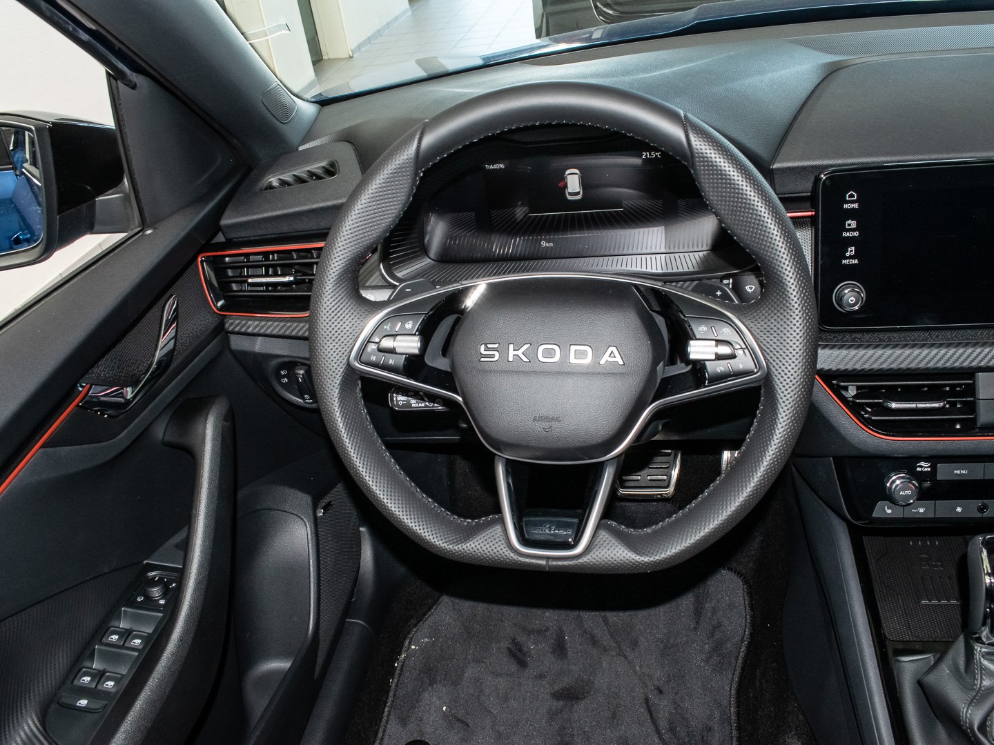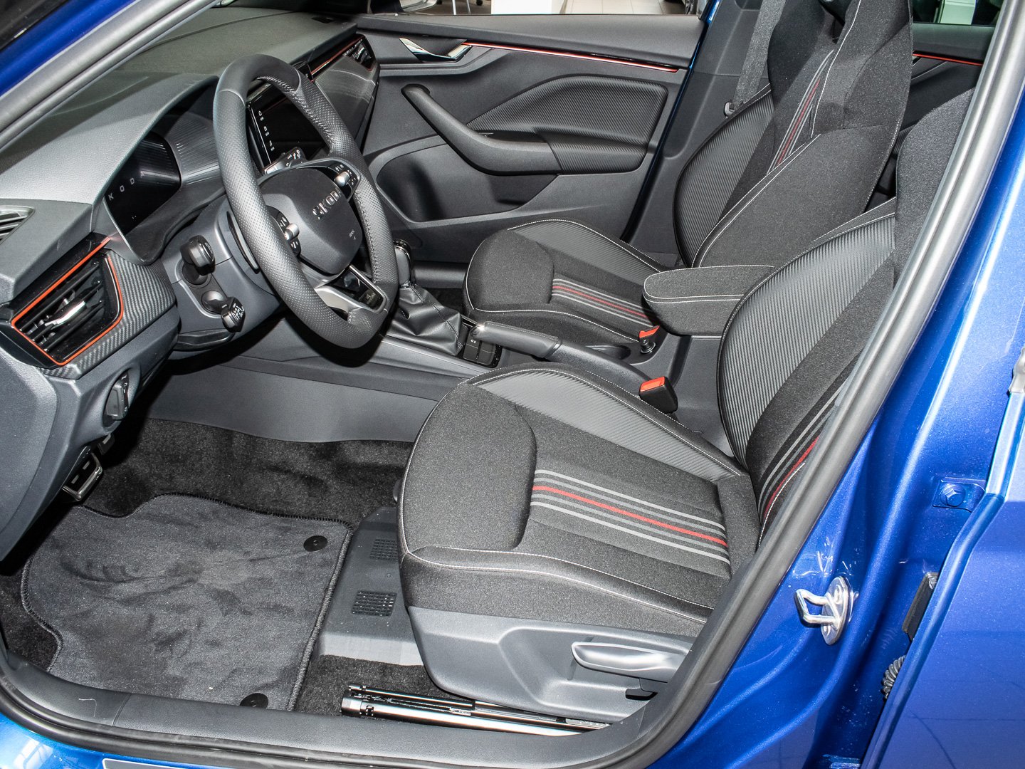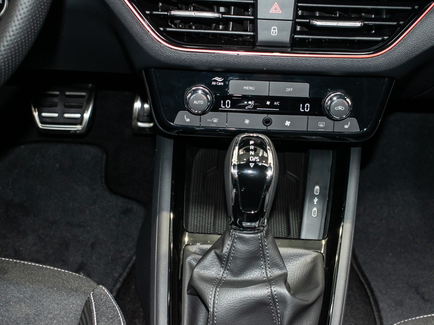 Fensterheber elektrisch vorn + hinten, Innenspiegel mit Abblendautomatik, Induktionsladeschale für Smartphone, Stoff, Frontkamera, Mittelarmlehne vorn, Rücksitzlehne geteilt/klappbar (1/3-2/3), Seitenscheiben hinten und Heckscheibe abgedunkelt (SunSet), Lenkrad heizbar, Innenraumfilter: Staub- und Pollenfilter, Lendenwirbelstütze Sitz vorn rechts, Klimaanlage Climatronic 2-Zonen, Kombiinstrument digital (virtual cockpit), Lenkrad (Sport/Leder - 3-Speichen - unten abgeflacht) mit Multifunktion und Schaltfunktion