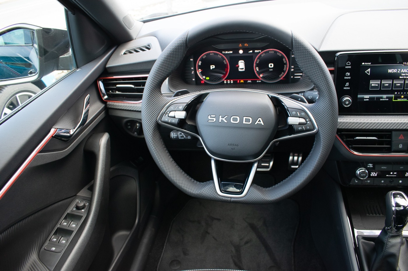 Fensterheber elektrisch vorn + hinten, Innenspiegel mit Abblendautomatik, Stoff, Induktionsladeschale für Smartphone, Frontkamera, Kombiinstrument digital (virtual cockpit plus), Mittelarmlehne vorn, Rücksitzlehne geteilt/klappbar (1/3-2/3), Seitenscheiben hinten und Heckscheibe abgedunkelt (SunSet), Lenkrad heizbar, Innenraumfilter: Staub- und Pollenfilter, Lendenwirbelstütze Sitz vorn rechts, Klimaanlage Climatronic 2-Zonen, Lenkrad (Sport/Leder - 3-Speichen - unten abgeflacht) mit Multifunktion und Schaltfunktion