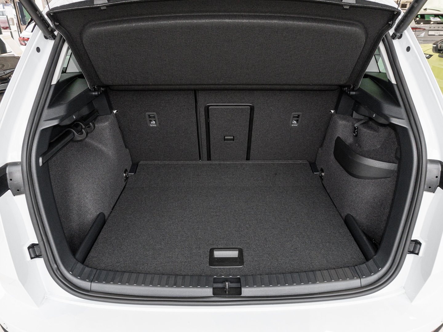 Fensterheber elektrisch vorn + hinten, Innenspiegel mit Abblendautomatik, Induktionsladeschale für Smartphone, Lenksäule (Lenkrad) höhenverstellbar, Verglasung getönt, Stoff, Lenkrad heizbar (Leder) mit Multifunktion und Schaltfunktion, Mittelarmlehne vorn, Steckdose (12V-Anschluss) in Mittelkonsole vorn, Rücksitzlehne geteilt/klappbar, Lendenwirbelstützen vorn, Innenraumfilter: Staub- und Pollenfilter, Klimaanlage Climatronic 2-Zonen, Kombiinstrument digital (virtual cockpit), Dekoreinlagen Anodized Cross