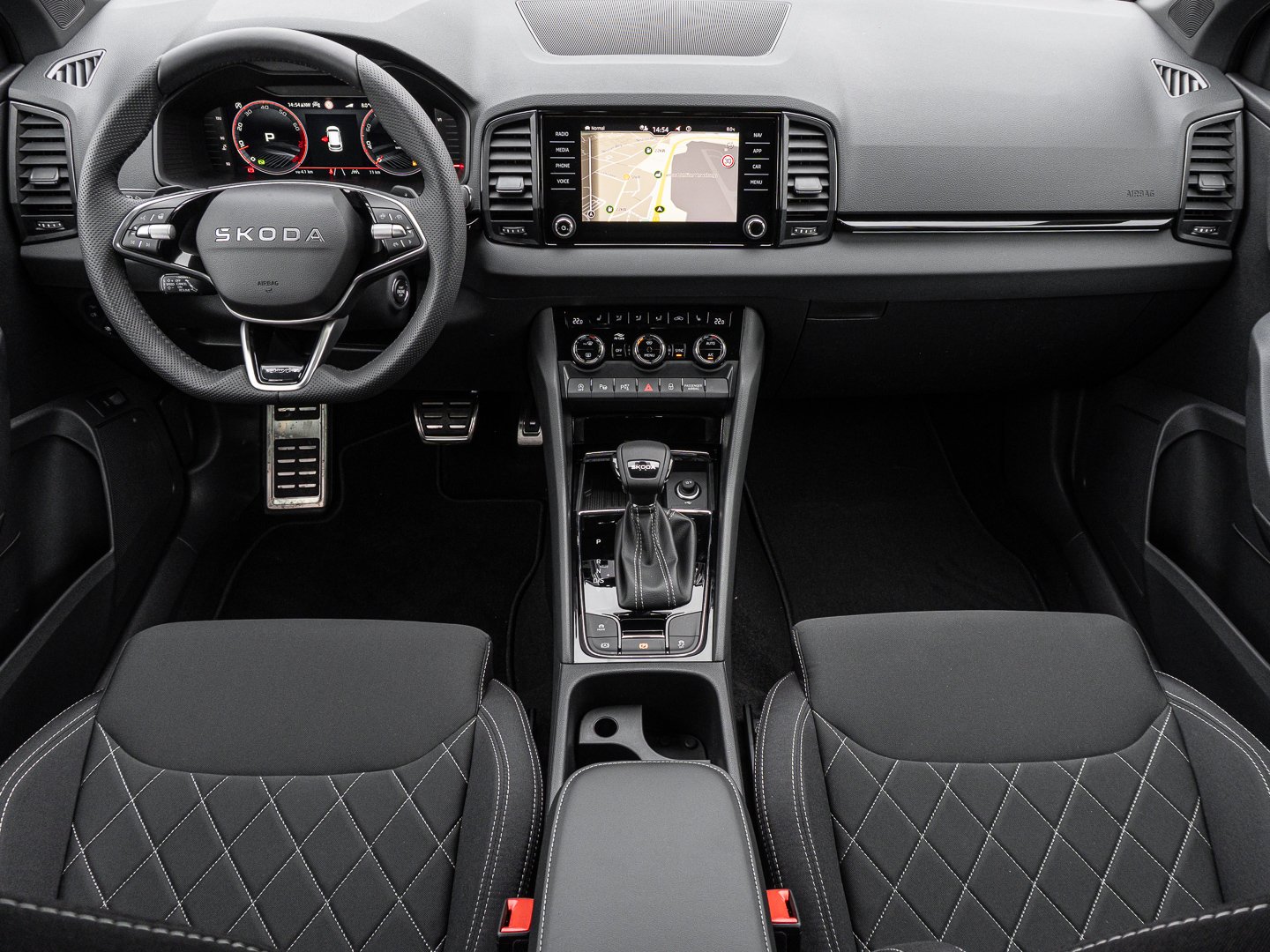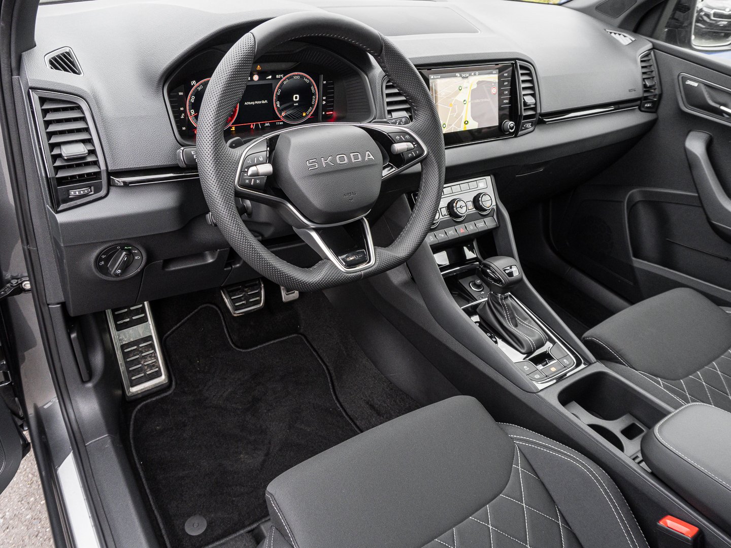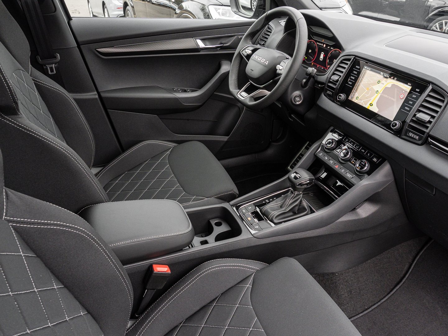 EM2 Aufmerksamkeits- und Müdigkeitserkennung, 9WJ SMART LINK (drath und drathlos), KA6 AREA VIEW 360, N0G Design SportLine Sitzbezüge in Stoff, 9ZV Komfort Telefonie BT Kopplebox, EF1 Steuerung Fahrprofilauswahl, IN1 Steuerung Hinterachsgewicht, NZ2 Notruffunktion eCall+, QK1 Multifunktionskamera (Für Fahrerassistenzsysteme), 4L5 Automatisch abblendbarer Innenspiegel mit USB-Ladeanschluss, 7P4 Einstellbare Lendenwirbelstützen in denVordersitzen, A9F Ausstattungslinie SPORTLINE, K8P Karosserievariante SUV, 5XC Sonnenblenden mit beleuchtetem Spiegel auf Fahrer- und Beifahrerseite, DS9 15l TSI ACT 110 kW / 150 PS, N09 15l TSI (4-Zylinder Ottomotor), 4VN Emissionsnorm EU6e (EB), 7L6 Start-Stopp-Automatik mit Rekuperation (Bremsenergierückgewinnung), 1G9 18 Stahlreservenotrad 125/70 R18 35J x 18 ET25, 4H3 Manuelle Kindersicherung der hinteren Türen, 5MN Dekor-Einlagen Carbon und Piano-Schwarz, 6FM Steuerung Außenspiegel und Dach in Schwarz, 9AK Klimaanlage Climatronic (2-Zonen) mit Allergenfilter und Geruchsfilter, 9S0 10 Digital Cockpit Plus, 9TC Reflektor in den Seitentüren vorn, 9VS CANTON Soundsystem (10 Lautsprecher), C3I 18 Leichtmetallfelgen Procyon Schwarz, HJ3 Reifen 215/50 R18, U9B 2 USB-Anschlüsse vorn, VF3 Pedalerie in Edelstahloptik inklusive Fußablage