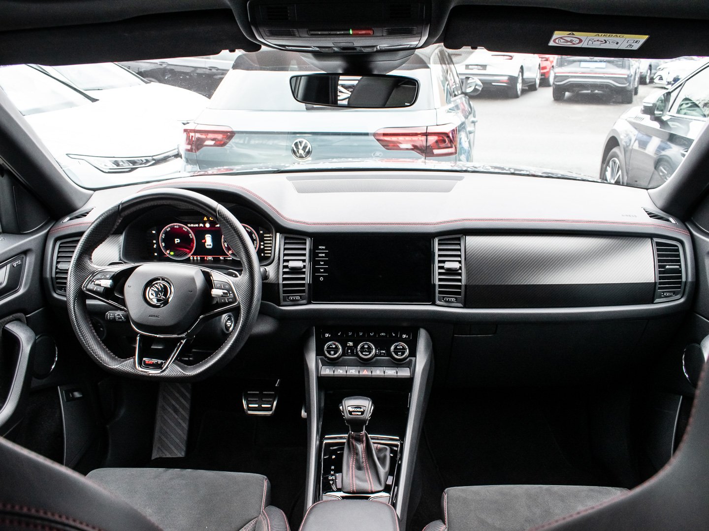7K3 Reifendruckkontrolle RDKS, KA6 Area View (360 Umgebungskameras), PWG Area-View 360, 1G9 18 Stahlreservenotrad 145/85 R18 4J x 18 ET 275, 1M6 Anhängerzugvorrichtung schwenkbar inklusive Gespannstabilisierung, 3GE Angehobener Ladeboden im Kofferraum, 4BI Emissionsnorm EU6d-ISC-FCM (AP), 4H3 Manuelle Kindersicherung der hinteren Türen Entfall elektrische Kindersicherung, 4X4 Seitenairbags vorn und hinten sowie Kopfairbags, 5MH Dekorleiste Dark-Carbon, 5XH Steuerung Sonnenblenden, 6FM Steuerung Außenspiegel & Dach in Schwarz, 6XT Elektrisch einstell- anklapp- und beheizbare Außenspiegel (Memoryfunktion)& automatische Abblendung (Fahrerseite), 7B3 12 Volt-Steckdose im Gepäckraum und im Fond, 8AR Infotainmentdisplay, 9IJ Bluetooth Freisprecheinrichtung und Phonebox mit induktiver Ladefunktion, A8G Ausstattungslinie RS, DQ4 20l TSI 180 kW / 245 PS, EF1 Steuerung Fahrprofilauswahl, G1D 7-Gang-DSG 4x4, H1T Bereifung 255/40 R20 101V, IN1 Steuerung Hinterachsgewicht, K8G Karosserievariante SUV, N2J Sitzbezüge in Microfaser kombiniert mithochwertigen Materialien, NZ2 Notruffunktion eCall+, QK1 Multifunktionskamera (Für Fahrerassistenzsysteme), T3J 20l TSI (4-Zylinder Ottomotor), U9C USB-Anschluss (Typ-C) vorne sowie USB-Ladeanschluss hinten (Typ-C)