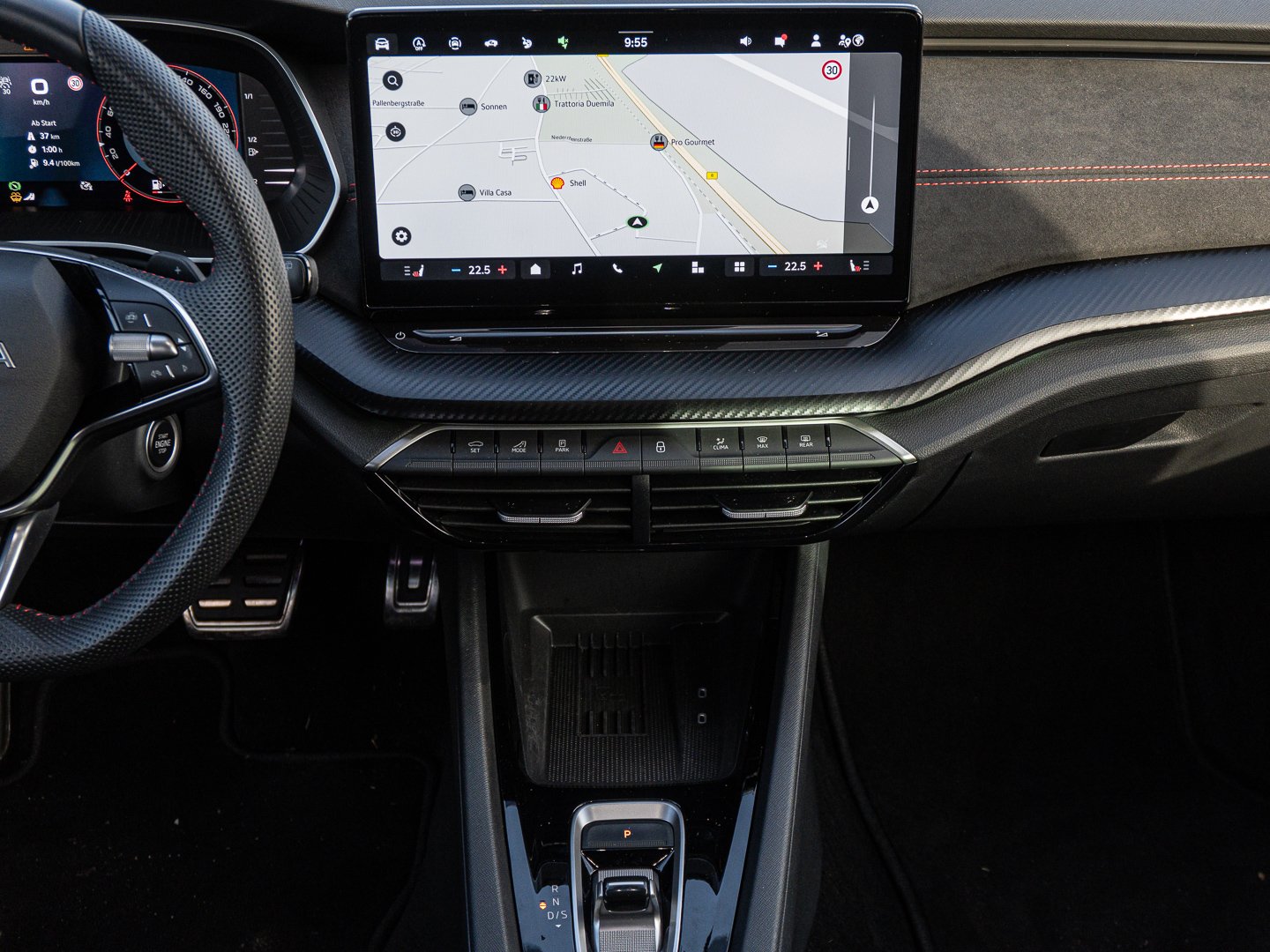 Fensterheber elektrisch vorn + hinten, Innenspiegel mit Abblendautomatik, Induktionsladeschale für Smartphone, Frontkamera, Kombiinstrument digital (virtual cockpit plus), Mittelarmlehne vorn, Seitenscheiben hinten und Heckscheibe abgedunkelt (SunSet), Teilleder, Rücksitzlehne geteilt/klappbar, Lenkrad heizbar (Sport/Leder) mit Multifunktion und Schaltfunktion, Klimaanlage Climatronic 2-Zonen, Multifunktionsablage unter Gepäckraumabdeckung