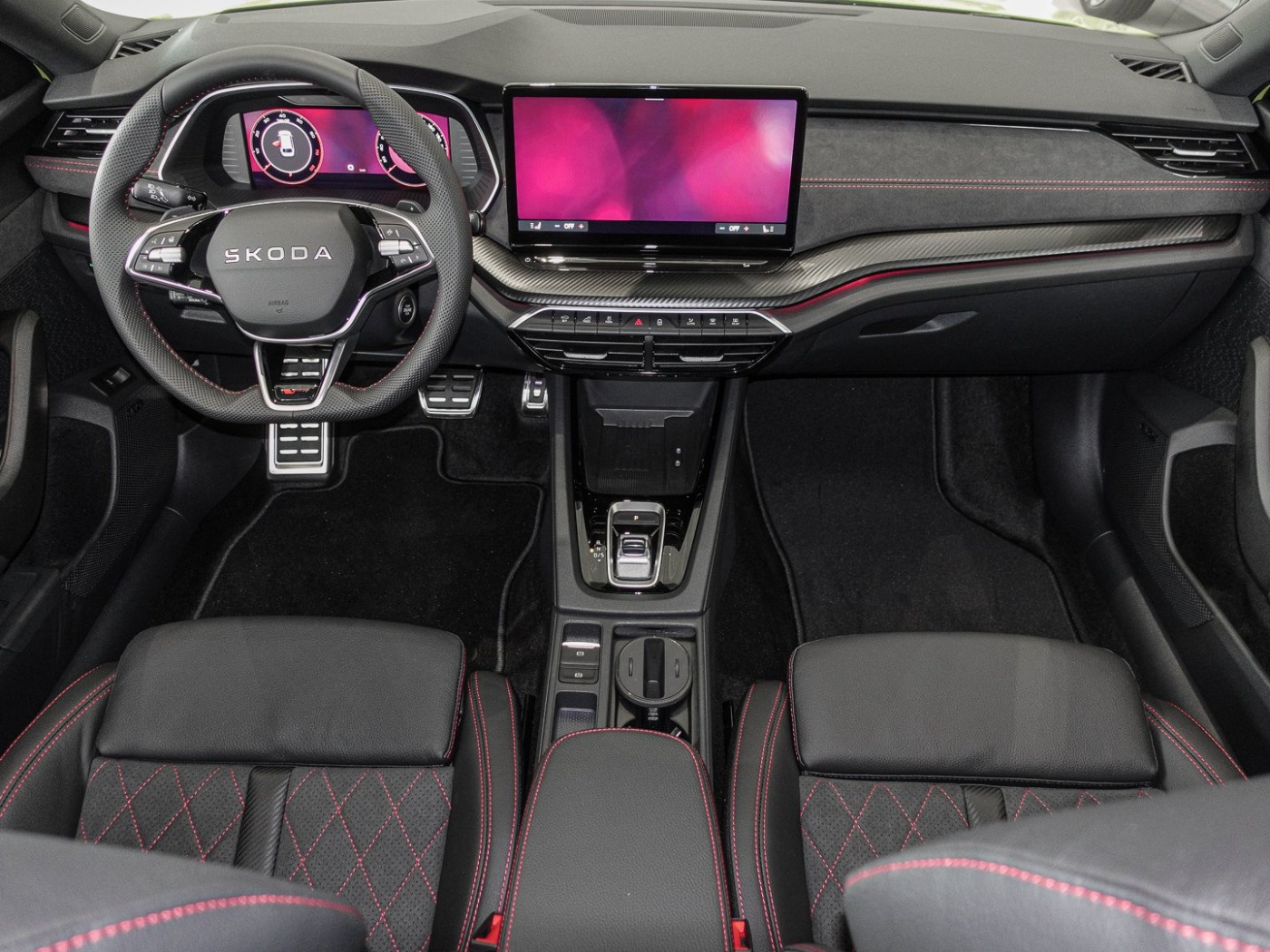 Vorbereitung für Alkohol-Wegfahrsperre (Alcolock), Abbiege- und Allwetterlicht / Schlechtwetter-Licht, Infotainment-System mit 13 Display, Schadstoffarm nach Abgasnorm Euro 6e, Luftausströmer Schwarz, Ablagefächer (Gepäck-/Laderaum), Isofix-Aufnahmen für Kindersitz an Beifahrersitz und Rücksitze aussen (inkl. Top Tether), Rücksitz geteilt / klappbar (60:40) Mittelarmlehne und Durchladefunktion, SKODA Care Connect & Infotainment Online, 2 USB-Anschlüsse vorn und 2 USB-Ladeanschlüsse im Fond und USB-Ladeanschluss am Rückspiegel, Anhängerkupplung mit elektr. Entriegelung - schwenkbar - inkl. Anhängerstabilisierung mit Trailer Assist & Adapter, Reserverad als Notrad (18), Aussenspiegel schwarz lackiert und Türgriffe aussen in Wagenfarbe, Elektron. Sperrdifferential (Vorderachse) ( VAQ), Interieur-Design-Paket RS Lounge, Motor 2.0 Ltr. - 195 kW TSI, Sitzbezug / Polsterung: Leder / Mikrofaser, Sitzbezug / Polsterung: Stoff RS schwarz mit Ziernaht, Sitze vorn ErgoSport - elektr. verstellbar (inkl. Massagefunktion - ausziehbarer Beinauflage), Sonnenschutz & Schlaf-Paket, Stossfängerblende und Heckdiffusor schwarz glänzend