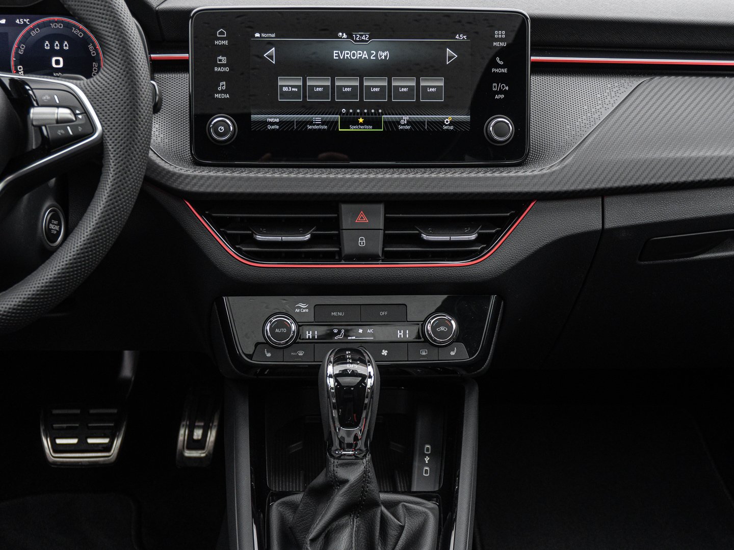 EM2 Aufmerksamkeits- und Müdigkeitserkennung, A9D Monte Carlo, EF1 Steuerung Fahrprofilauswahl, IN1 Steuerung Hinterachsgewicht, NZ2 Notruffunktion eCall+, QK1 Multifunktionskamera (Für Fahrerassistenzsysteme), 3A2 ISOFIX-Verankerung auf dem Beifahrersitzund den äußeren Rücksitzen inklusive Top-Tether, 7P4 Einstellbare Lendenwirbelstützen in denVordersitzen, 2C5 Lenksäule horizintal- und vertikal einstellbar, 4VN Emissionsnorm EU6e (EB), 7L6 Start-Stopp-Automatik mit Rekuperation (Bremsenergierückgewinnung), YOK Care Connect (3 Jahr Laufzeit), 9AK Klimaanlage Climatronic (2-Zonen) mit Allergenfilter und Geruchsfilter, 9S0 10 Digital Cockpit Plus, 5XB Sonnenblenden mit Spiegel auf Fahrerseite, 6XK Elektrisch einstell- beheiz- und anklappbare Außenspiegel, 2JV Designelemente am Stoßfänger vorne undhinten in Schwarz glänzend, 6FM Steuerung Außenspiegel in Schwarz für Colour Concept, 6LH Zierleiste im Innenraum in Rot, 6M3 Netzprogramm im Gepäckraum, 7TS Dekorleiste Monte Carlo, J59 Reifen 205/50 R17, N3F Interieur aus Stoff und Kunstleder kombiniert mit hochwertigen Materialien, QQ8 Ambientebeleuchtung (2-farbig Rot und Weiß), U9E 2 USB-Anschlüsse vorn und 2 USB-Ladeanschlüsse hinten, DS8 1.0l TSI 85 kW / 115 PS, T0M 1.0l TSI (3-Zylinder Ottomotor), I8U Infotainmentsystem mit 8.2 Bildschirm