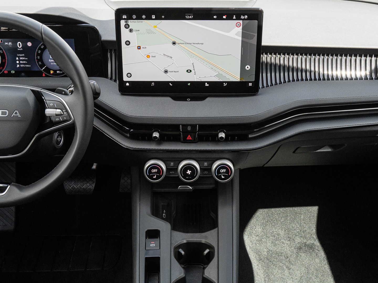 Klimaautomatik, QR9 Verkehrszeichenerkennung, KA2 REAR VIEW CAMERA, UH2 Elektronische Parkbremse inklusive Auto-Hold-Funktion, 7K1 Reifendrucküberwachung, 8G1 Fernlichtassistent (Light Assist), VL3 Fußgängerschutzmaßnahmen erweitert undvorausschauend, 8T3 Adaptiver Abstandsassistent ACC (Regelbereich bis 210 km/h) und Speedlimiter (Geschwindigkeitsbegrenzer)
