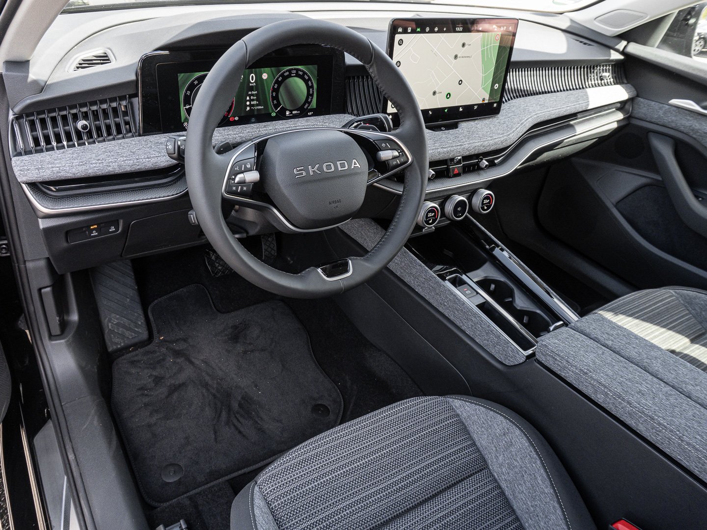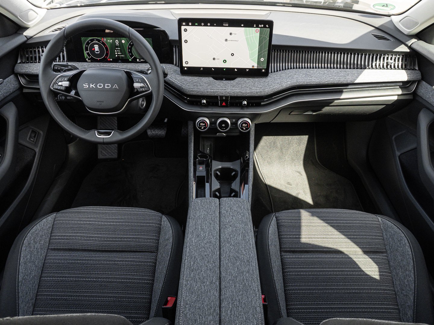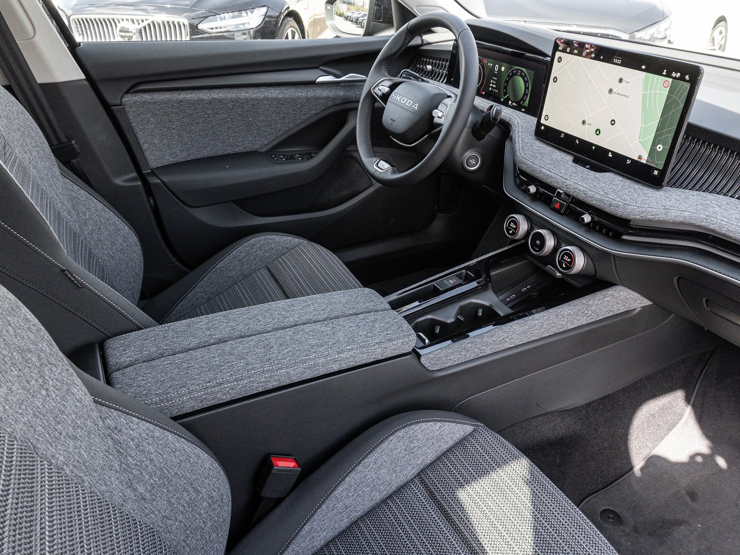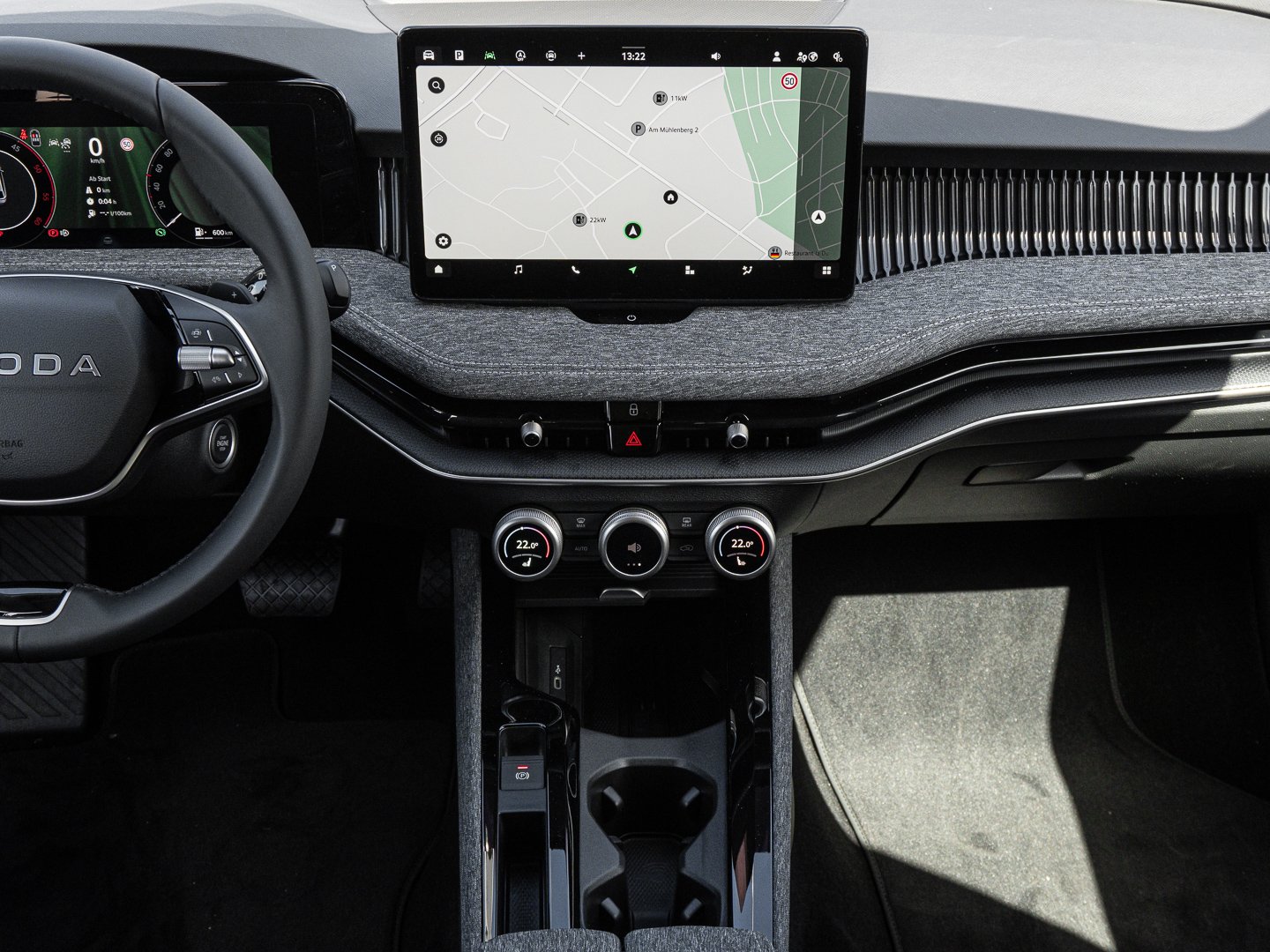 Bedienschalter Digitale Drehregler (Smart Dials), Induktionsladeschale für Smartphone 15 W, Infotainment-System mit 13 Display, Kreuzungs-Assistent (Crossroad Assist), Motor 2.0 Ltr. - 110 kW TDI DPF KAT (DXPA), Schadstoffarm nach Abgasnorm Euro 6e, Sitzbezug / Polsterung: Stoff Loft schwarz, Stossfänger vorn mit Unique Dark Chrom-Applikationen, Vorbereitung für Alkohol-Wegfahrsperre (Alcolock), Schliess-/Startsystem Kessy inkl. Diebstahl-Warnanlage, Intelligenter Parkassistent inkl. trainiertem Parken, Travel Assist Plus, Fensterzierleisten schwarz matt, LM-Felgen 7.5x17 (Alrakis Aero - schwarz - glanzgedreht), Sitze vorn Comfort (inkl. Massagefunktion - Sitzverstellung teilweise elektrisch)