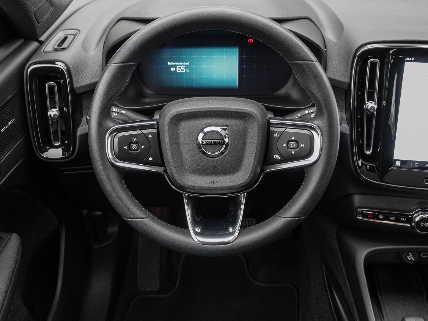 Einparkhilfe vorn und hinten (hinten mit Bremsfunktion), Innenraumfilter: Pollenfilter, One Pedal Drive (elektronisches Gaspedal), Emergency Stop Assist, Pilot Assist, Ready to Drive Notification, 1-SPEED RWD, Abfalleimer in Mittelkonsole integriert, CHARCOAL/TEXTILE/CITY CANVAS, Erweitertes Luftreinigungssystem mit Feinstaubfilterung, Heckaufprallabschwächung - Präventivschutz bei drohenden Heckkollisionen, ISOFIX-Aufnahmen für den Beifahrersitz, Induktives Smartphone-Ladesystem, Innenraumbeleuchtung (erweitert), LED-Scheinwerfer Thors Hammer, Reifendruckkontrollsystem (mit reifenindividueller Druckverlustmeldung), Road Sign Information - Verkehrszeichenerkennung, Rücksitze im Verhältnis 40/60 oder komplett umlegbar, Sport-Lenkrad, Außenspiegel elektrisch einklappbar, Digital Services (Google Maps Assistant Play Store) inklusive 4-Jahres-Abo, Elektrisch einstellbarer Beifahrersitz, Elektrisch einstellbarer Fahrersitz (8-Wege) mit Memoryfunktion, Fensterumrandung in Hochglanzschwarz, Keyless Drive mit sensorgesteuerter Heckklappe Blinkleuchten (LED) in Außenspiegeln integriert, Kopfstützen der 2. Sitzreihe umlegbar (elektrisch), Gurtwarner für alle Sitze, Mittelarmlehne hinten inkl. Getränkehalter und Ablage, Standheizung mit Timer (elektrischbetrieben), Convenient Entry & Start, 12.3 -Fahrerdisplay (31.2 -cm-Diagonale), Erste-Hilfe-Set Warndreieck, Klimaautomatik mit 2-Zonen-Temperaturregelung Vorbelüftung und Nachheizen des Innenraums bei abgeschaltetem Motor per Volvo Cars App (optional) oder Menü, CRYSTAL WHITE / Metallic, Lenkradheizung Kleine Ablage vorn Lenkradheizung, Außenspiegel in Hochglanzschwarz, Blind Spot Information System (BLIS) und Cross Traffic Alert (CTA) Heckaufprallabschwächung - Präventivschutz bei drohenden Heckkollisionen, Einstiegsleisten aus Aluminium mit Recharge Schriftzug, 19-5-Speichen Aero-Design Diamantschnitt/Hochglanzschwarz hinten 19-5-Speichen Aero-Design Diamantschnitt/Hochglanzschwarz, Faltbarer Laderaumboden mit Ladegutteilung und Befestigungssystem für Einkaufstaschen, Kindersicherung hintere Tür elektrisch AUTOMATIC LOCKING BY SPEED: Automatic Locking by speed always ON disabled in menu, Ladekabel Typ 2/Typ 2 (Mode 3) 6 m Länge 3-phasig 16A, USB-Anschlüsse je 2 vorn und hinten, Vorderer Laderaum, Without cumbustion engine for propulsion, Wärmepumpe Wärmepumpe, LED-Nebelscheinwerfer (im Frontspoiler integriert), Dachhimmel in Anthrazit COLOUR HEADLINING OVER BELT: Black colour on headlining/ceiling, Frontkamera (Toter Winkel), Kopf-/Schulterairbags (IC) für alle Insassen Seitenairbags für Fahrer und Beifahrer Airbags für Fahrer und Beifahrer mit zweistufigem Auslösesystem Knieairbag Fahrerseite, Panorama-Glasdach feststehend, Audiosystem Premium Sound by Harman-Kardon, Digital Services (Google Maps Assistant Play Store) inklusive 4-Jahres-Abo Volvo On Call Sprachfunktion, EH BEV Aufpreis Trim Level CARE (3 Jahre) - beinhaltet Service Wartung Verschleiß, HV-Batterie 82 kWh brutto / 79 kWh netto (Lithium-Ionen), Nebelscheinwerfer im Spoiler integriert