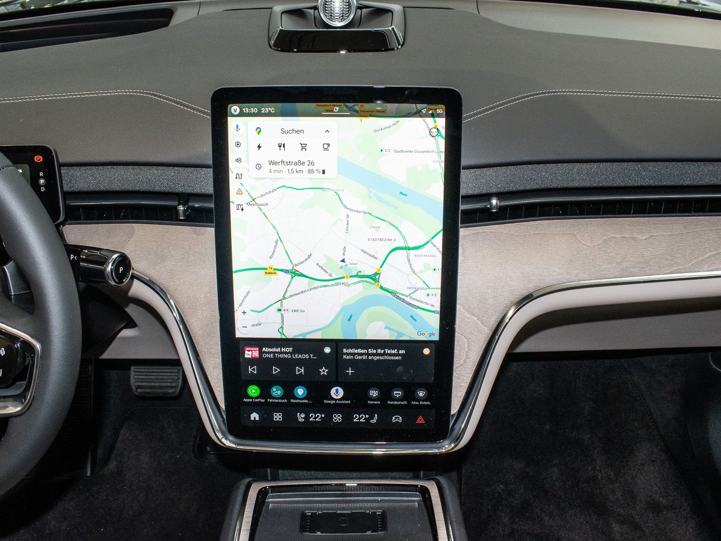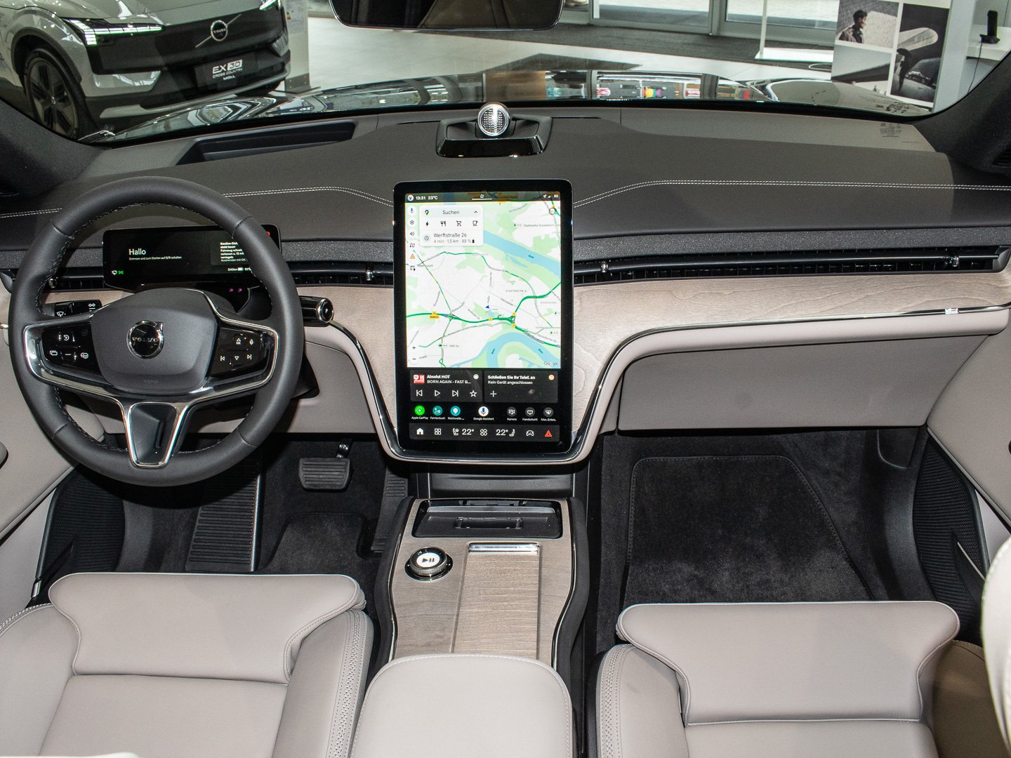 Einparkhilfe vorn und hinten (hinten mit Bremsfunktion), Textilfussmatten Premium, Emergency Stop Assist, Google Services, Pilot Assist, Android (DAB+), Convenient Entry & Start, Frontstaufach / Frunk (Kofferraum - vorn), Ladekabel (6.0 m) mit Typ 2-Stecker (Mode 3), One Pedal Drive (elektronisches Gaspedal), Pixel-LED-Scheinwerfer inkl. Fernlichtassistent mit adaptiver Lichtverteilung (ALH), Standheizung elektrisch, USB-Anschluss (Typ C - 2-fach), Audiosystem High-Fidelity by Bowers & Wilkins, Ausstiegswarnung (Safe Exit Assist - SEA), Dekoreinlagen Echtholz Birch, Elektromotor 380 kW (cont. 252 kW - Dual-Elektromotor), HV-Batterie 111 kWh brutto / 107 kWh netto (Lithium-Ionen), Kollisionswarnsystem Heck (Door Opening Alert), LM-Felgen vorn/hinten: 9x22 / 10x22 (5-Speichen Sport Aero-Design - Diamantschnitt - schwarz hochglänzend), Lenkrad (Sport/Kunstleder) mit Multifunktion, Mediendrehknopf in Kristallglas-Optik, NFC Schlüsselkarte (Keycard), Pilot-Assist-Paket, Radstand 2985 mm, Sitzbezug / Polsterung: Ledernachbildung Nordico - Anthrazit, USB-Ladeanschlüsse (2-fach - Typ C) für 3.Sitzreihe, Adaptives Fahrwerk an der Hinterachse mit Four-C-Technologie, Digital Key Plus, Digitale Instrumentierung 9-Display 3. Generation, Laderaumabdeckung (lang), Spurverlassenswarnung (Oncoming Lane Mitigation), 360-Grad-Rundumschutz (Safe Space Technology)