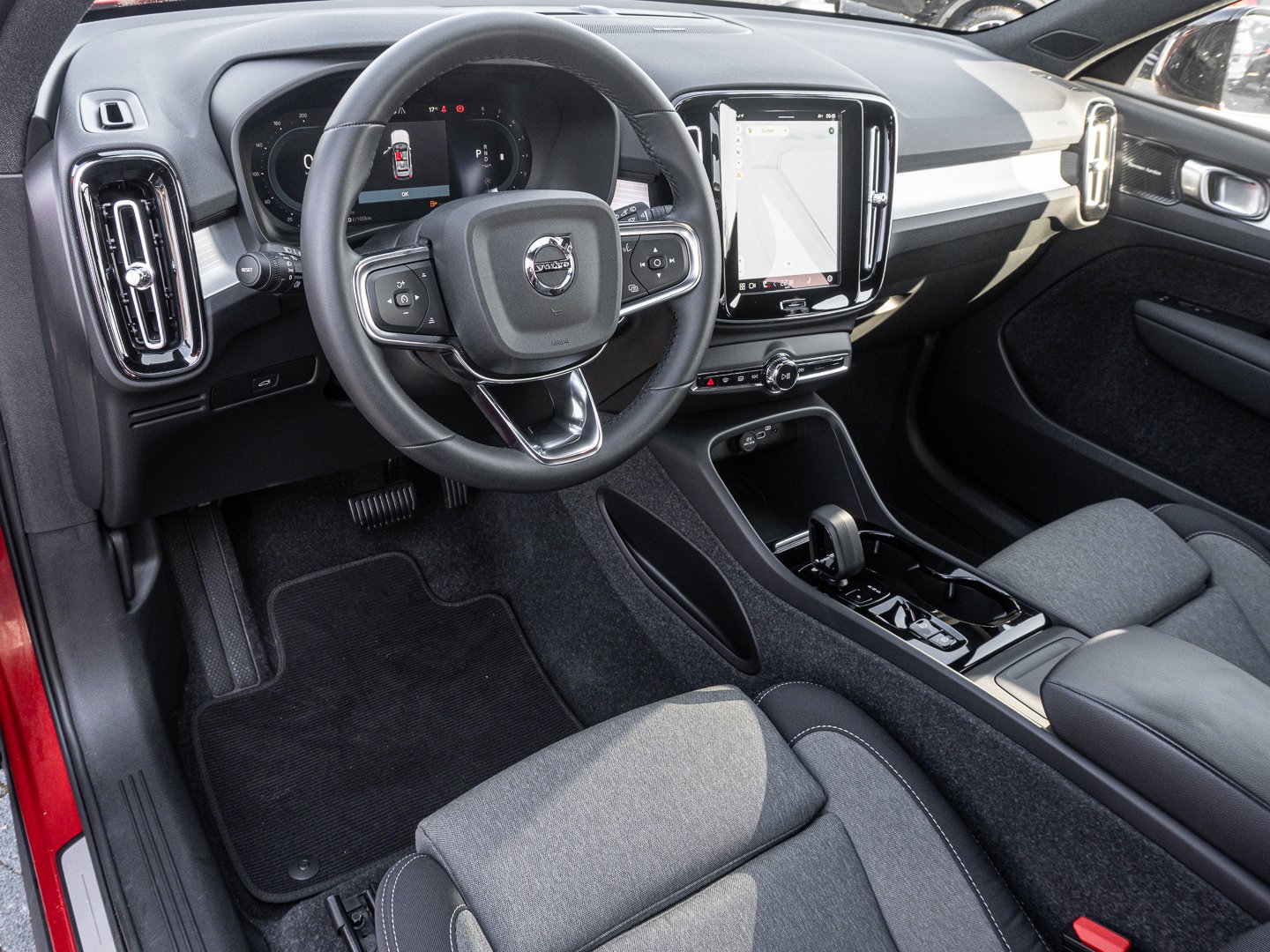 Emergency Stop Assist, Lenkrad (Kunstleder) mit Multifunktion, Ready to Drive Notification, Klimaautomatik mit 2-Zonen-Temperaturregelung, Kopfstützen der 2. Sitzreihe umlegbar (elektrisch), Reifendruckkontrollsystem (mit reifenindividueller Druckverlustmeldung), Road Sign Information - Verkehrszeichenerkennung, Rücksitze im Verhältnis 40/60 oder komplett umlegbar, 5-Sitzer 12-Volt-Anschluss im Gepäckraum, Außenspiegel elektrisch einklappbar, Digital Services (Google Maps Assistant Play Store) inklusive 4-Jahres-Abo, ISOFIX-Aufnahmen für die äußeren Fondsitze, Scheinwerferreinigungsanlage Scheinwerferreinigungsanlage, Induktives Smartphone-Ladesystem Elektrisch Einstellbarer Beifahrersitz, Einstiegsleisten aus Aluminium mit Volvo Schriftzug vorn, Keyless Drive mit sensorgesteuerter Heckklappe Blinkleuchten (LED) in Außenspiegeln integriert, Lane Keeping Aid (LKA) - Aktiver Spurhalteassistent, LED-Nebelscheinwerfer (im Frontspoiler integriert) LED-Nebelscheinwerfer (im Frontspoiler integriert), Driver Assistance Pilot Assist, Belt minder all seats EU logic, First aid kit DIN 13164 Warning Triangle, Lendenwirbelstürze (4-Wege) für Fahrer- und Beifahrersitz, Standheizung mit Timer (kraftstoffbetrieben) Standheizung mit Timer (kraftstoffbetrieben), Audiosystem High Performance Sound Pro by Harman Kardon, Automatische Verriegelung der Türen (deaktivierbar) Two step unlocking OFF, CATALYST TYPE: Catalyst Petrol 6d, IntelliSafe-Surround BLIS (Blind Spot Information System) und Cross Traffic Alert, Kindersicherung für die hinteren Türen (elektrisch), Volvo Cars App inklusive 4-Jahres-Abo, [Driver Assistance], Geschwindigkeitsbegrenzung (variabel) Innen- und Außenspiegel mit Abblendautomatik, Abfalleimer in Mittelkonsole integriert, Beinauflage einstellbar manuell für Fahrer- und Beifahrersitz, Mittelarmlehne hinten mit zwei integrierten Getränkehaltern, Seitenfensterzierleiste in Hochglanzschwarz (unten), Sport-Außenspiegel in Hochglanzschwarz, TRailer Module Preparation, USB-Anschlüsse je 2 vorn und hinten, My23 Air purifier. - My23 CleanZone (AQS with prevent at unlocking) Multifilter 2, Automatikgetriebe 7-DCT 2WD, TRANSMISSION: 2 wheel drive Automatikgetriebe, Kleine Ablage vorn Lenkradheizung, Sport-Textilfußmatten (vorn und hinten), Mild-Hybrid 120 kW (Motor 2.0 Ltr. - 120 kW Turbo), CHARCOAL/GREY MELANGE/TEXTILE/CITY BLOCK, Driver Assistance Adaptive Cruise Control, FUSION RED / Metallic, Licht-Paket[LED-Nebelscheinwerfer (im Frontspoiler integriert) Scheinwerferreinigungsanlage], Faltbarer Laderaumboden mit Befestigungssystem für Tragetaschen im Gepäckraum, LM-Felgen 7.5x18 (5-Doppelspeichen Diamantschnitt / mattschwarz)