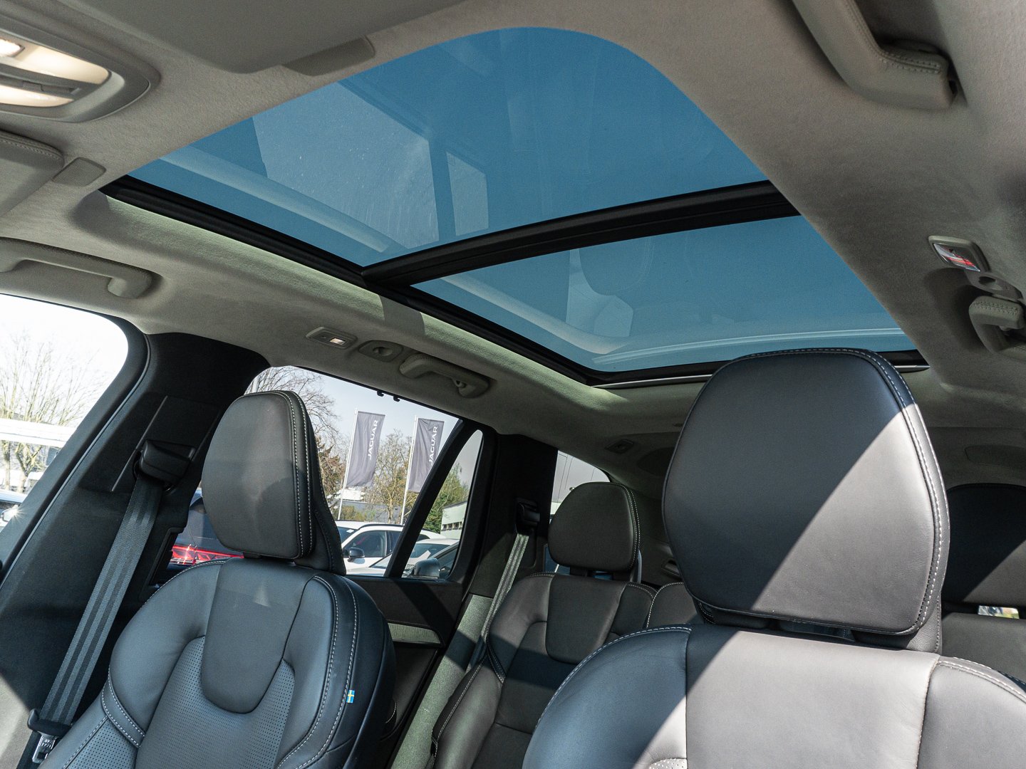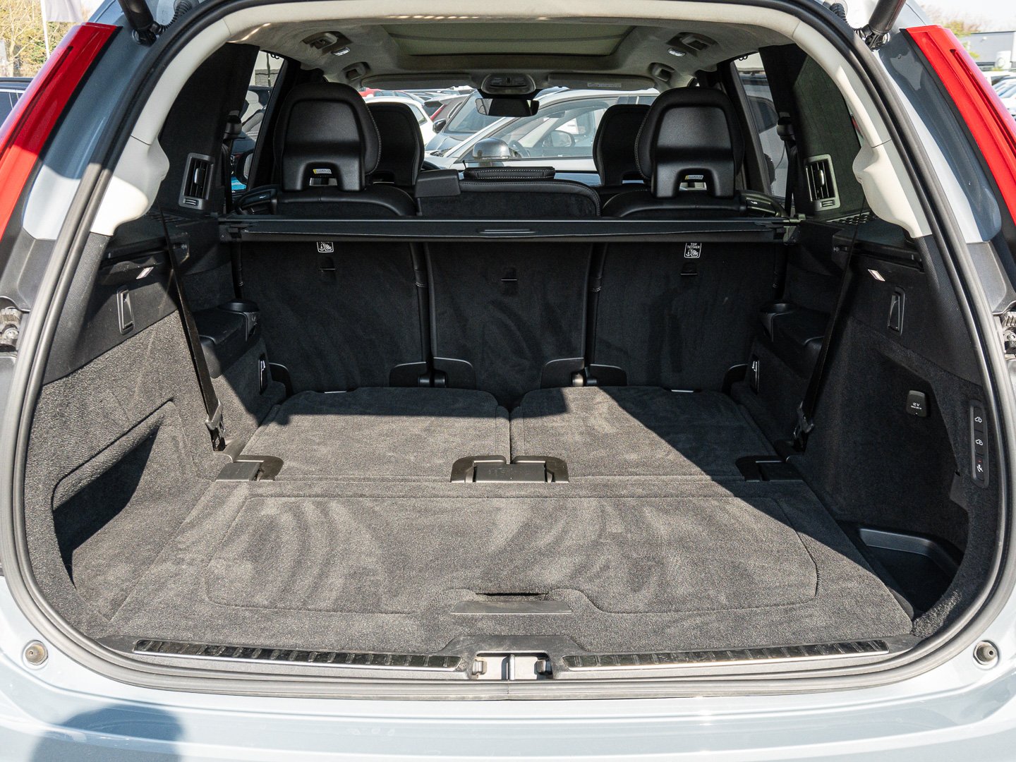 Einparkhilfe vorn und hinten (hinten mit Bremsfunktion), Innenraumfilter: Pollenfilter, Emergency Stop Assist, Pilot Assist, Ready to Drive Notification, Armaturentafel in Lederoptik mit Kontrastnähten, Designelemente in Hochglanzschwarz, Elektrisch einstellbarer Fahrersitz (8-Wege) mit Memoryfunktion, Fensterumrandung in Hochglanzschwarz, Laderaumrollo (semiautomatisch), Memoryfunktion für Beifahrersitz, Reifendruckkontrollsystem (mit reifenindividueller Druckverlustmeldung), Road Sign Information - Verkehrszeichenerkennung, Rücksitze im Verhältnis 40/60 oder komplett umlegbar, Außenspiegel elektrisch einklappbar, Digital Services (Google Maps Assistant Play Store) inklusive 4-Jahres-Abo, ISOFIX-Aufnahmen für die äußeren Fondsitze, Parkkamera mit 360 Surround View Parkkamera mit 360 Surround View, Start-Stopp-Technologie, Voll-LED-Scheinwerfer Thors Hammer Active High Beam, Induktives Smartphone-Ladesystem Elektrisch Einstellbarer Beifahrersitz, Kindersitz im mittleren Fondsitz (2. Sitzreihe) integriert, Klimatisierung für die 3. Sitzreihe, PTC air heater Klimaautomatik mit 4-Zonen-Temperaturregelung, 8-AUT 4WD, Automatikgetriebe 8-AUT 4WD Allradantrieb (AWD), Lane Keeping Aid (LKA) - Aktiver Spurhalteassistent, Belt minder all seats EU logic, First aid kit DIN 13164 Warning Triangle, Intelligent Driver Information System (IDIS), Lendenwirbelstürze (4-Wege) für Fahrer- und Beifahrersitz, Standheizung mit Timer (kraftstoffbetrieben) Standheizung mit Timer (kraftstoffbetrieben), Alarmanlage Alarmanlage, Kindersicherung für die hinteren Türen (elektrisch), Volvo Cars App inklusive 4-Jahres-Abo, Geschwindigkeitsbegrenzung (variabel) Innen- und Außenspiegel mit Abblendautomatik, Mittelarmlehne hinten mit zwei integrierten Getränkehaltern, Sport-Außenspiegel in Hochglanzschwarz, BLIS (Blind Spot Information System) und Cross Traffic Alert Heckaufprallabschwächung - Präventivschutz bei drohenden Heckkollisionen, THUNDER GREY / Metallic, Massagefunktion für Fahrer- und Beifahrersitz Massagefunktion für Fahrer- und Beifahrersitz, Panorama-Glasschiebedach mit integriertem Sonnenschutz, Two step unlocking OFF, Erweitertes Luftreinigungssystem APMS: Air borne Particulate Matter Sensor aka PM2.5-sensor, Adaptives Luftfahrwerk mit Four C-Technologie, CENTER STACK DISPLAY: 9 inch 3.0 // CSD 3.0 Speech function, Elektrisch einstellbarer Beifahrersitz Lendenwirbelstürze (4-Wege) für Fahrer- und Beifahrersitz, INSULATED AIR DUCT B-PILLAR: No insulated air dukt in B-pillar Adaptive Cruise Control Safety Assistance, LM-Felgen 9x20 (10-Speichen Diamantschnitt / Schwarz), Spurverlassenswarnung (Oncoming Lane Mitigation), Dachhimmel und Türsäulen in Nubuk-Textil, Premium-Textilfußmatten (vorn und hinten), Akustikverglasung für die Seitenfenster Akustikverglasung für die Seitenfenster
