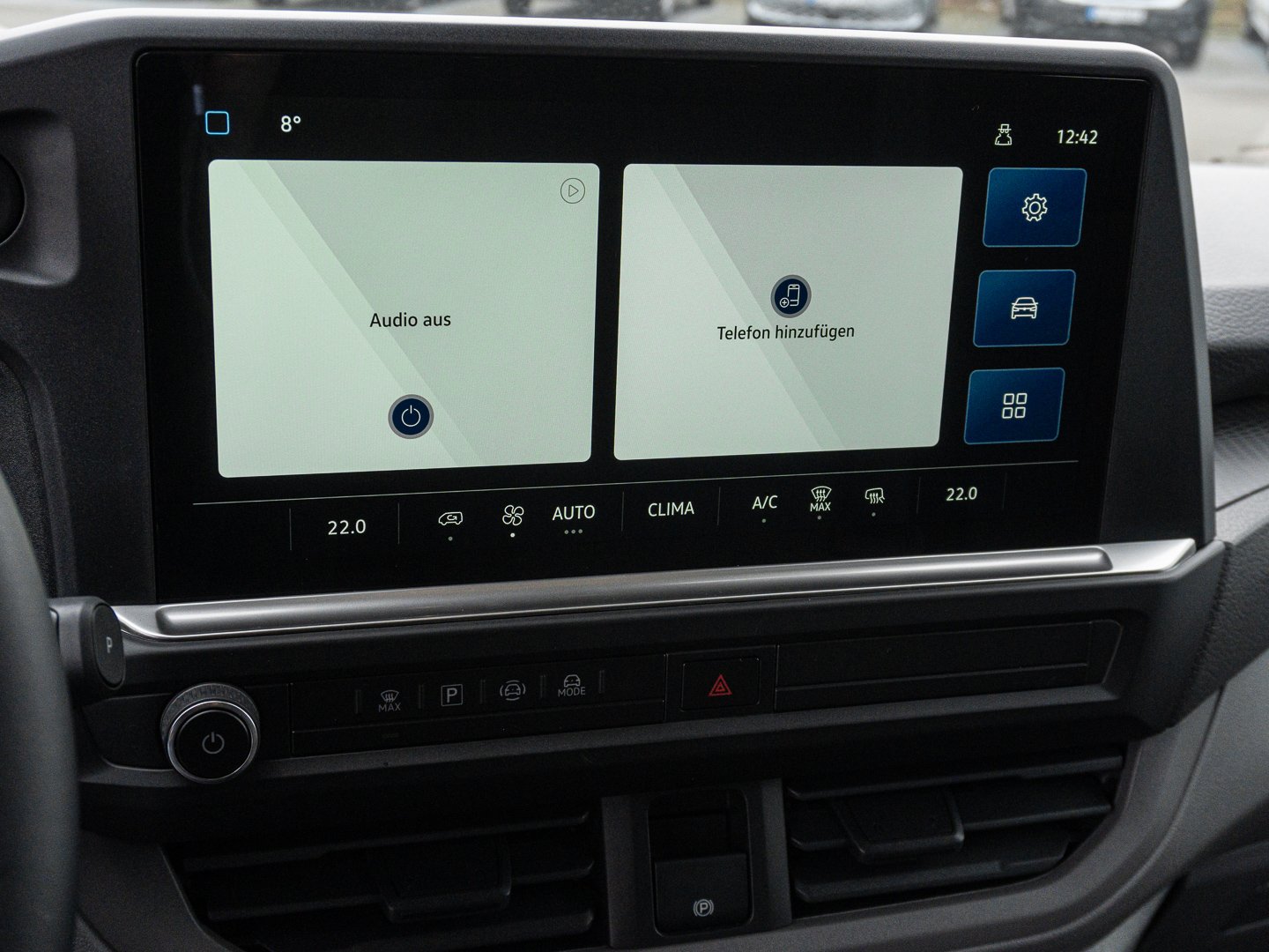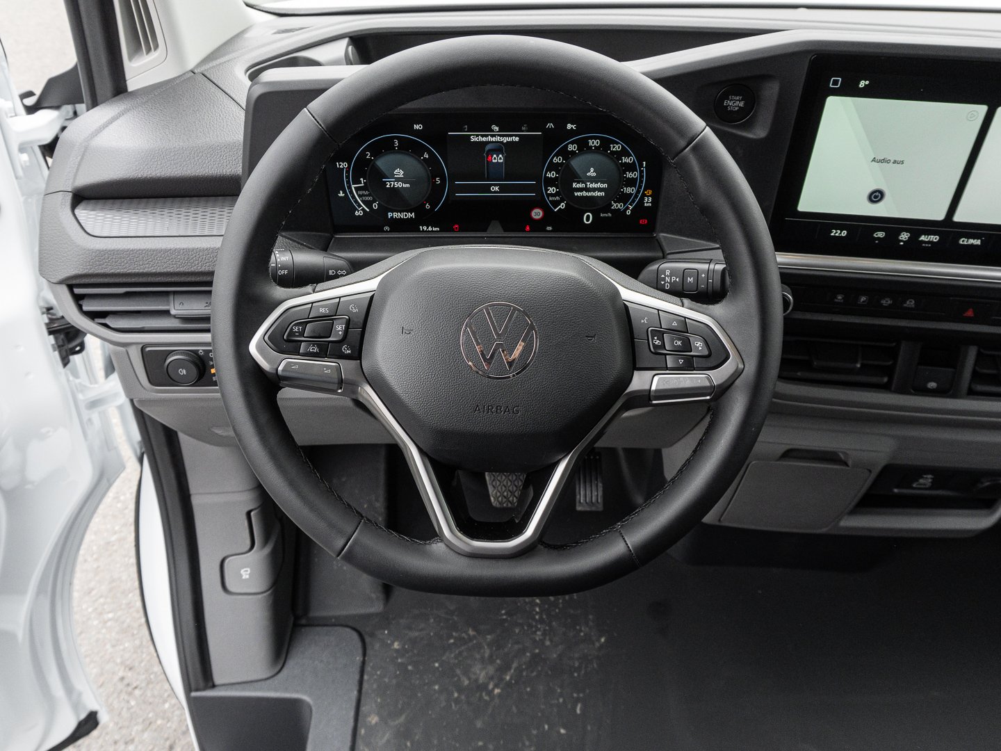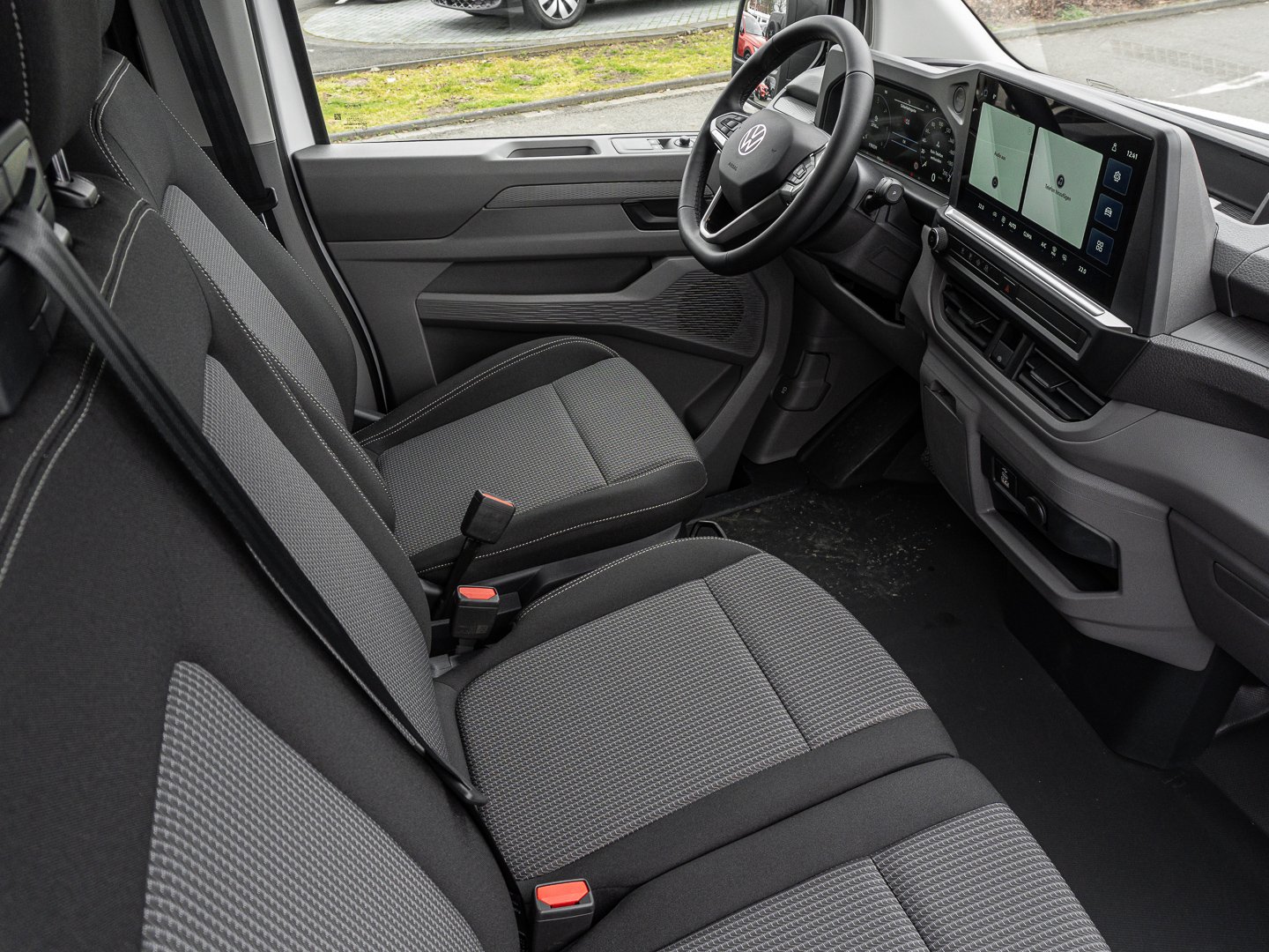 0WQ Zulässiges Gesamtgewicht 2.940 - 3.025 kg, 12T Fahrzeugklassen-Differenzierung -7TB, 1ME Multifunktions-Kunstlederlenkrad, 2JB Stoßfänger vorn und hinten in Schwarz genarbt, 2QA Schriftzug Transporter am Heck Zierleiste schwarz genarbt, 3D1 Mittelkonsole schmal mit Cupholder und Ablage für Mobiltelefon, 3L3 6-Wege Fahrersitz verstellbar, 3MJ Gummiboden im Fahrerhaus, 3TB Fahrerhaussitze, 4VQ Abgasnorm Euro 6e EB mit Nutzfahrzeugzulassung N1, 4ZA Einstiegleiste Schiebetür Kunststoff in Schwarz, 5EA Vollständige Fahrzeugzulassung, 6B3 6 Verzurrösen zur Ladegutsicherung im Laderaum, 6CB Elektrische Zusatzheizung (für Diesel), 6H3 Außenspiegelgehäuse und Türgriffe in Schwarz genarbt, 7B0 12V-Steckdose in der Mittelkonsole vorne, 7M3 Einstiegleisten vorn Kunststoff in Schwarz, 7N1 Dachkonsole klein, 7P5 2-Wege Lendenwirbelstütze für den Fahrersitz manuell einstellbar, 7W1 Öffnungskonfiguration 1. Sitzreihe, 8IT LED Frontscheinwerfer inklusive LED Tagfahrlicht, 8J1 Notbremsassistent mit Fußgänger- und Radfahrererkennung mit Ausweichunterstützung & Abbiegeassistent, N2S Sitzbezüge in Stoff gestreift, NZ2 Notrufsysstem eCall, QL7 Seitenscheiben in Wärmeschutzglas, QR4 Verkehrszeichenerkennung und Falschfahrwarnung, T02 Turbo-Diesel-Motor, U9A 2x USB im Fahrerhaus, VH0 Elektrische Klemmleiste 12-Polig, Y0D 5 Jahre Herstellergarantie für Deutschland, 3RE Heckflügeltüren mit Verkleidung aus Kunststoffplatten (Türen bei Hochdach in dachhoher Ausführung), QJ1 Exterieurpaket genarbte Anbauteile Kühlergrill in Clear White, R28 Vorbereitet für VW Connect, YAA Steuerung Sitzpaket (Bestellung nur zur Änderung des Sitzpakets in Serie), Z02 Exterieurpaket genarbte Anbauteile Kühlergrill in Clear White, 5DC Seitenverkleidung aus Kunststoff im Laderaum volle Höhe, 33A Beifahrerdoppelsitzbank mit Unterladefunktion, 3J7 2-Wege Kopfstützen höhenverstellbar, 6Q3 Schalthebel für Automatikgetriebe am Lenkrad, 7Q0 Radio 33 cm (13 ) Touch-Farbdisplay und Wireless App-Connect (Apple & Android), Z39 Fahrerhaus Sitzpaket 10A Einzelsitz in Stoff gestreift zzgl. Seitenairbag mit Beifahrerdoppelsitzbank, Q2N Fahrerhaus Sitzpaket 10A Einzelsitz in Stoff gestreift mit Beifahrerdoppelsitzbank, 6X1 Haltegriffe am Dachrahmen auf der Fahrer- und Beifahrerseite, 3CT Trennwand aus Metall hoch, 7H0 Höchstgeschwindigkeit gemäß technischer Beschreibung, 4X1 Seitenairbags und Curtainairbags im Fahrerhaus, 5AB Steuerung Holzboden im Laderaum mit Anti-Rutschbeschichtung und Vorbereitung für SORTIMO-Geschränk, 4RB Gurtstraffer für den Fahrersitz und Beifahrersitz bei Beifahrerdoppelsitzbank nur außen, 5BP Holzboden im Laderaum mit Anti-Rutschbeschichtung und Vorbereitung für ABH-Geschränk, 0I1 Kraftstofftank 55 l Fassungsvermögen, 0Z0 TV, 8RG 4 Lautsprecher (2 Lautsprecher in der Instrumententafel und 2 Lautsprecher in den Fahrerhaustüren, 8S5 LED-Leuchten für das Fahrerhaus, 8T5 Geschwindigkeitsregelanlage mit intellig. Geschwindigkeitsassistent, 8Y1 Doppeltonsignalhorn, 8YQ Dig