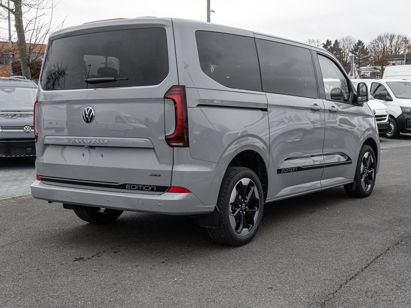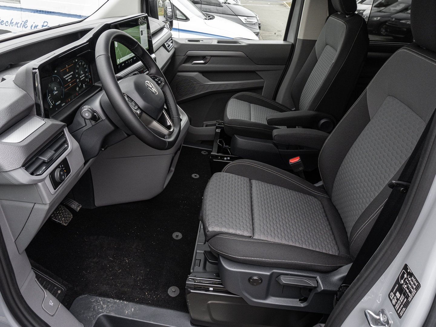 12T Fahrzeugklassen-Differenzierung -7TB, 1ME Multifunktions-Kunstlederlenkrad, 3TB Fahrerhaussitze, 4RA Gurtstraffer für den Fahrersitz und Beifahrersitz bei Beifahrerdoppelsitzbank nur außen, 5EA Vollständige Fahrzeugzulassung, 5ZS 4-Wege Kopfstützen höhen- & neigungsverstellbar, 6CB Elektrische Zusatzheizung (für Diesel), 7N1 Dachkonsole klein, 7W1 Öffnungskonfiguration 1. Sitzreihe, 9G2 Generator 230 A, EL8 5G Modem, GC0 An- und Abwahlsteuerung Reserverad, GV1 Vorbereitung alkoholempfindliche Wegfahrsperre, J1N AGM-Fahrzeugbatterie 80 Ah, NZ2 Notrufsysstem eCall, T02 Turbo-Diesel-Motor, VH0 Elektrische Klemmleiste 12-Polig, 8N1 Heckwischer mit Heckscheiben-Wischwaschanlage, GF0 Steuerung Innentrim, 4GW Frontscheibe in Verbundsicherheitsglas wärmedämmend beheizbar, IA1 Fixierpunkt nach AMPS-Standard an der Mittelkonsole z. B. für Halterungen von mobilen Endgeräten, 0WR Zulässiges Gesamtgewicht 3.125 - 3.300 kg, 1AF Elektronisches Stabilisierungsprogramm ESP und elektromechan. Bremskraftverstärker, 6Q3 Schalthebel für Automatikgetriebe am Lenkrad, 7B3 12V-Steckdose in der Mittelkonsole vorne und eine 12V-Steckdose an D-Säule auf Bodenhöhe hinten rechts, 7Q1 Navigationssystem 33 cm (13 ) Touch-Farbdisplay und wireless App-Connect (Apple & Android), 3VM 3er-Sitzbank in der 3. Sitzreihe Rückenlehne klappbar, 4C4 3 Einzelsitze in der 2. Sitzreihe, 4FH Seitenfenster im Lade-/Fahrgastraum hinten links, 4JH Seitenfenster im Lade-/Fahrgastraum hinten rechts, 4X2 Seitenairbags und Curtainairbags im Fahrerhaus und Curtainairbags im Fahrgastraum, 8S4 LED-Leuchten für das Fahrerhaus und den Fahrgastraum, 8YQ Digitales Cockpit, 9IN Mobiltelefon-Schnittstelle mit induktiver Ladefunktion, FS9 6 Rücksitze, 7H0 Höchstgeschwindigkeit gemäß technischer Beschreibung, 1M6 Anhängevorrichtung elektrisch anklappbar, 79D Spurwechselassistent Side Assist mit Ausstiegswarnung und Spurmittenführung (nur für Automatikgetriebe), 7X7 Einparkhilfe im Front- und Heckbereich mit Rangierbremsfunktion, QR9 Verkehrszeichenerkennung und Falschfahrwarnung (für Fahrassistenzpakete mit ACC), 0I1 Kraftstofftank 55 l Fassungsvermögen, 3MA Teppichboden im Fahrerhaus und im Fahrgastraum, 3PL 8-Wege Fahrersitz und 6-Wege Beifahrersitz, 4A3 Sitzheizung für Sitze im Fahrerhaus getrennt regelbar, 4S1 Armlehnen für den Fahrer- und Beifahrersitz, 4VN Abgasnorm Euro 6e EB mit Pkw-Zulassung M1, 6H1 Außenspiegelgehäuse in Schwarz lackiert und Türgriffe in Wagenfarbe, 8Y1 Doppeltonsignalhorn, G1G 8-Gang Wandler-Automatikgetriebe, GJ7 Fahrerassistenzpaket Premium Plus, KH7 Klimaanlage im FH und FGR (3 Zonen mit autom. Regelung) und digitales Bedienteil im FGR, P71 Fahrerassistenzpaket Premium Plus, U9F 7x USB im Fahrerhaus und 6x USB im Fahrgastraum, 0Z0 TV, 3KU 3 Einzelsitze 2. SR und 3er-Bank 3.SR Einzelsitze klappbar 4x Isofix 4x Top Tether, 4DE Seitenfenster im Lade-/Fahrgastraum vorn links, 4EE Seitenfenster im Lade- / Fahrgastraum vorn rechts (Fenster beidseitig), 6B1 2 Verzurrösen zur Ladegutsicherung im Koffer-/Laderaum, 6X3 Haltegriffe am Dachrahmen auf der Fahrer- und Beifahrerseite Haltegriff an der B-Säule Fahrgastraum, 2QC Schriftzug Caravelle am Heck Zierleiste in Wagenfarbe, 3D2 Mittelkonsole breit mit Cupholder und Ablage für Mobiltelefon, 3Y4 Sonnenschutzrollos an den Seitenfenstern der Schiebtüren in der 2. Sitzreihe des Fahrgastraums, 4Z5 Handschuhfach mit gedämpfter Klappenschließung beleuchtet, 6NC Formhimmel gewebt im Fahrgastraum, 6XP Außenspiegel elektrisch einstell- beheiz- und anklappbarinkl. Anklappfunktion über Fahrzeugschlüssel, 7P7 4-Wege Lendenwirbelstütze für den Fahrersitz elektrisch einstellbar, 8J2 Notbremsassistent mit Fußgänger- und Radfahrererkennung Kreuzungs- & erw. Abbiegeassistent Ausweichunterstützung, 8SG LED-Rückleuchten mit exklusiver Lichtsignatur, 8T7 Automatische Distanzregelung ACC stop&go mit Geschwindigkeitsregelanlage und intellig. Geschwindigkeitsassistent, 9E4 2 LED-Leuchten (Vorfeldbeleuchtung) in der Heckklappe mit zusätzlichem Schalter an der D-Säule, 9VJ 10 Lautsprecher 2x I-Tafel 2x FH-Türen 2x Dach 2. SR 4x Seitenverkleidung in 3. Sitzreihe, D6M 20L 4-Zylinder Turbo-Diesel-Motor 125kW / 170 PS mit 390 Nm, FB7 Schwarz lackiertes Dach, FM7 Trimlevel Interieur Style für Caravelle Life, GZ6 Schiebetür auf der Fahrer- und Beifahrerseite mit elektrischer Zuziehhilfe, KA6 Umgebungsansicht Area View inkl. Rückfahrkamera Rear View i. V. m. Spurwechselwarnung inkl. Anhängerbetrieb, N2R Sitzbezüge in Stoff Dessin Life, Q1J Fahrerhaus Sitzpaket 8 in Stoff Life mit Einzelsitzen und Sitzheizung, QJ9 Exterieurpaket Caravelle Edition, QQ3 Fußraumbeleuchtung im Fahrerhaus