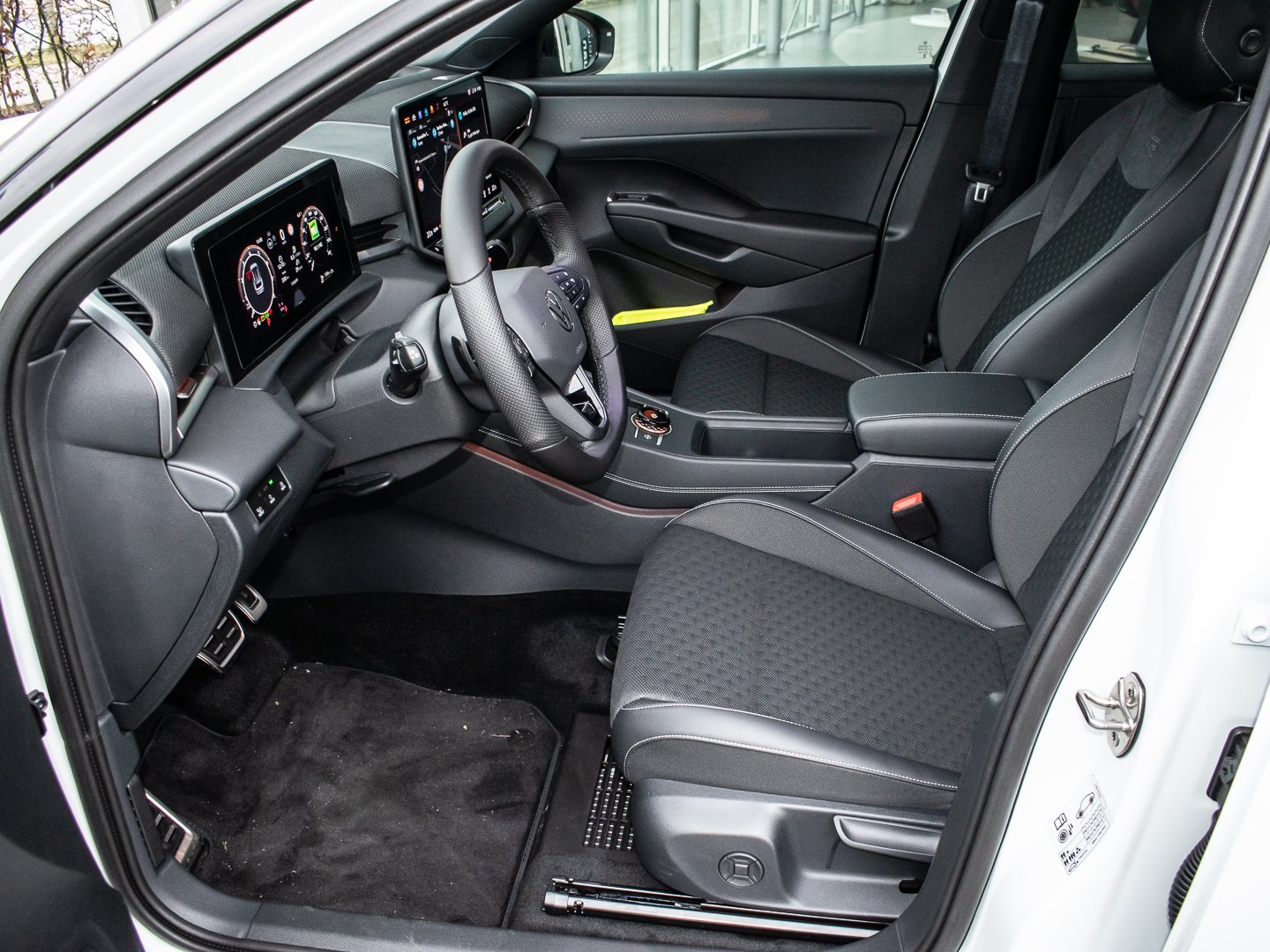 Traktionskontrolle, UG1 Berganfahrassistent, 0EG Doppelkupplungsgetriebe DQ200, 1AE Elektronisches Stabilisierungsprogramm und elektromechanischer Bremskraftverstärker, 4UF Airbag für Fahrer und Beifahrer mit Beifahrerairbag-Deaktivierung, 1JC Sportfahrwerk, EM3 Ablenkungs- und Müdigkeitserkennung, Seitenairbags vorn, 6C2 Kopfairbags vorn und hinten, 7AL Diebstahlwarnanlage mit Innenraumüberwachung
