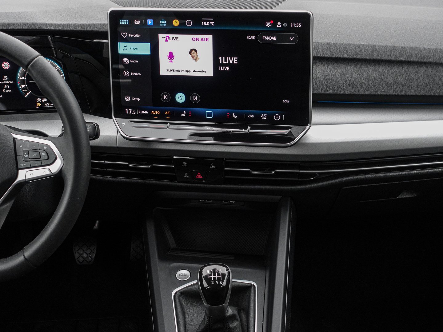 9WJ App-Connect Wireless für Apple CarPlay und Android Auto, QV3 Digitaler Radioempfang DAB+, 8RT 6+1 Lautsprecher, 9ZV Telefonschnittstelle mit induktiver Ladefunktion, 7UX Vorbereitet für spätere Freischaltung: Navigationssystem, 8DG Infotainment-System mit 32.7 -cm-Display (12.9 Zoll), YOS Vorbereitet für VW Connect und VW Connect Plus, RBB Infotainment-Paket Ready 2 Discover, U9E 2 USB-C-Schnittstellen vorn, NZ4 Notruf-Service