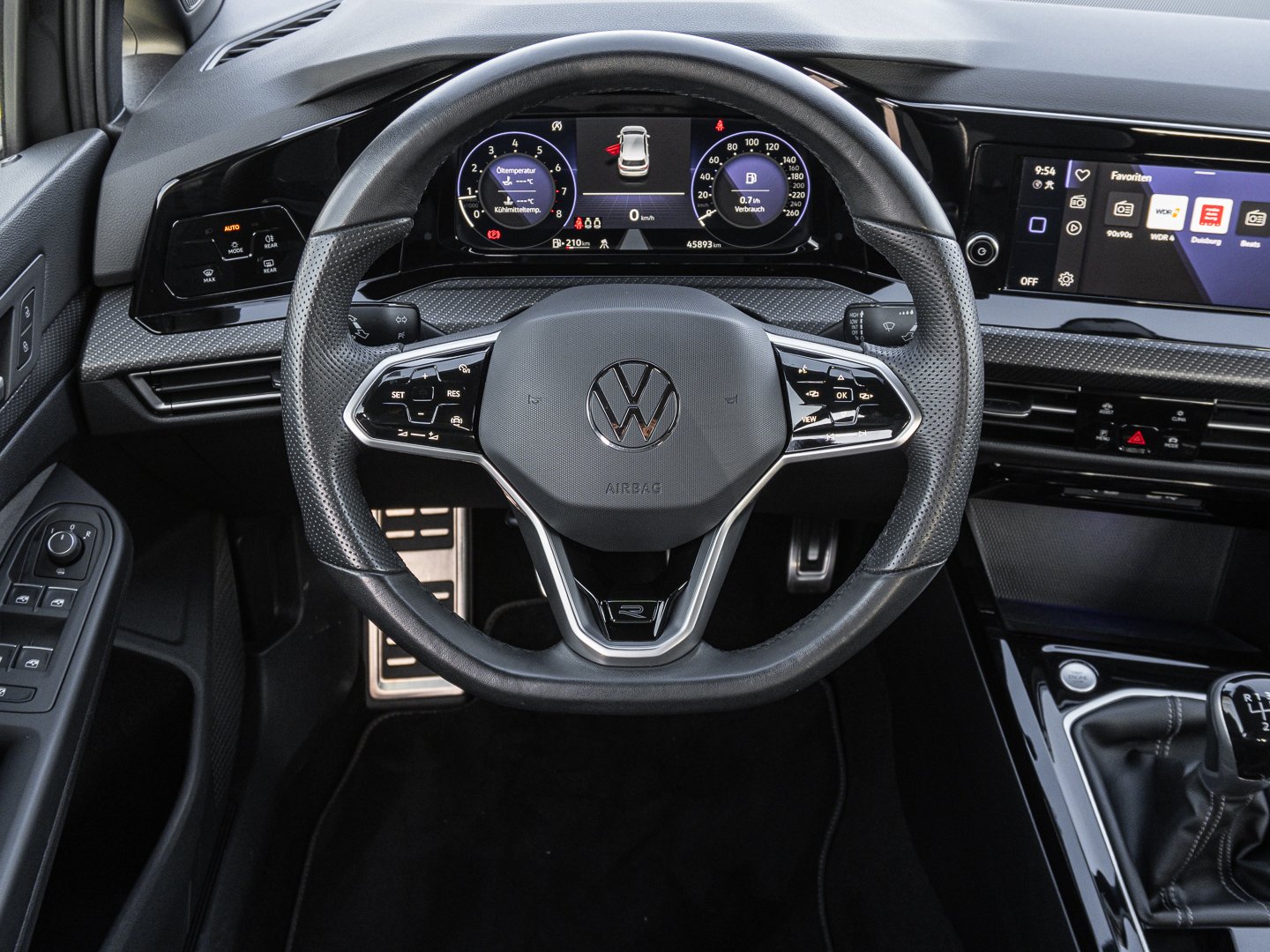 L0L Linkslenker, 7J2 Digital Cockpit Pro mehrfarbig verschiedene Info-Profile wählbar, 3NU Rücksitzbank ungeteilt Lehne asymmetrisch geteilt umklappbar mit Mittelarmlehne, 6E3 Mittelarmlehne vorn höhen- und längseinstellbar, 7P4 Lendenwirbelstützen vorn, VL1 Fußgängerschutzmaßnahmen erweitert, A9I R-Line Ausstattung, QQ9 Ambientebeleuchtung 30-farbig, 8IR LED-Scheinwerfer, Q4P Top-Sportsitze vorn, N0L Sitzmittelbahnen der Vordersitze und deräußeren Rücksitzplätze in Stoff R-Line -innenwangen in ArtVelours, 6T2 LED-Leuchte im Fußraum vorn Lichtfarbewählbar, KC0 Klimaanlage Climatronic mit Aktiv-Kombifilter, 4KC Wärmeschutzverglasung grün seitlich undhinten, 2PD Multifunktions-Sportlenkrad in Leder mit Touch-Bedienung