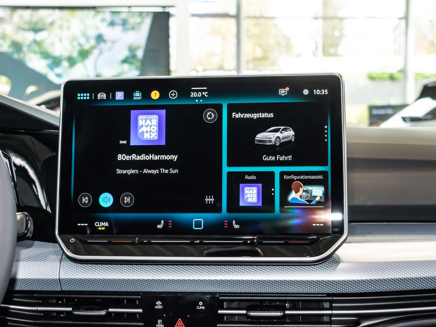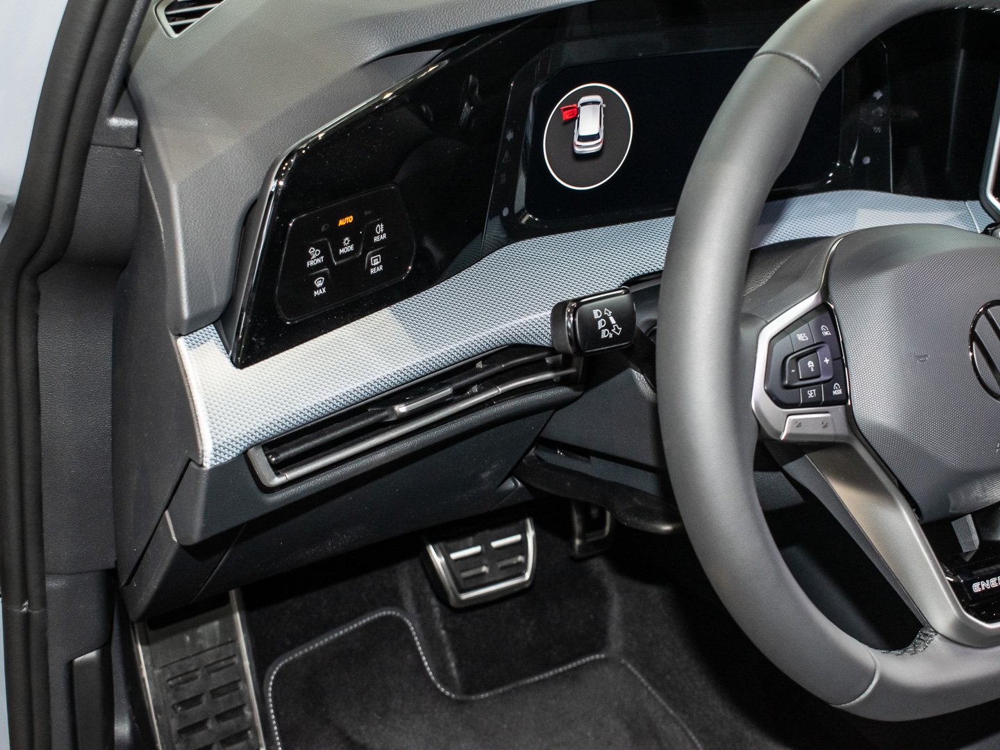 Stoff, L0L Linkslenker, 7J2 Digital Cockpit Pro mehrfarbig verschiedene Info-Profile wählbar, 2FT Multifunktionslenkrad in Leder beheizbar mit Schaltwippen, 4L6 Innenspiegel automatisch abblendend, 1J2 Umfeldbeleuchtung mit Lichtprojektion, 3NU Rücksitzbank ungeteilt Lehne asymmetrisch geteilt umklappbar mit Mittelarmlehne, 6E3 Mittelarmlehne vorn höhen- und längseinstellbar, 7P4 Lendenwirbelstützen vorn, UD9 Volkswagen Logo vorn Leiste zwischen den Scheinwerfern sowie Türgriffmulden beleuchtet, VL1 Fußgängerschutzmaßnahmen erweitert, 3H2 Beifahrersitzlehne komplett umklappbar, QQ9 Ambientebeleuchtung 30-farbig