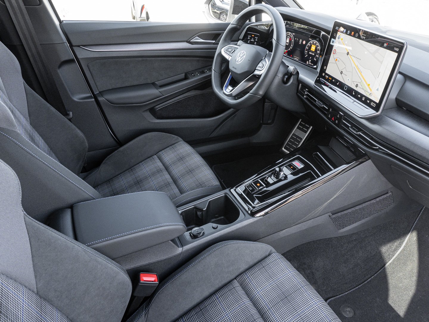 7J2 Digital Cockpit Pro mehrfarbig verschiedene Info-Profile wählbar, 1J2 Umfeldbeleuchtung mit Lichtprojektion, 3NU Rücksitzbank ungeteilt Lehne asymmetrisch geteilt umklappbar mit Mittelarmlehne, 6E3 Mittelarmlehne vorn höhen- und längseinstellbar, 7P4 Lendenwirbelstützen vorn, VL1 Fußgängerschutzmaßnahmen erweitert, Q4P Top-Sportsitze vorn, UD8 Volkswagen Logo vorn Leiste zwischen den Scheinwerfern sowie Türgriffmulden beleuchtet, QQ4 Ambientebeleuchtung 30-farbig Ablagefach in der Mittelkonsole vorn beleuchtet, Innenspiegel automatisch abblendend, Multifunktions-Sportlenkrad in Leder beheizbar mit Schaltwippen