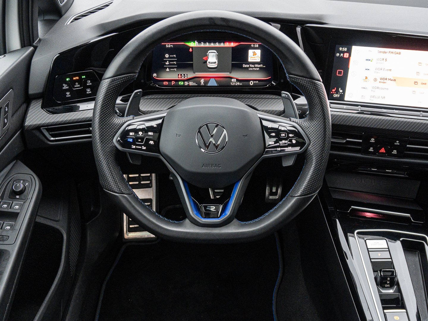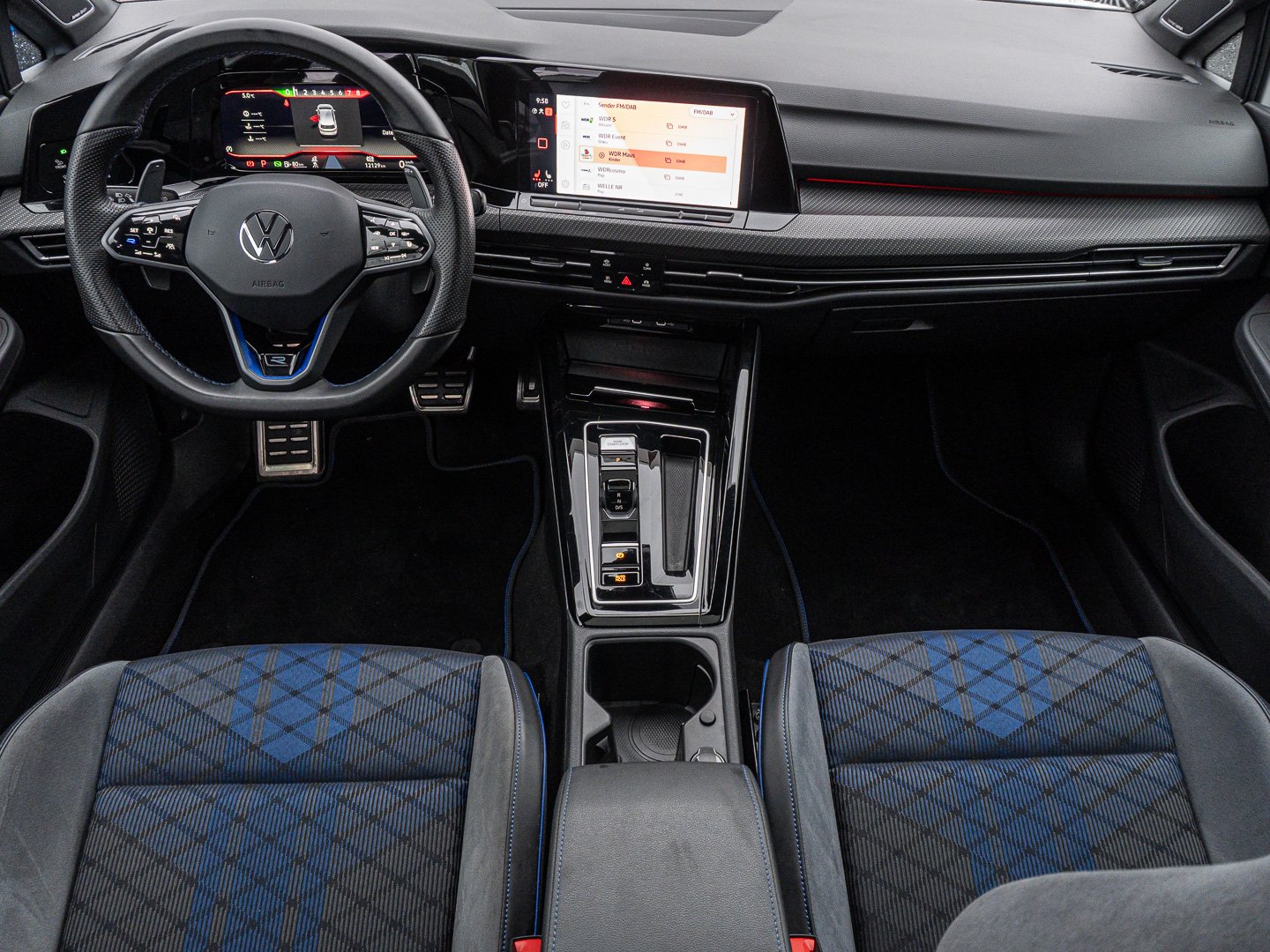 L0L Linkslenker, 7J2 Digital Cockpit Pro mehrfarbig verschiedene Info-Profile wählbar, 4L6 Innenspiegel automatisch abblendend, 3NU Rücksitzbank ungeteilt Lehne asymmetrisch geteilt umklappbar mit Mittelarmlehne, 6E3 Mittelarmlehne vorn höhen- und längseinstellbar, 7P4 Lendenwirbelstützen vorn, VL1 Fußgängerschutzmaßnahmen erweitert, Q4P Top-Sportsitze vorn, 6T2 LED-Leuchte im Fußraum vorn Lichtfarbewählbar, 6FH Außenspiegelgehäuse in Chrom matt, A9R Top-Sport, 1XT Multifunktions-Sportlenkrad in Leder beheizbar mit Touch-Bedienung und Schaltwippen, QQ4 Ambientebeleuchtung 30-farbig Ablagefach in der Mittelkonsole vorn beleuchtet, 2JF Stoßfänger und Schwellerverbreiterung im R -Styling, N0W Sitzmittelbahnen der Vordersitze und deräußeren Rücksitzplätze in Stoff R .-innenwangen in ArtVelours