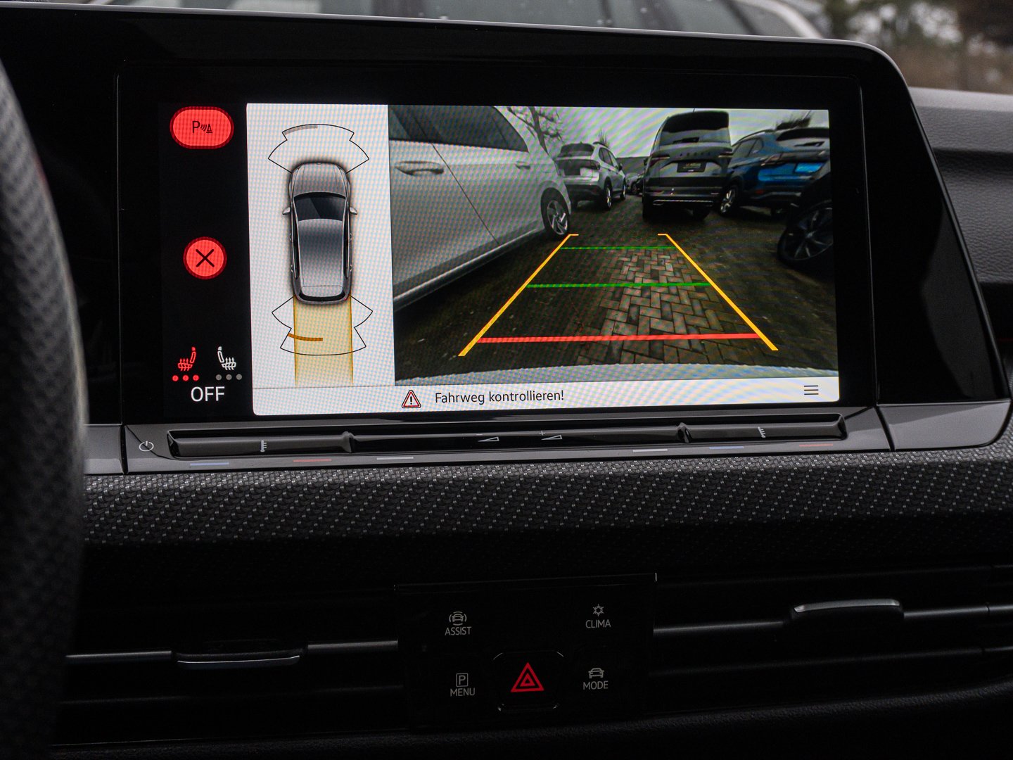 Klimaautomatik, EM1 Müdigkeitserkennung, KA2 Rückfahrkamera Rear View, 8J3 Notbremsassistent Front Assist mit Fußgänger- und Radfahrererkennung, 8G5 Dynamischer Fernlichtassistent Dynamic Light Assist, 8Q5 Leuchtweitenregulierung dynamisch mit dynamischem Kurvenfahrlicht, UH2 Elektronische Parkbremse inkl. Auto-Hold-Funktion, 7K1 Reifenkontrollanzeige, 7W2 Proaktives Insassenschutzsystem in Verbindung mit Front Assist, 6I2 Fahrassistent Travel Assist und Spurhalteassistent Lane Assist, 7X2 Einparkhilfe - Warnsignale bei Hindernissen im Front- und Heckbereich, 8T8 Automatische Distanzregelung ACC stop &go mit Geschwindigkeitsbegrenzer, 9I5 Fahrlichtschaltung automatisch mit LED-Tagfahrlicht sowie Begrüßungs- und Verabschiedungslicht, PXC IQ.LIGHT - LED-Matrix-Scheinwerfer inkl. Licht-und-Sicht-Paket