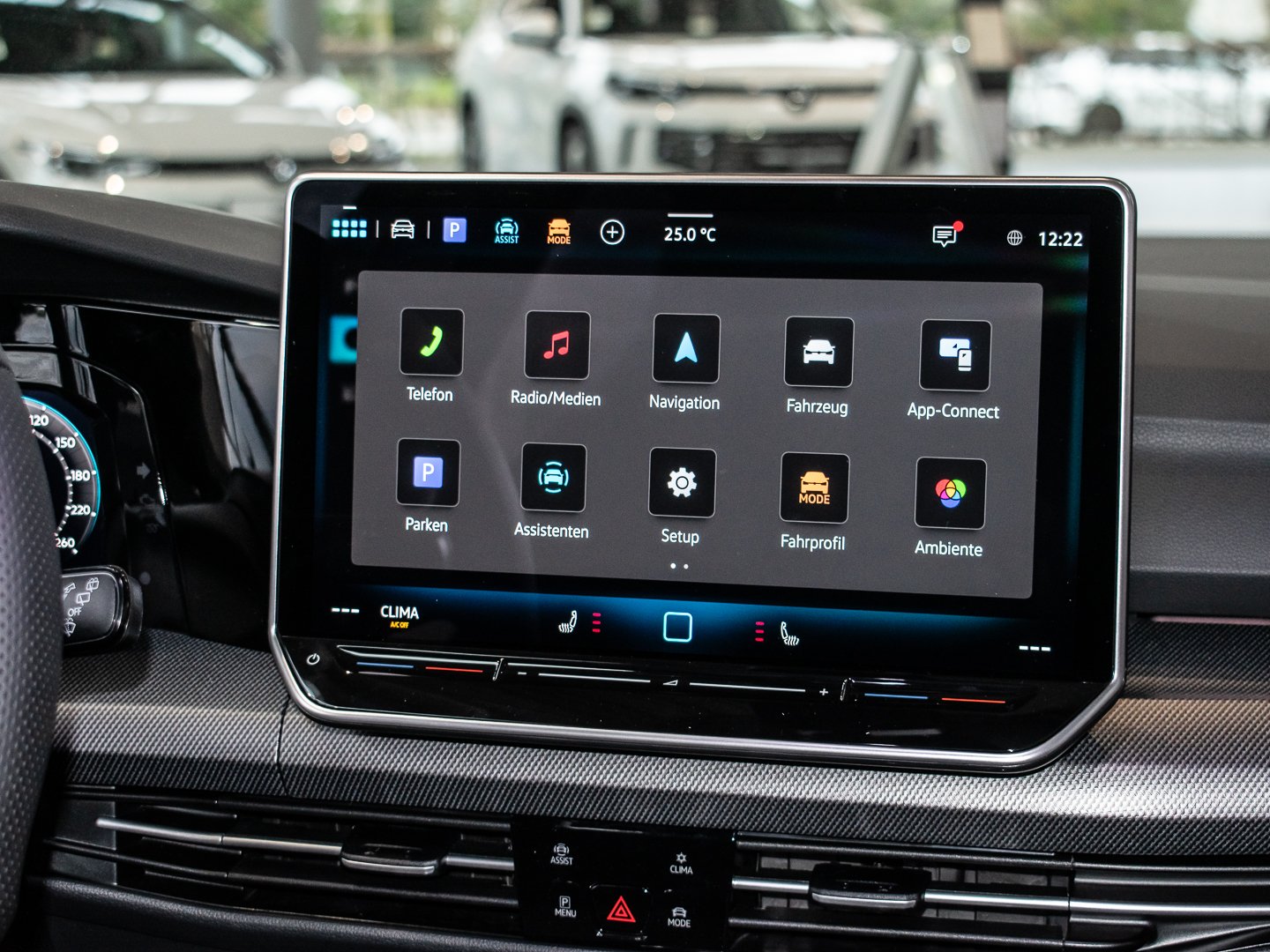 Stoff, L0L Linkslenker, 7J2 Digital Cockpit Pro mehrfarbig verschiedene Info-Profile wählbar, 4L6 Innenspiegel automatisch abblendend, 1J2 Umfeldbeleuchtung mit Lichtprojektion, 3NU Rücksitzbank ungeteilt Lehne asymmetrisch geteilt umklappbar mit Mittelarmlehne, 6E3 Mittelarmlehne vorn höhen- und längseinstellbar, 7P4 Lendenwirbelstützen vorn, UD9 Volkswagen Logo vorn Leiste zwischen den Scheinwerfern sowie Türgriffmulden beleuchtet, VL1 Fußgängerschutzmaßnahmen erweitert, 2PT Multifunktions-Sportlenkrad in Leder beheizbar mit Schaltwippen, QQ9 Ambientebeleuchtung 30-farbig, Q4P Top-Sportsitze vorn