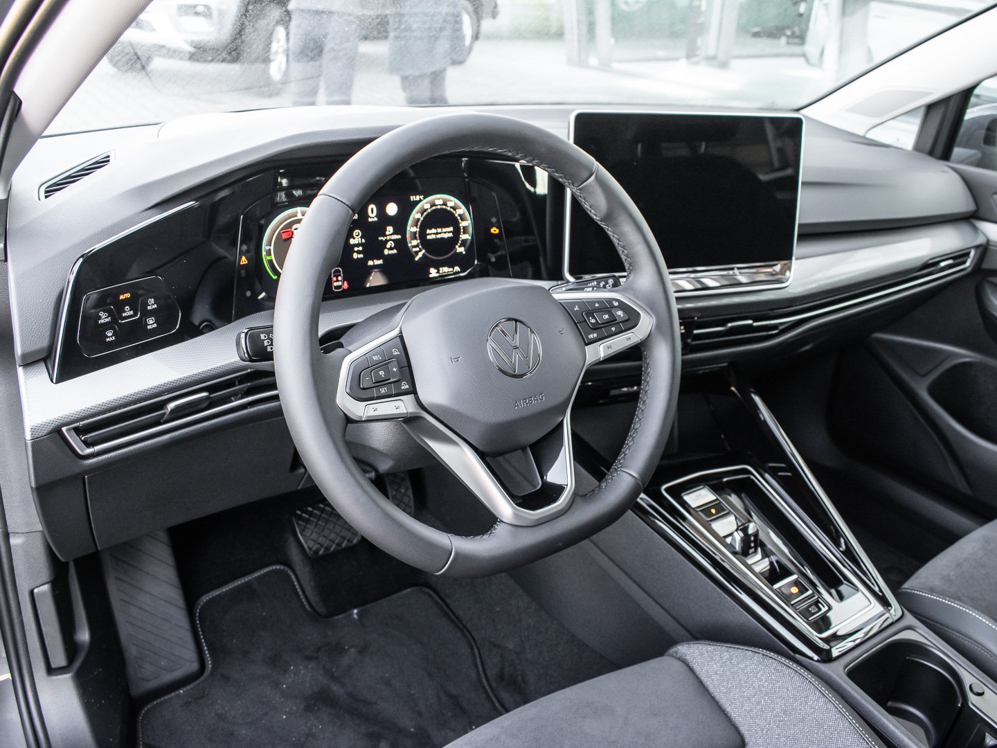9I5 Fahrlichtschaltung automatisch mit LED-Tagfahrlicht sowie Begrüßungsund Verabschiedungslicht, NI1 Mit UNECE CS&SU, GP1 Fahrzeuge mit besonderen Produktaufwertungsmaßnahmen, J4J Batterie 380A (59Ah) EFB+, 5MJ Dekoreinlagen Style für Instrumententafel und Türverkleidungen vorn, N0R Sitzmittelbahnen der Vordersitze und der äußeren Rücksitzplätze in Mikrovlies ArtVelours Eco, 6C4 Kopf- und Seitenairbags vorn und hinten, Volkswagen R, maximale Gesamtlaufleistung 100.000 km, WLTP3 M1, N1-I//EU6EA, Ausparkassistent und Ausstiegswarnung, Bedienelementen hinten und 3-Zonen-Temperaturregelung, Lufteinlass mit Chromleiste, Laufzeit 10 Jahre ab Erstauslieferung, Voraussetzung: Verfügbarkeit benötigter Mobilfunknetze, Lichtfarbe wählbar, Lehne asymmetrisch geteilt umklappbar mit Mittelarmlehne, auf Fahrerseite elektrisch einstellbar, 0IC Einbau Differenzierung für Getriebe DQ400, Spurhalteassistent Lane Assist und Emergency Assist, 4K6 Schlüsselloses Schließ- und Startsystem Keyless Access mit berührungsloser Ver- und Entriegelung, SAFE-Verriegelung, UD8 Volkswagen Logo vorn, 8A5 Parkassistent Park Assist Pro, Inkl. Einparkhilfe, 2 USB-C-Ladebuchsen an der Mittelkonsole hinten Ladeleistung bis zu 45 W, 3A2 ISOFIX-Halteösen für Kindersitze auf den äußeren Rücksitzen sowie auf dem Beifahrersitz, Anklapp beheizbar mit Memory-Funktion und Beifahrerspiegelabsenkung, QJ1 Chrom-Applikationen an Spiegeleinstellund Fensterheberschaltern, 45M 4 Leichtmetallräder Leeds 7.5 J x 18 in Schwarz Oberfläche glanzgedreht Einleger in Dark Graphite, DE3 4-Zylinder-Ottomotor 1.5 L/110 KW TSI, Hybrid Grundmotor ist: T5F/T1C/T2Y/TU6/T2N/T0C/T5U/T60, PJ5 Leeds 7.5 J x 18 in Schwarz / glanzgedreht / Dark Graphite, PM5 Komfortpaket inkl. Park Assist Pro