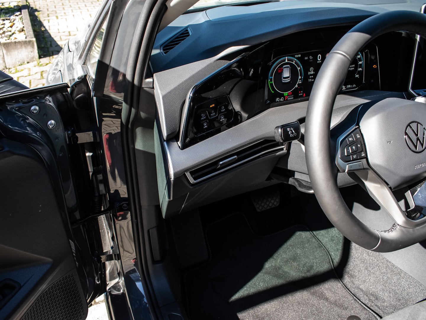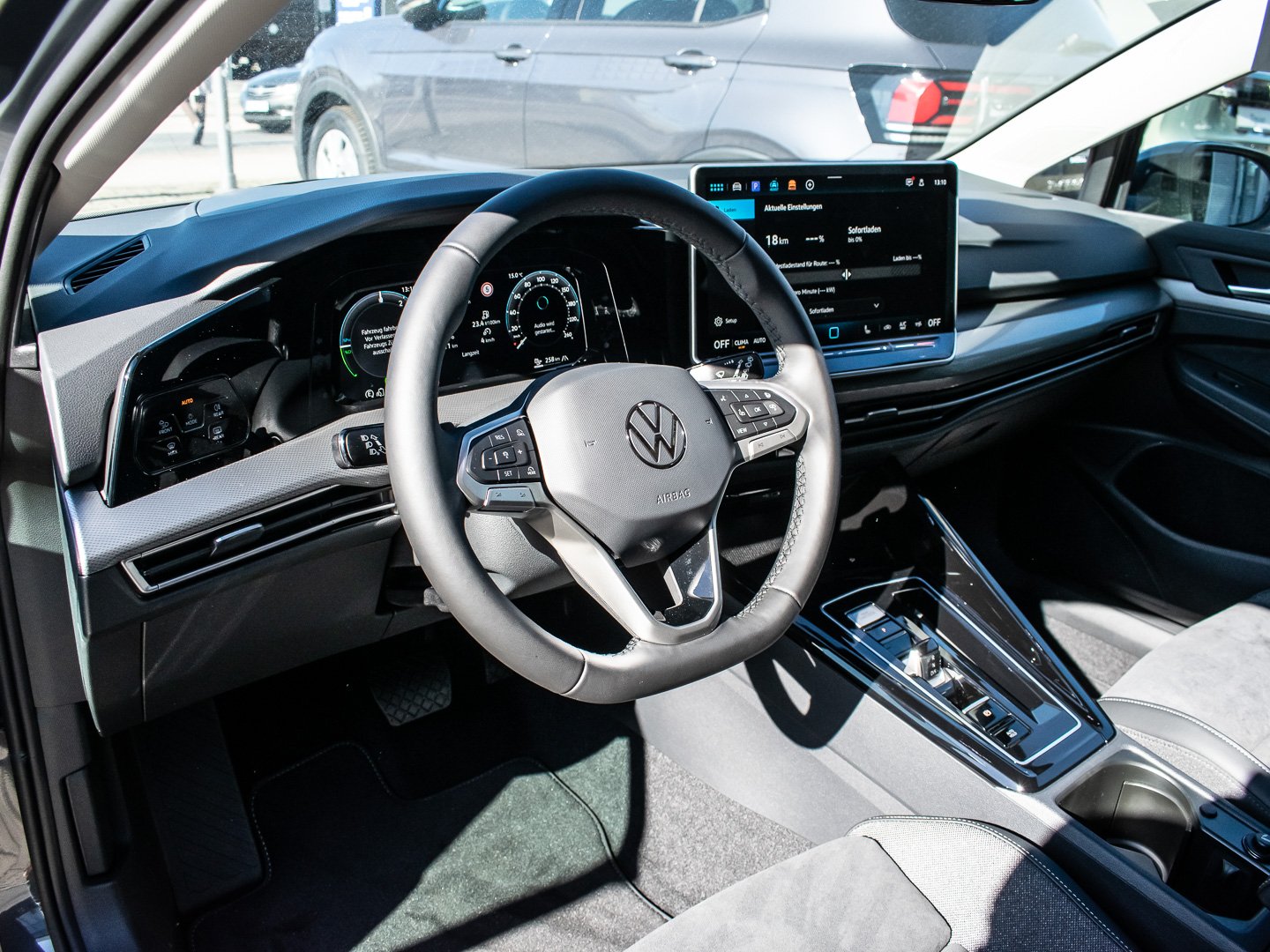 9I5 Fahrlichtschaltung automatisch mit LED-Tagfahrlicht sowie Begrüßungsund Verabschiedungslicht, NI1 Mit UNECE CS&SU, GP1 Fahrzeuge mit besonderen Produktaufwertungsmaßnahmen, J4J Batterie 380A (59Ah) EFB+, 5MJ Dekoreinlagen Style für Instrumententafel und Türverkleidungen vorn, N0R Sitzmittelbahnen der Vordersitze und der äußeren Rücksitzplätze in Mikrovlies ArtVelours Eco, 6C4 Kopf- und Seitenairbags vorn und hinten, Volkswagen R, maximale Gesamtlaufleistung 100.000 km, WLTP3 M1, N1-I//EU6EA, Ausparkassistent und Ausstiegswarnung, Bedienelementen hinten und 3-Zonen-Temperaturregelung, Lufteinlass mit Chromleiste, Laufzeit 10 Jahre ab Erstauslieferung, Voraussetzung: Verfügbarkeit benötigter Mobilfunknetze, Lichtfarbe wählbar, Lehne asymmetrisch geteilt umklappbar mit Mittelarmlehne, auf Fahrerseite elektrisch einstellbar, 0IC Einbau Differenzierung für Getriebe DQ400, Spurhalteassistent Lane Assist und Emergency Assist, 4K6 Schlüsselloses Schließ- und Startsystem Keyless Access mit berührungsloser Ver- und Entriegelung, SAFE-Verriegelung, UD8 Volkswagen Logo vorn, 8A5 Parkassistent Park Assist Pro, Inkl. Einparkhilfe, 2 USB-C-Ladebuchsen an der Mittelkonsole hinten Ladeleistung bis zu 45 W, 3A2 ISOFIX-Halteösen für Kindersitze auf den äußeren Rücksitzen sowie auf dem Beifahrersitz, Anklapp beheizbar mit Memory-Funktion und Beifahrerspiegelabsenkung, QJ1 Chrom-Applikationen an Spiegeleinstellund Fensterheberschaltern, 45M 4 Leichtmetallräder Leeds 7.5 J x 18 in Schwarz Oberfläche glanzgedreht Einleger in Dark Graphite, DE3 4-Zylinder-Ottomotor 1.5 L/110 KW TSI, Hybrid Grundmotor ist: T5F/T1C/T2Y/TU6/T2N/T0C/T5U/T60, PJ5 Leeds 7.5 J x 18 in Schwarz / glanzgedreht / Dark Graphite, PM5 Komfortpaket inkl. Park Assist Pro