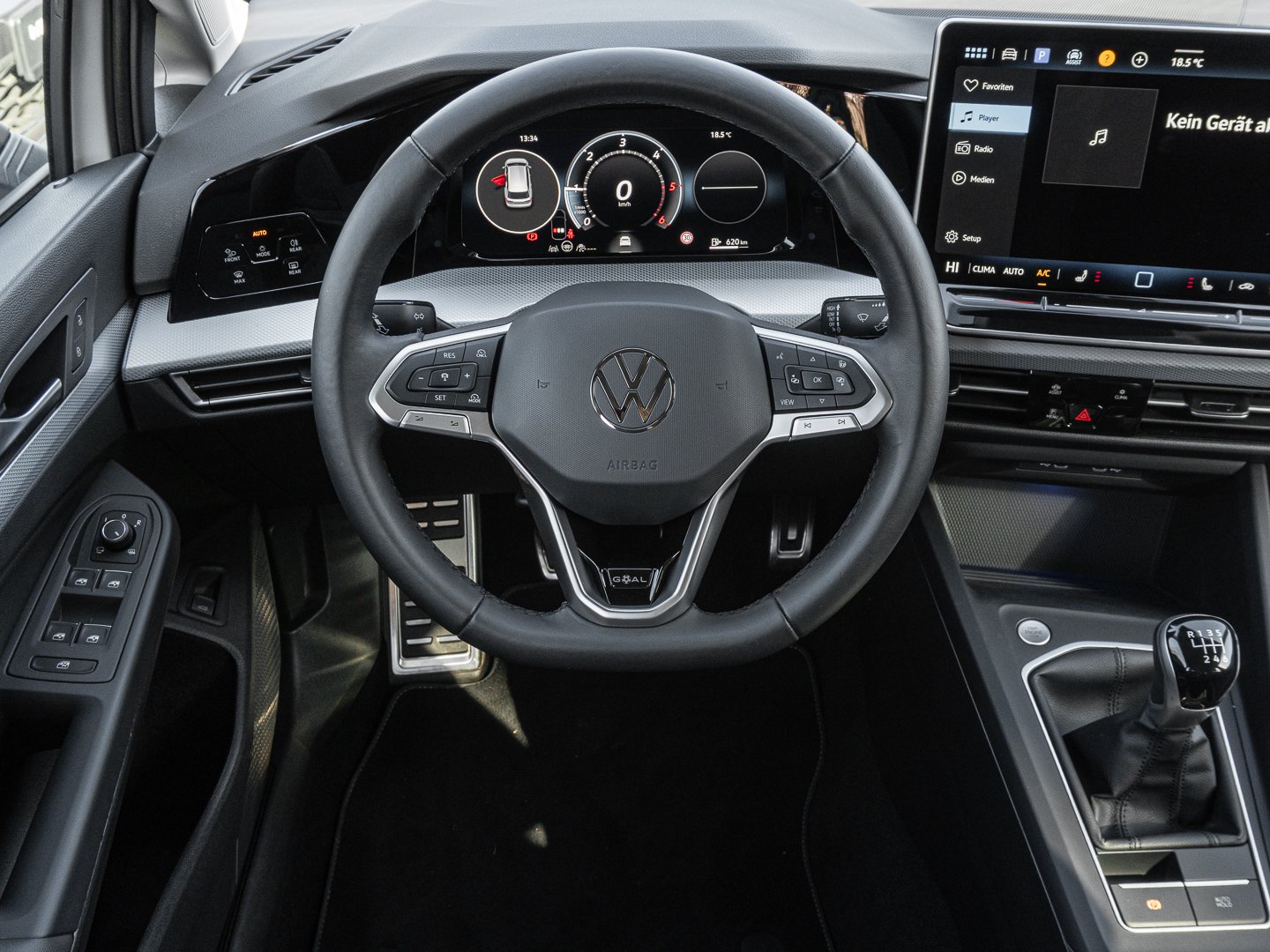 L0L Linkslenker, 7J2 Digital Cockpit Pro mehrfarbig verschiedene Info-Profile wählbar, 4L6 Innenspiegel automatisch abblendend, 1J2 Umfeldbeleuchtung mit Lichtprojektion, 2FM Multifunktionslenkrad in Leder beheizbar, 3NU Rücksitzbank ungeteilt Lehne asymmetrisch geteilt umklappbar mit Mittelarmlehne, 6E3 Mittelarmlehne vorn höhen- und längseinstellbar, 7P4 Lendenwirbelstützen vorn, VL1 Fußgängerschutzmaßnahmen erweitert, QQ9 Ambientebeleuchtung 30-farbig, UD8 Volkswagen Logo vorn Leiste zwischen den Scheinwerfern sowie Türgriffmulden beleuchtet