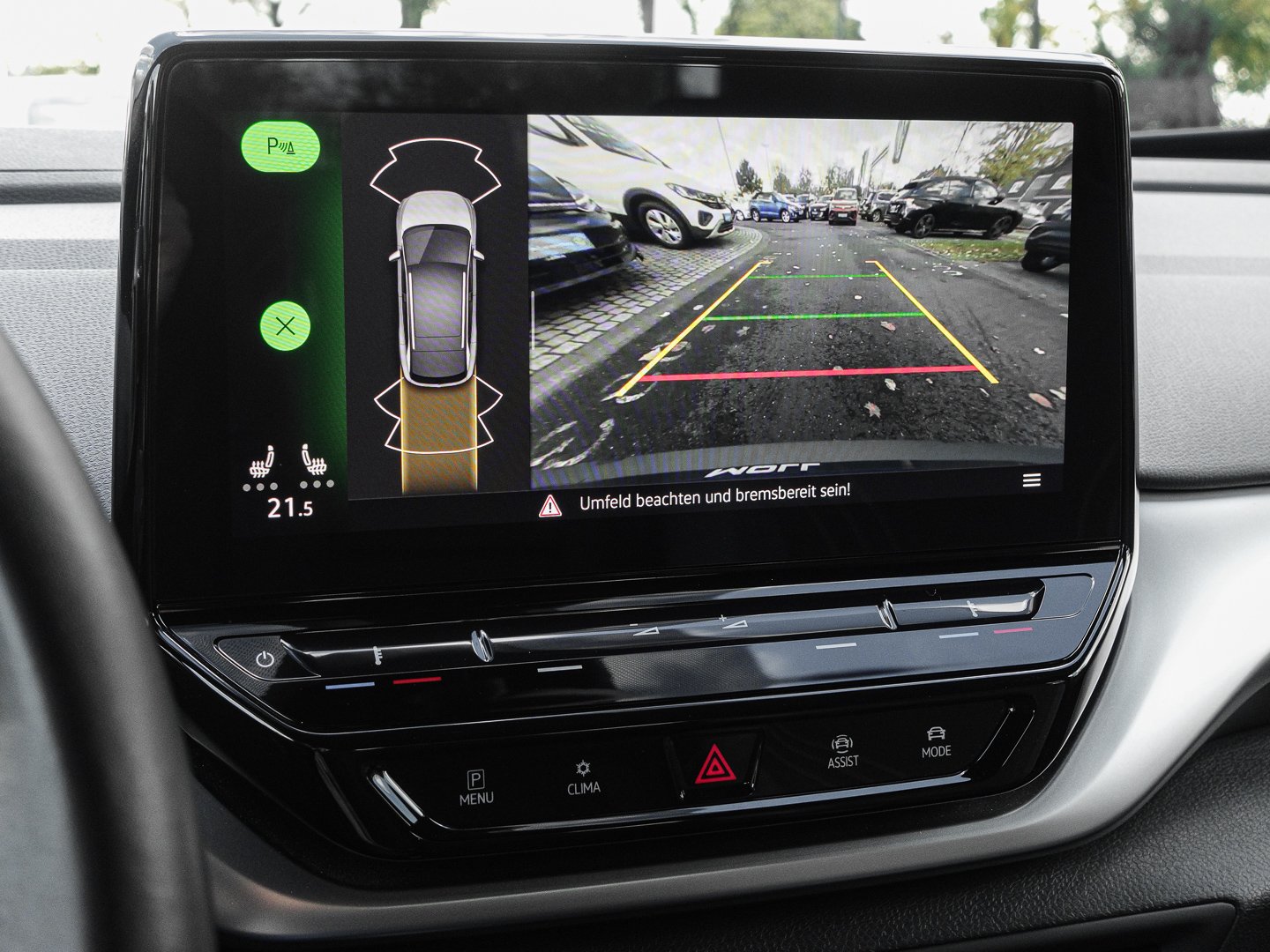 Klimaautomatik, QR9 Verkehrszeichenerkennung, 6I1 Spurhalteassistent Lane Assist, KA2 Rückfahrkamera Rear View, 8J3 Notbremsassistent Front Assist mit Fußgänger- und Radfahrererkennung, 7K1 Reifenkontrollanzeige, 7W2 Proaktives Insassenschutzsystem in Verbindung mit Front Assist, 7X2 Einparkhilfe - Warnsignale bei Hindernissen im Front- und Heckbereich, EM1 Müdigkeitserkennung