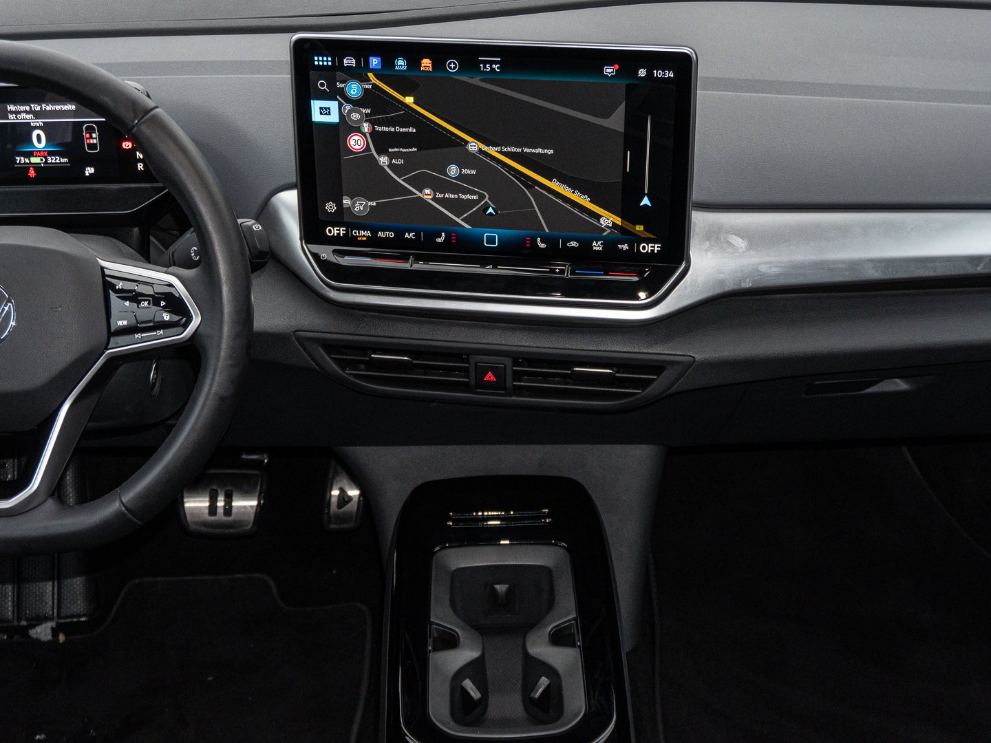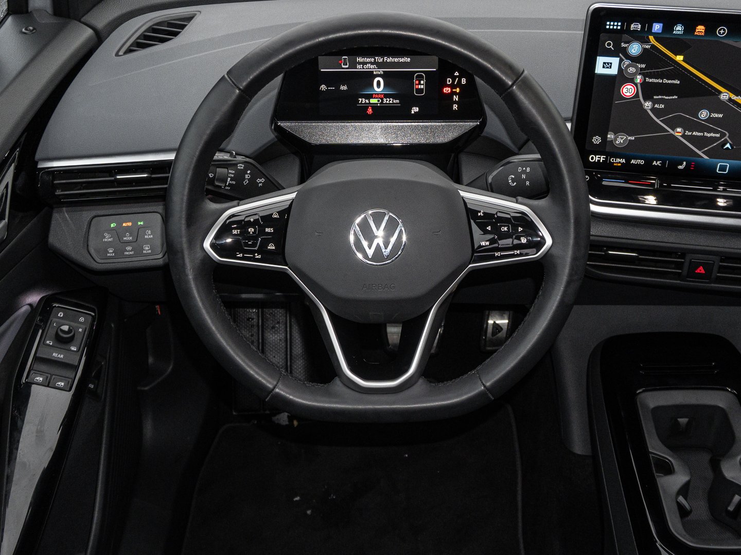 L0L Linkslenker, 3CX Netztrennwand, 4L6 Innenspiegel automatisch abblendend, 4S1 Armlehne für Vordersitze, KH7 Klimaanlage Air Care Climatronic mit Aktiv-Kombifilter Standklimatisierung und 3-Zonen-Temperaturregelung, QW5 Einfassung des Infotainment-Displays undder zentralen Bedienelemente in Schwarz, QQ8 Ambientebeleuchtung 10-farbig inkl. ID. Light, N4C Sitzmittelbahnen der Vordersitze und deräußeren Rücksitzplätze in Stoff Matrix