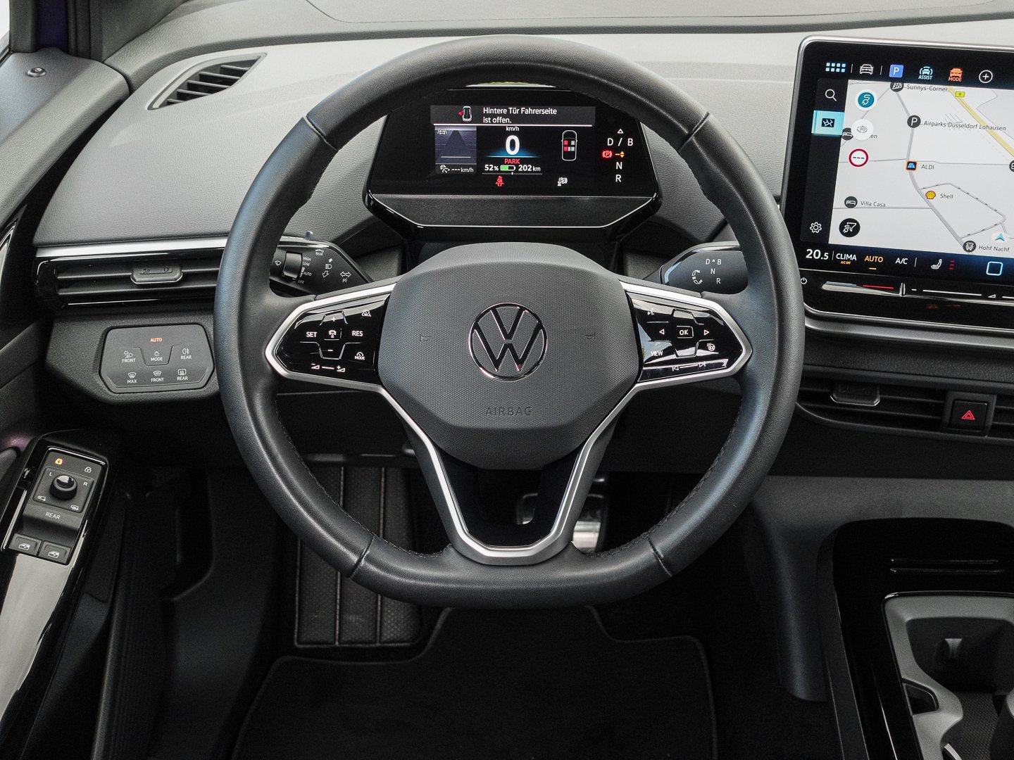 2ZP Multifunktionslenkrad beheizbar mit Touch-Bedienung, 8IV IQ.LIGHT - LED-Matrix-Scheinwerfer mit automatischer Fahrlichtschaltung Schlechtwetterlicht Begrüßungsfunktion, 9WJ App-Connect Wireless für Apple CarPlay und Android Auto, EM2 Ablenkungs- und Müdigkeitserkennung, LT2 Geschwindigkeitsbegrenzer mit vorausschauender Regelung, NI1 Mit UNECE CS&SU, NZ4 Notruf-Service Laufzeit 10 Jahre ab Erstauslieferung Voraussetzung: Verfügbarkeit benötigter Mobilfunknetze, 8DB Radio Ready 2 Discover Max, 9DB Zellmodul L, EL5 Vorbereitet für VW Connect und VW Connect Plus Online-Update-Fähigkeit (außer für Sonderumbauten), LH2 Maximale DC-Ladeleistung (Gleichstrom) abhängig von der Antriebsbatterie, N4C Sitzmittelbahnen der Vordersitze und deräußeren Rücksitzplätze in Stoff Matrix, QQ8 Ambientebeleuchtung 10-farbig inkl. ID. Light, QW5 Einfassung des Infotainment-Displays undder zentralen Bedienelemente in Schwarz, U9E 2 USB-C-Schnittstellen vorn 2 USB-C-Ladebuchsen an der Mittelkonsolehinten Ladeleistung bis zu 45 W, VW5 Verbundsicherheitsglas für Seitenscheiben vorn Heckscheibe und Seitenscheiben hinten abgedunkelt, 80E Airstop-Ganzjahresreifen 235/55 R 19, WM1 Exterieur Style Silver, C7D 4 Leichtmetallräder Hamar 8 J x 19 in Dark Graphite Oberfläche glanzgedreht, 3D2 Mittelkonsole variabel mit wechselbarenEinsätzen für Becherhalter und Ablagefächer, L1E Elektro-Motor Systemleistung 125 KW Grundmotor ist: N06/N07/N10/T3U/TB7, PJB Hamar 8 J x 19 in Dark Graphite / glanzgedreht Airstop-Ganzjahresreifen 235/55 R 19