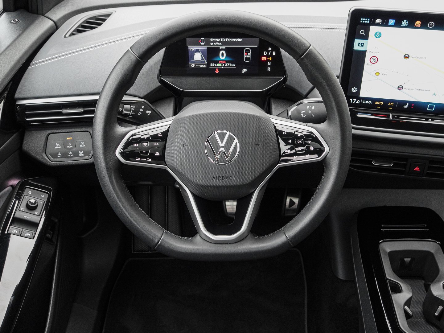 L0L Linkslenker, 3CX Netztrennwand, 4L6 Innenspiegel automatisch abblendend, 4S1 Armlehne für Vordersitze, KH7 Klimaanlage Air Care Climatronic mit Aktiv-Kombifilter Standklimatisierung und 3-Zonen-Temperaturregelung, 3GN Gepäckraumboden in 2 Höhen einstellbar für ebene Ladefläche, QW5 Einfassung des Infotainment-Displays undder zentralen Bedienelemente in Schwarz, QQ8 Ambientebeleuchtung 10-farbig inkl. ID. Light, N4C Sitzmittelbahnen der Vordersitze und deräußeren Rücksitzplätze in Stoff Matrix