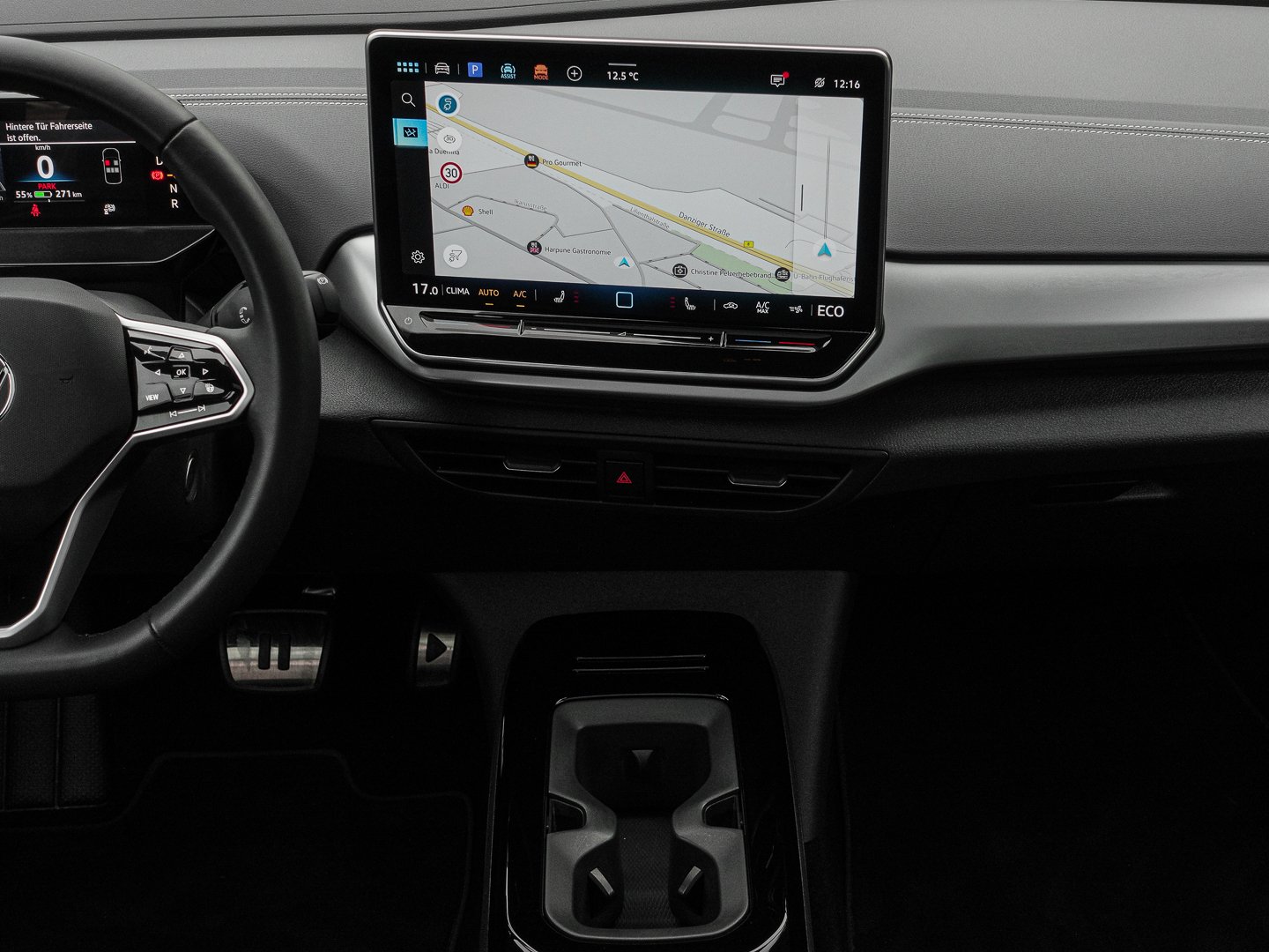 Klimaautomatik, QR9 Verkehrszeichenerkennung, 8J3 Notbremsassistent Front Assist mit Fußgänger- und Radfahrererkennung, 6I6 Fahrassistent Travel Assist Spurhalteassistent Lane Assist und Emergency Assist, 79H Spurwechselassistent Side Assist Ausparkassistent und Ausstiegswarnung, KA6 Umgebungsansicht Area View inkl. Rückfahrkamera Rear View, 7K1 Reifenkontrollanzeige, LT2 Geschwindigkeitsbegrenzer mit vorausschauender Regelung, 8G4 Dynamischer Fernlichtassistent Dynamic Light Assist, 8T3 Automatische Distanzregelung, 7W2 Proaktives Insassenschutzsystem in Verbindung mit Front Assist, WD6 Assistenzpaket IQ.DRIVE