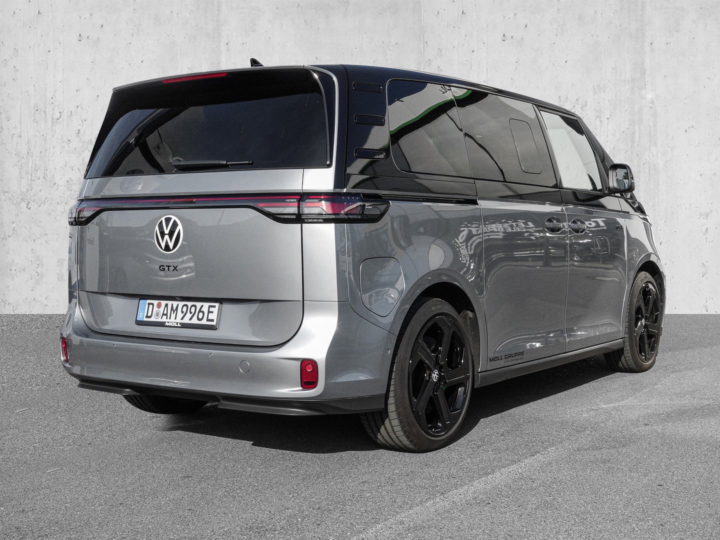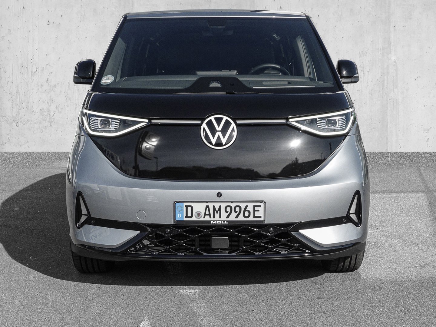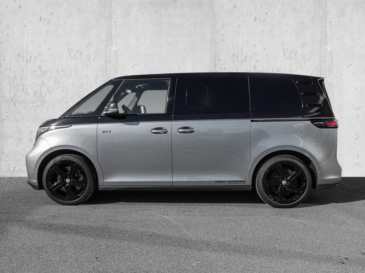 9DB Zellmodul L, A9Q GTX, J9Z Hochvolt-Batterie 84 kWh (brutto), T65 Elektro-Motor Aggr.0EJ.D und 0ET.A, NZ2 Notrufsystem eCall Voraussetzung: Verfügbarkeit benötigter Mobilfunknetze, 3B4 ISOFIX und Top Tether auf den äußeren Rücksitzen und Beifahrersitz I-Size für Beifahrersitz und äußere Sitze 2. SR, 4UF Airbags für Fahrer und Beifahrer mit Beifahrerairbag-Deaktivierung, 6C2 Seiten- und Kopfairbags für Fahrer und Beifahrer sowie Mittenairbag vorn, 6T2 Innenbeleuchtung im Fußraum vorn und hinten, 7W2 Proaktives Insassenschutzsystem in Verbindung mit dem Front Assist, 8DB Radio Ready 2 Discover mit 32.8 cm (12.9 ) Touch-Farbdisplay, 9E1 LED-Gepäckraumbeleuchtung, LT2 Intelligent Speed Assist inkl. Geschwindigkeitsbegrenzer, QW5 Einfassung der zentralen Bedienungselemente in Schwarz, Y0D 5 Jahre Herstellergarantie für Deutschland, 01J Zulässiges Gesamtgewicht 3.250 kg, 1LW 19 Scheibenbremsen vorn mit Bremsbeschlagverschleißanzeige, 1R8 Sitzeinstellung elektrisch für beide Vordersitze mit Memory und Fahrerseite mit Smart Comfort Einstiegshilfe, 2ZP Multifunktionslenkrad in Leder mit Touch-Bedienung beheizbar, 3FP Smart Glas Panoramadach, 3KT 2 Einzelsitze in der 2. Sitzreihe mit Easy-Entry-Funktion plus 2 entnehmbare Sitze in der 3. Sitzreihe, 3ME Teppichbodenbelag (Tuftingvelours) trittverstärkt, 4A4 Sitzheizung für Vordersitze sowie die äußeren Sitze der 2. Sitzreihe im Fahrgastraum getrennt regelbar, 4DM Elektrische Schiebefenster im Fahrgastraum vorn links, 4EM Elektrische Schiebefenster im Fahrgastraum vorn rechts, 4S1 Armlehnen für Vordersitze beidseitig, 5BR Multiflexboard inklusive zwei Faltboxen, 5LX Getriebe Übersetzung 11.3 47 und 9.8 09, 5Q8 Schiebetür links elektrisch mit easy open und easy close Funktion, 5R8 Schiebetür rechts elektrisch mit easy open und easy close Funktion, 66S 4 Leichtmetallräder Caracas 8.5 J x 21 vorn 10 J x 21 hinten in Schwarz, 6FG Außenspiegelgehäuse in Schwarz hochglanzund Türgriffe in Wagenfarbe, 79H Spurwechselassistent Side Assist Ausparkassistent und Ausstiegswarner, 8I6 Lendenwirbelstütze vorn pneumatisch einstellbar mit Massagefunktion, 8N6 Scheibenwischer-Intervallschaltung mit Regensensor inkl. USB-C-Ladebuchse z.B.für Dashcam Ladeleistung bis zu 15 W, 9AH 3 Zonen Klimaanlage Air Care Climatronic mit Standklimatisierung und 2. Klimaanlage im Fahrgastraum, 9CL Vorfeldbeleuchtung am Heck, 9JA Nichtraucherausführung (o. Anzünder,mit Wanderascher), 9VC Soundsystem Harman Kardon 12+1 Lautsprecher 700 Watt Gesamtleistung digitaler 16-Kanal-Verstärker Subwoofer, EL5 Vorbereitet für We Connect (Plus) oder VW Connect (Plus) Online-Update- Fähigkeit (außer für Sonderumbauten), FS6 6 Sitze, FT4 Memory-Funktion für Parkassistent ParkAssist, G02 Dämpfung vorn Sport, G8L Systemdrehmoment AWD Ausführung 1 Grundmotor ist: T65, H3W Reifen HL 235/45 R21 104T XL / EU vorn Reifen 265/40 R21 108T XL / EU hinten, L1I Elektro-Motor Systemleistung 250 KW Grundmotor ist: T4K/T65/TR3/T3H/ T0J/T0W/N25/T3L/T3M/T3N/T4N, N0R Sitzmittelbahnen der Vordersitze und deräußeren Rücksitzplätze in MikrovliesGTX Premium, PCA Frontscheibe in Wärmeschutzglas (Abwahl Beheizbarkeit Frontscheibe), Q2J Komfortsitz links und rechts in der 1. Sitzreihe, QE3 ID. Buzz Box Mittelkonsole entnehmbar mit div. Ablagen und Aufnahmepunkten im Fahrzeugboden zwischen den Vordersitzen, QL6 Verbundsicherheitsglas geräuschdämmendfür Seitenscheiben Heckscheibe und Seitenscheiben hinten abgedunkelt, U9E 2 USB-C-Schnittstellen in der I-Tafel USB-C-Ladebuchsen für Beifahrer und hintere Sitze Ladeleistung bis zu 45 W, ZA9 Assistenzpaket Plus inkl. Travel Assist und Umgebungsansicht Area View inkl. Rückfahrkamera Rear View, ZE8 Open & Close Paket Plus, ZJ6 6-Sitzer Paket, ZR0 Leichtmetallräder Caracas 8.5 J x 21 vorn 10 J x 21 hinten in Schwarz
