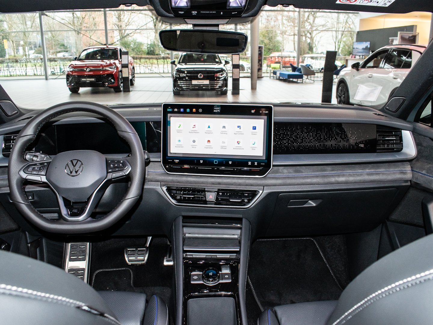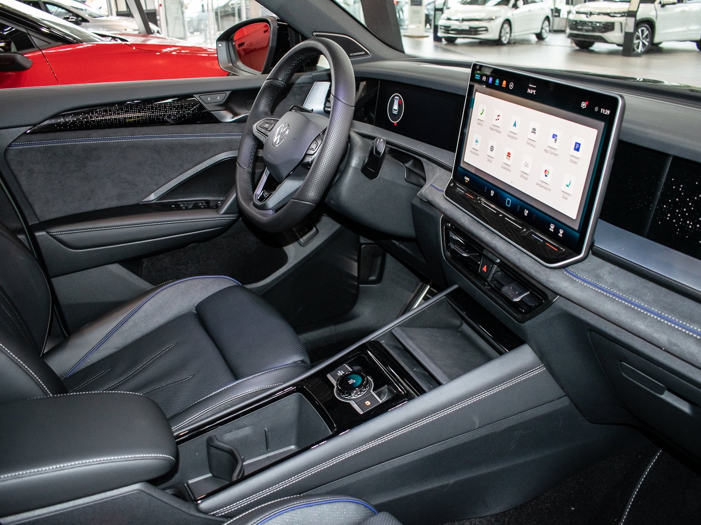 N5I Sitzmittelbahnen der Vordersitze und der äußeren Rücksitzplätze in Leder Varenna gelocht, NI1 Mit UNECE CS&SU, 9I5 Fahrlichtschaltung automatisch mit LED-Tagfahrlicht sowie Coming homeund Leaving home-Funktion, 3GG Gepäckraumboden ebene Ladefläche mit Staufach, 3KP 2 Sitzplätze in 3. Sitzreihe inkl. Rücksitzbank und -lehne asymmetrisch geteilt umklappbar, 50S Fahrzeugklassen-Differenzierung -57L, PG4 7-Sitzer-Paket: 2 Einzelsitze in der 3. Sitzreihe, QQ9 Ambientebeleuchtung 30-farbig in der Instrumententafel sowie in den Türen Dekoreinlagen vorn durchleuchtet, UD8 Volkswagen Logo vorn und hinten Leiste zwischen den Scheinwerfern/Rückleuchten beleuchtet mit Animation, VW5 Türscheiben geräuschdämmend Seitenscheiben hinten und Heckscheibe abgedunkelt, 4ZD Design-Leiste in Schwarz hochglänzend am Dach, 5TT Dekor-Set R-Line durchleuchtet, QJ1 Interieur-Design-Elemente in Schwarz / Dark Anodized, IN5 Hinterachsgewicht Ausführung 5, K0A Sondermaßnahme A (Ausführung 1), K1A Sondermaßnahme B (Ausführung 1), K2A Sondermaßnahme C (Ausführung 1), K3A Sondermaßnahme D (Ausführung 1), 1R8 ergoActive-Sitze vorn mit elektrischer Einstellung Memory Komforteinstieg und verschiebbarer Oberschenkelauflage, 2J2 Stoßfänger im R-Line-Styling Black Style, DF9 4-Zylinder-Ottomotor 2.0 L/150 KW (16V) Turbo FSI homogen GMO ist: TR6/T2A/T2C/ TC3/TI2/T66/T4X/TI2/T5V/TC1/T1F/T4E/T4M, F13 4 Leichtmetallräder Leeds 8.5 J x 20 in Schwarz/Grau Oberfläche glanzgedreht Volkswagen R, PJK Leeds 8.5 J x 20 in Schwarz / Grau / glanzgedreht Volkswagen R Reifen 255/40 R 20, WL1 Lederpaket Varenna mit ergoActive-Plus-Sitzen vorn